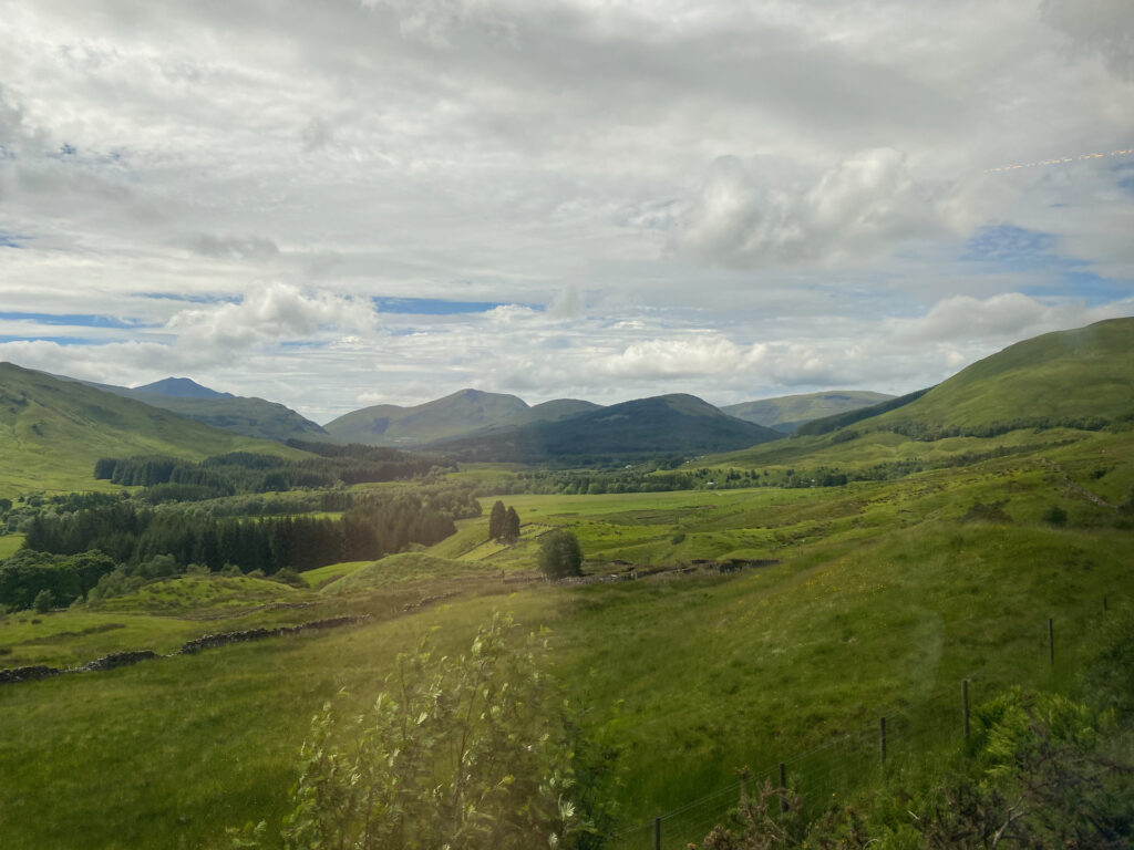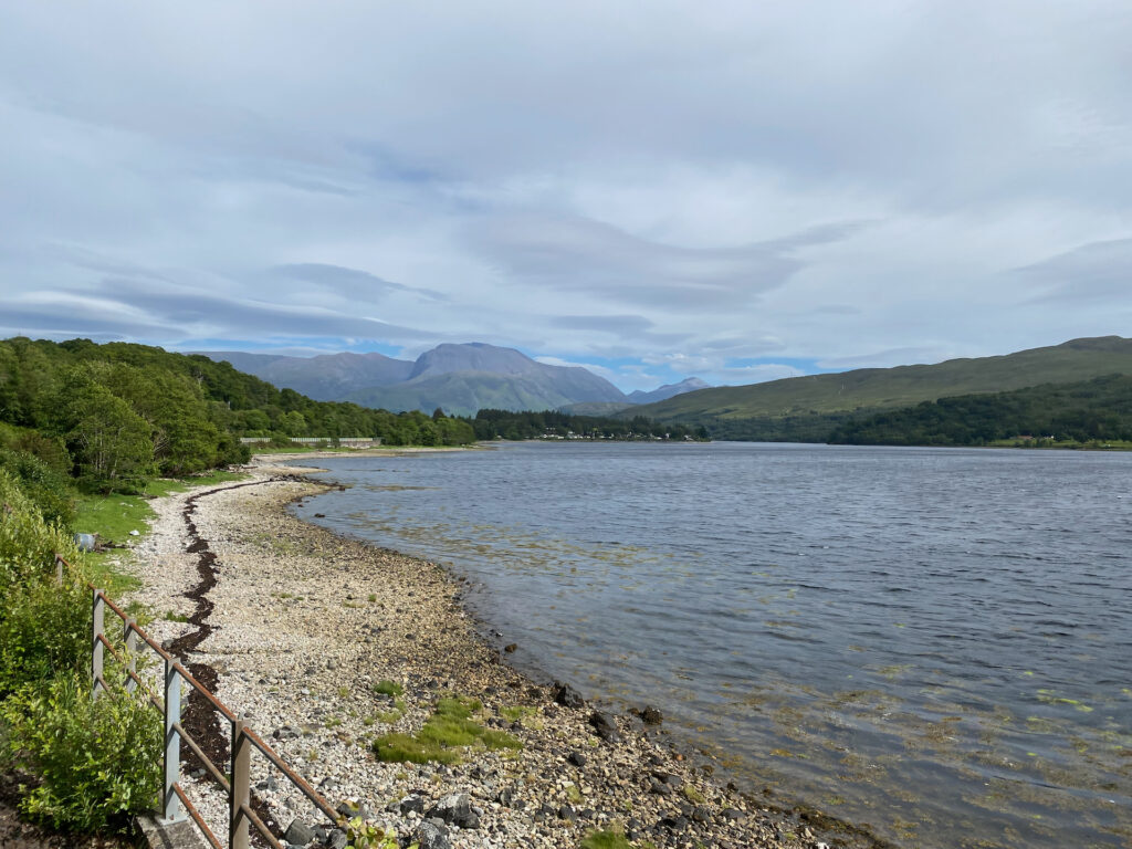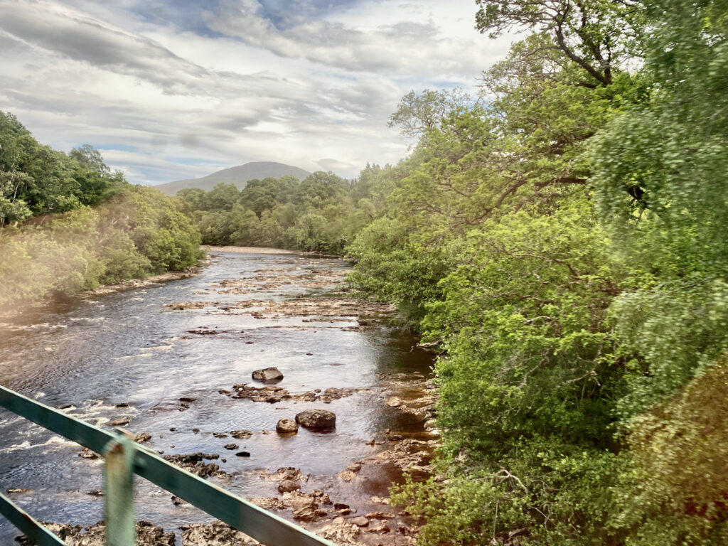 Somewhere in this section, I’m not sure exactly where, we enter the Highlands. As the crow flies we’re not far from Glencoe, but there is no sign of civilisation from the train. After crossing the moors we begin the slow descent to Fort William.