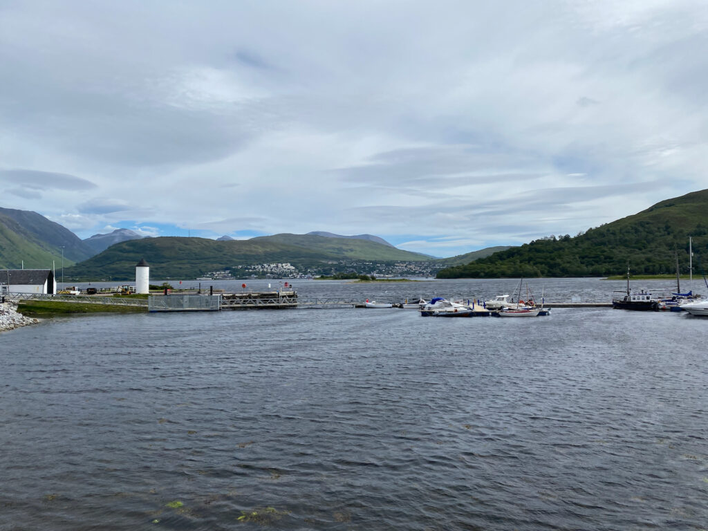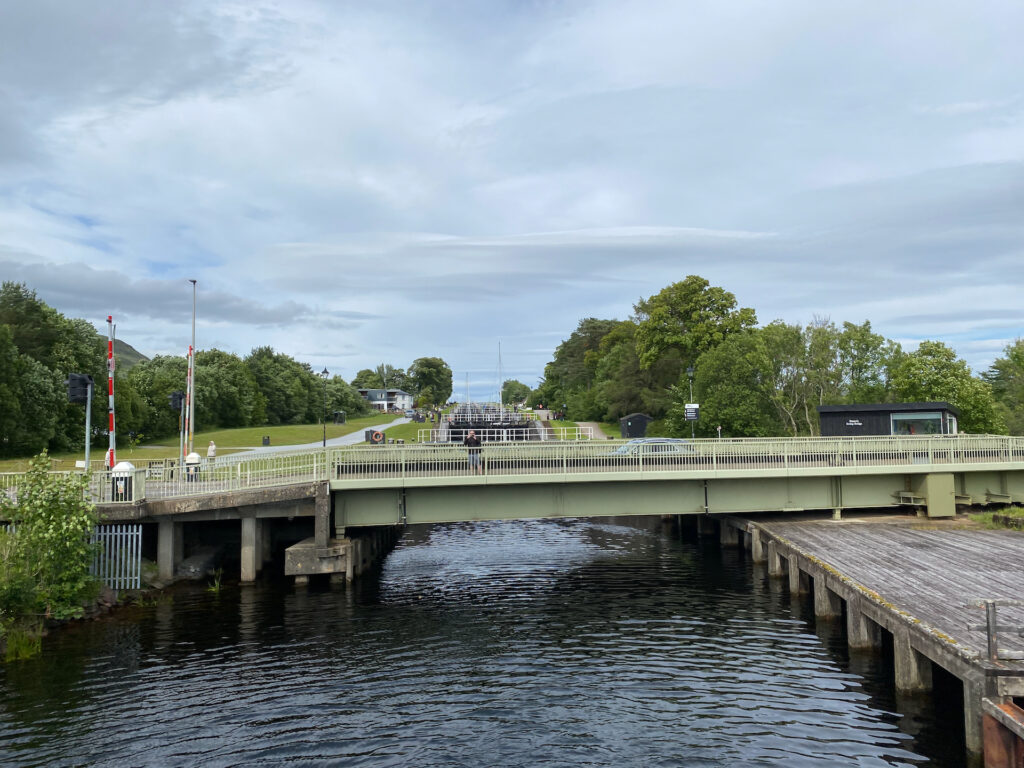 The first section after Fort William has interest on both sides. First we cross the Caledonian Canal at Banavie, right next to Neptune’s Staircase, a flight of 8 staircase locks; the longest and highest in the United Kingdom.