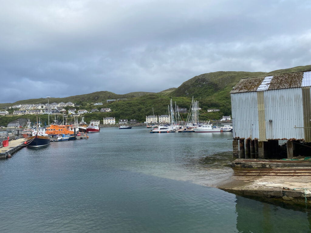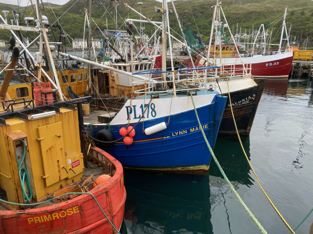 I dropped my bags in the hotel and did a much shorter walk around Mallaig Harbour. It is still a quite active port. Herring have always been important here, but it is also a base for some large salmon farming operations. I was quite disconcerted by huge pipes running from the boats directly into a building a few hundred yards away. Surely they don’t vacuum the fish out of the boats?! Based on something I read a little later on a display board on the opposite side of the harbour, I actually think the pipes deliver large volumes of feed to the factory farm boats; somewhat less worrying!