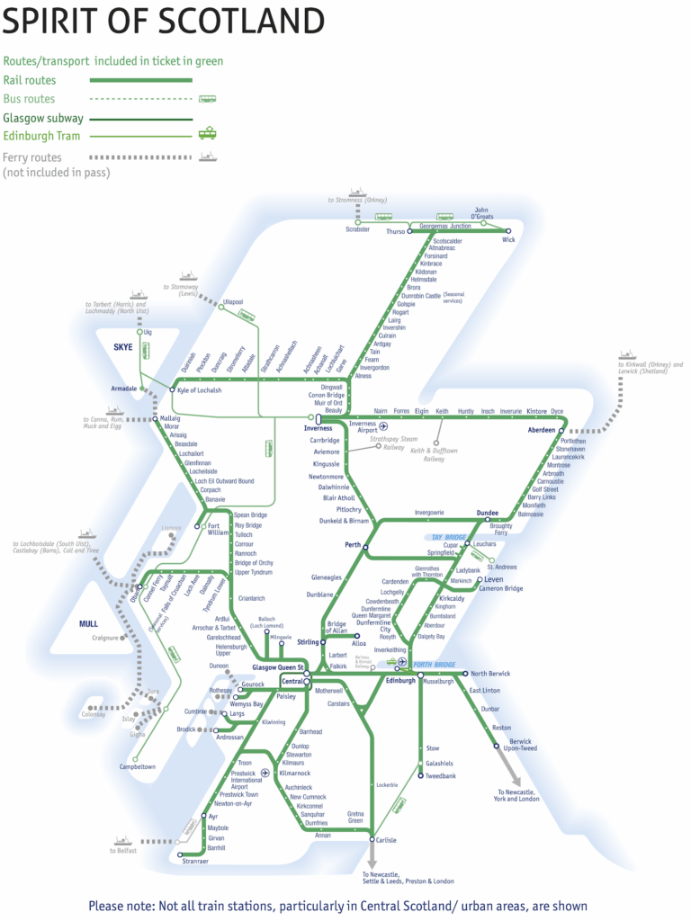 I may not be Interrailing, but from today I am on a rail pass. The “Spirit of Scotland” pass allows me 8 days travel for £125, with my railcard. I can travel anywhere north from Carlisle in the west and Berwick-upon-Tweed in the east, plus a selection of bus routes linking places not easily or directly covered by the rail network. It really is ridiculously good value.