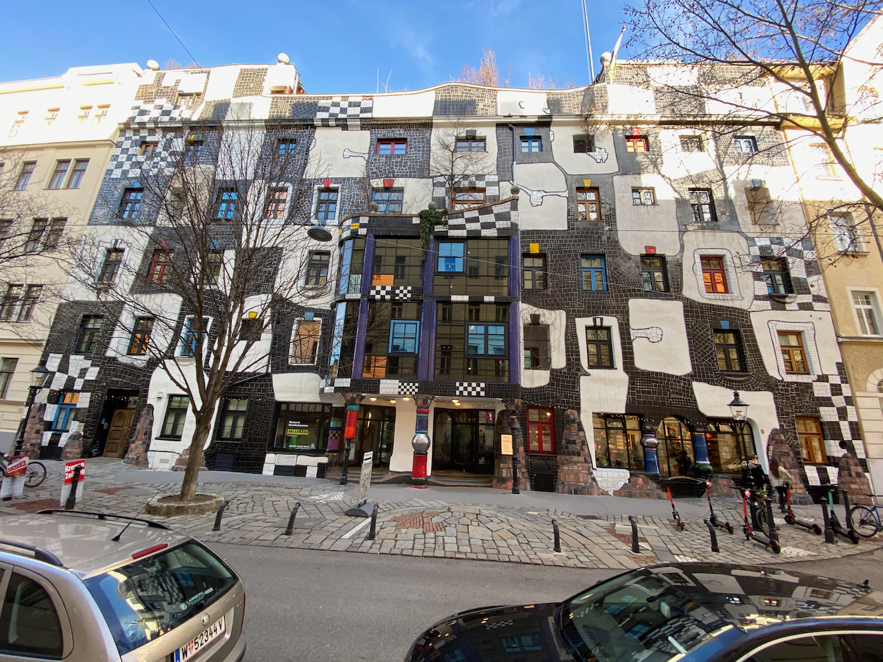 I love to wander, to explore, see where I end up. The featured photo on this post is an astonishing bit of architecture I happened across in Vienna in 2020. I was on a tram (I forget where to) and just had to jump off and see this, as well as another building by the same architect, just around the corner. These chance discoveries are what make a good day a great day.