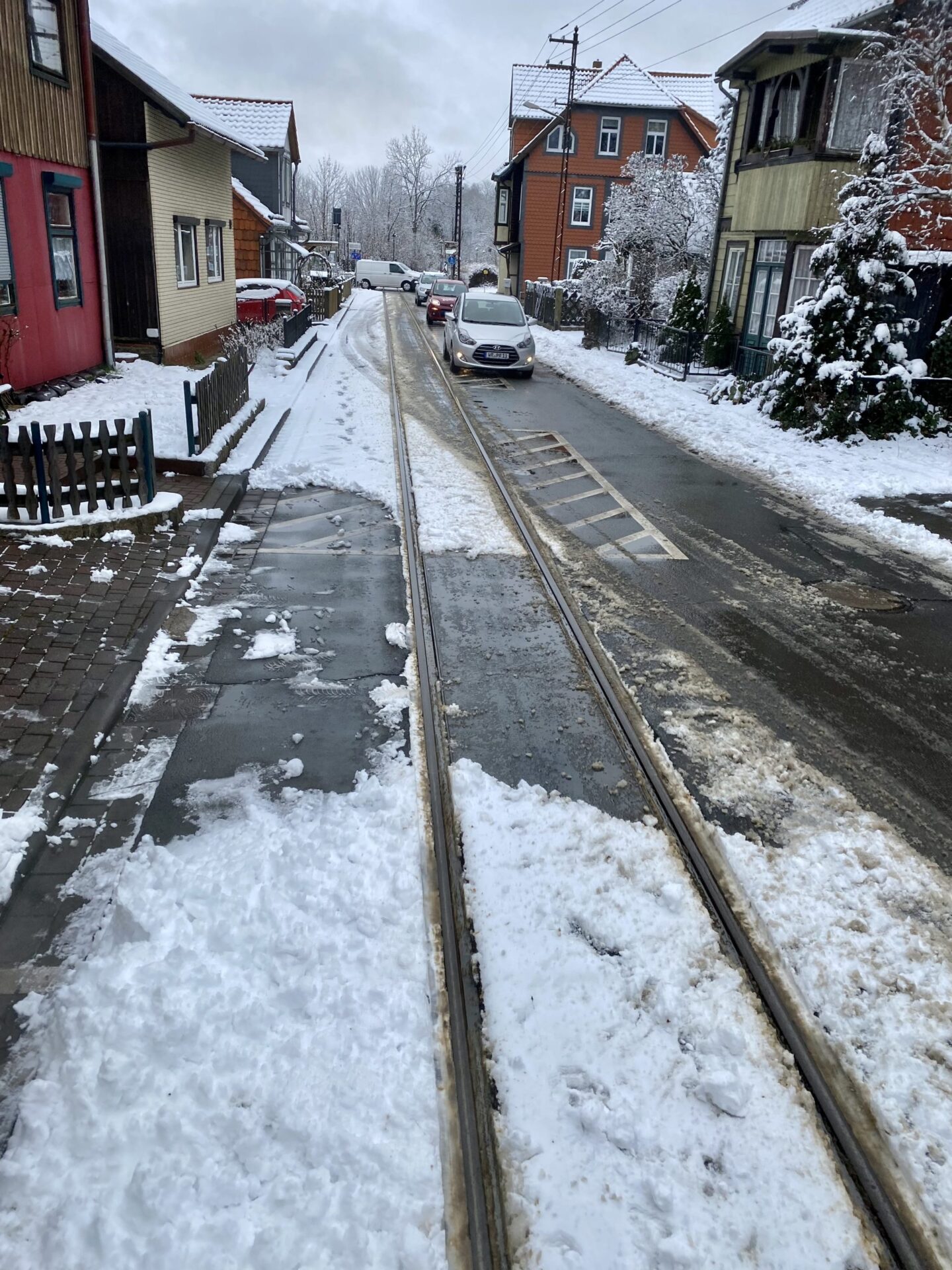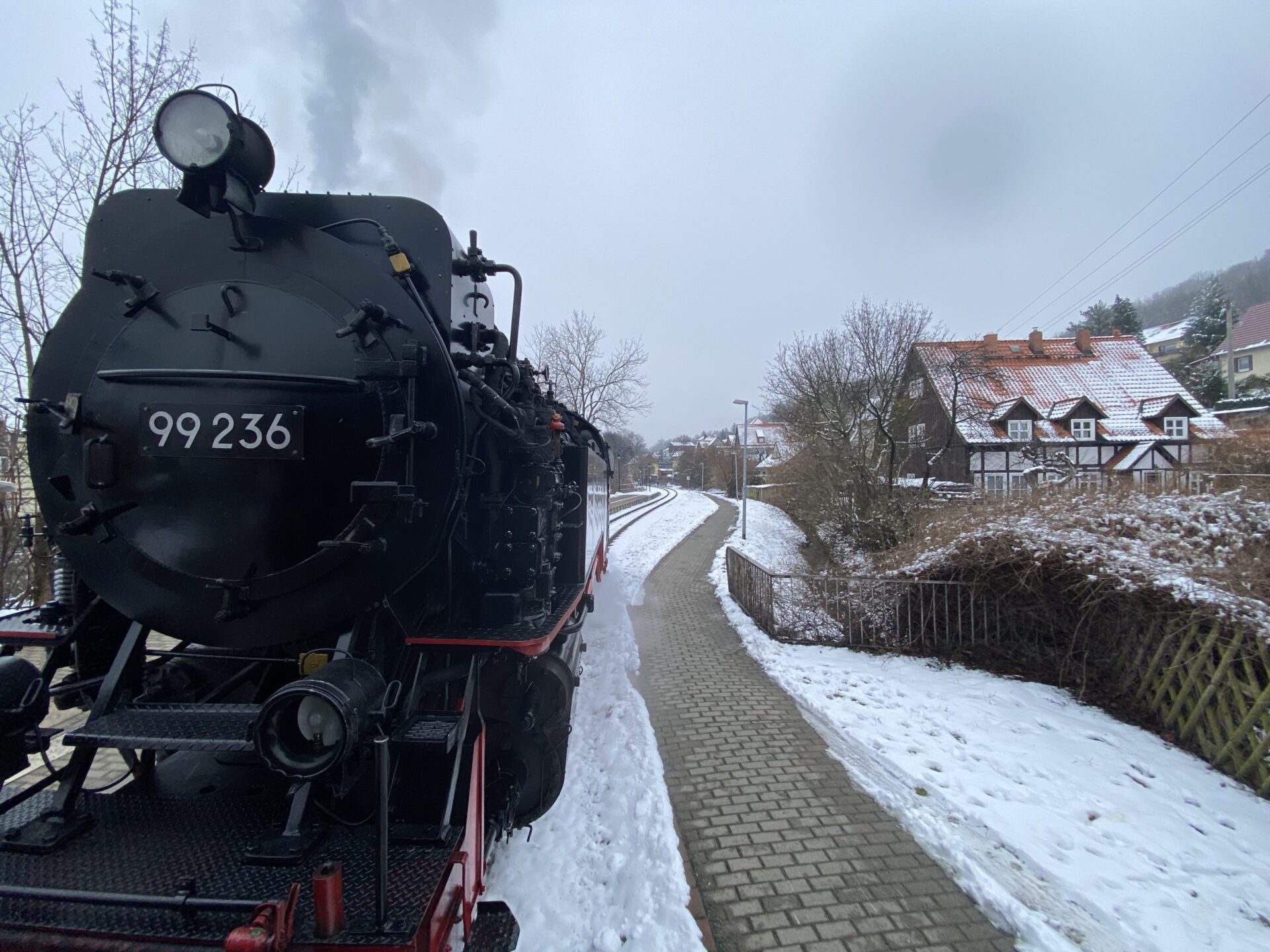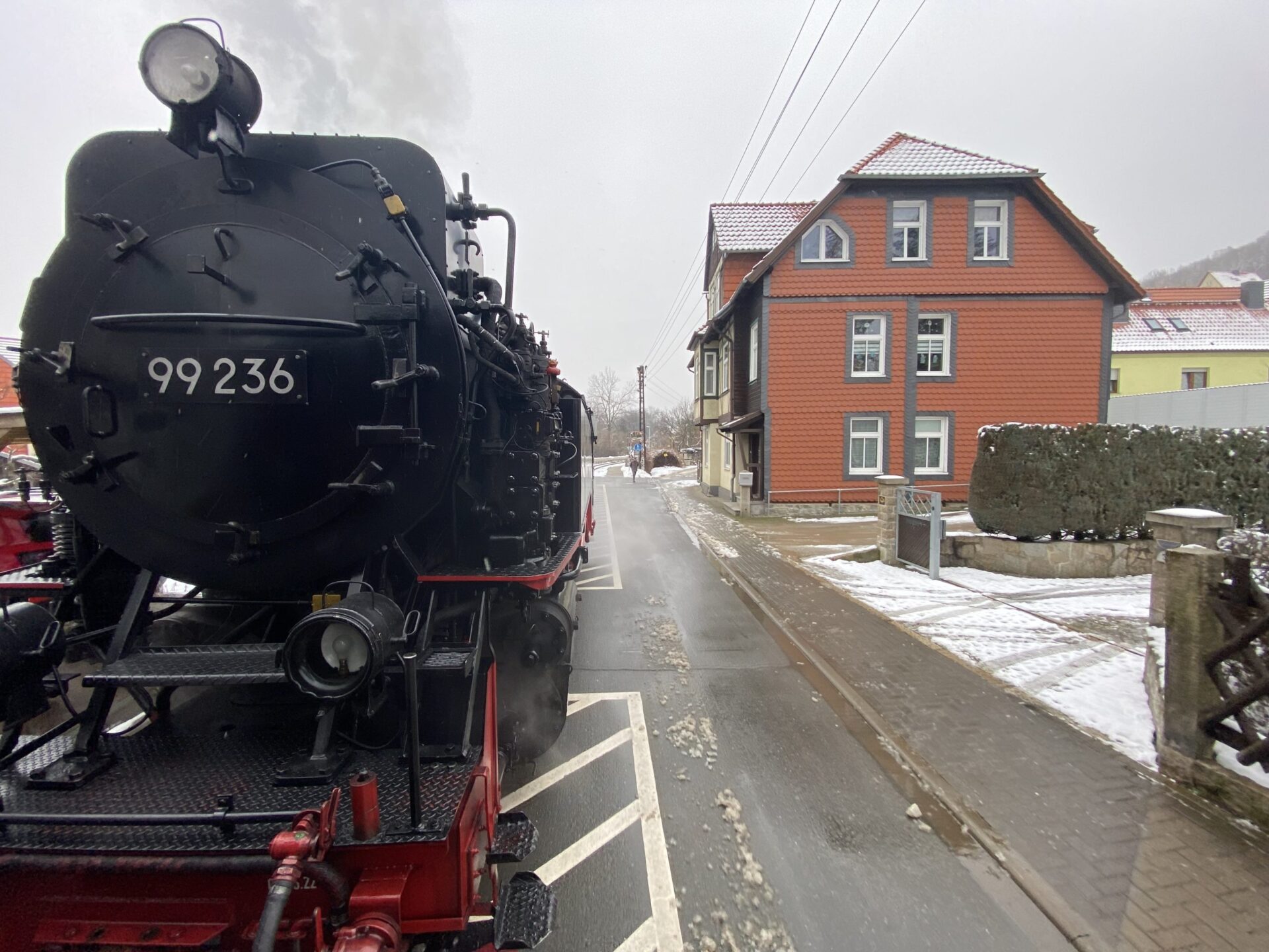 I’d decided not to stick around. The next option down the mountain was a couple of hours away, and there was no chance of capturing the famous long-distance views from this high point. Instead, I jumped straight back onto the same service and headed down. With the engine on “my” end I had the opportunity to get closer than I think I’ve ever been to a moving locomotive. There was very little smoke – we were mostly coasting back down the mountain – so a few interesting angles were captured. The one moment where we did climb briefly, as we left Schierke, made for a fun bit of video.