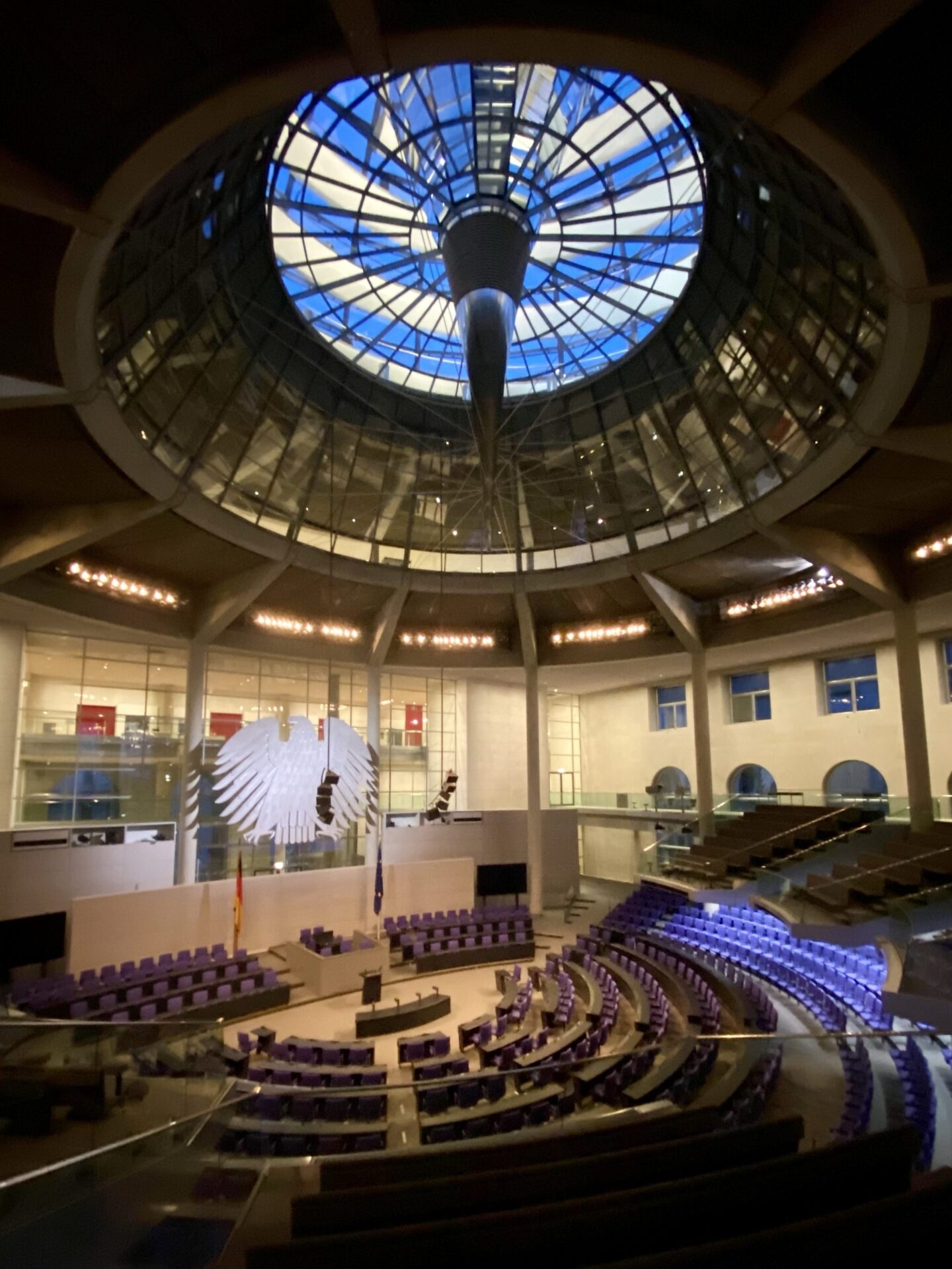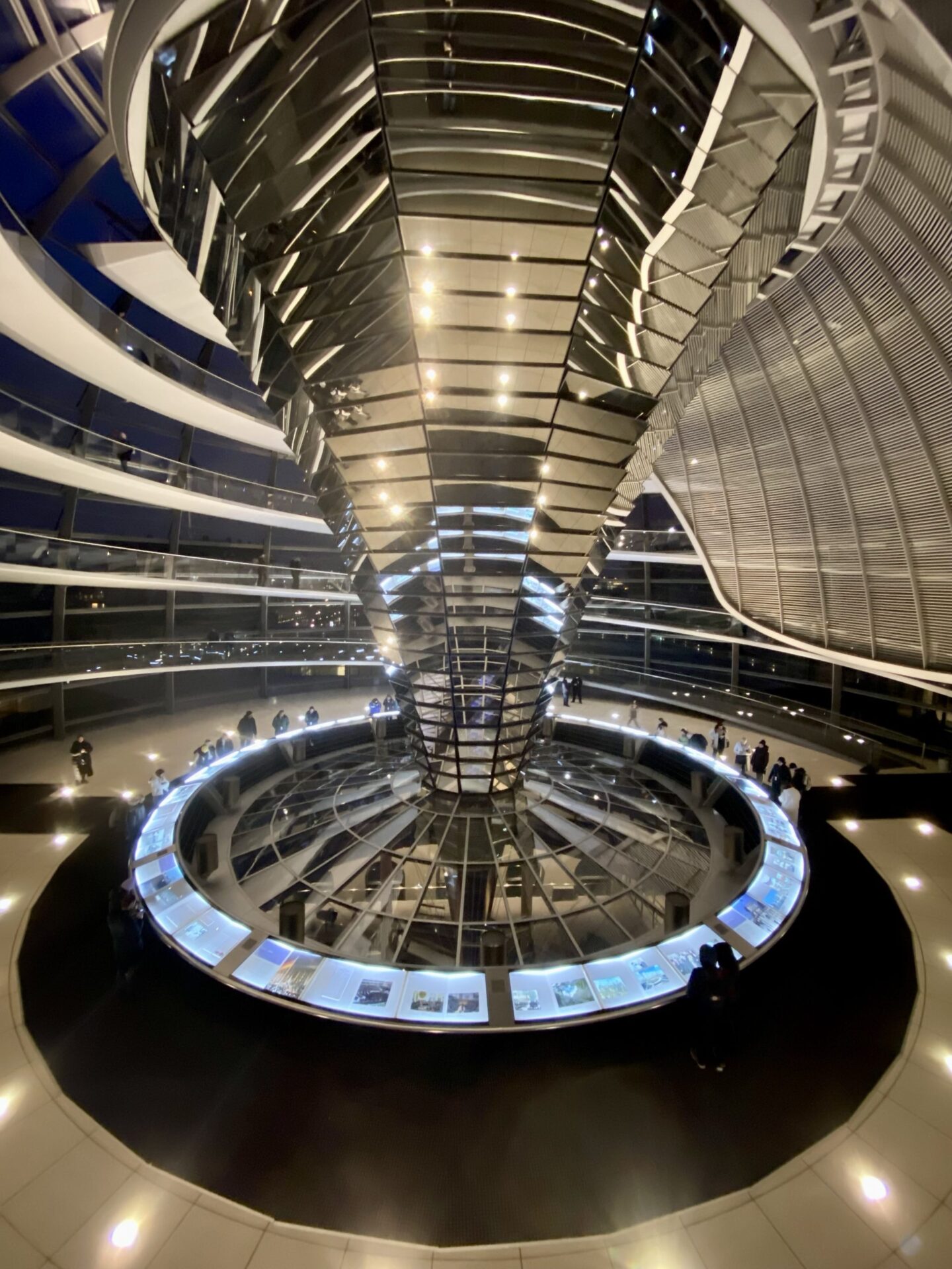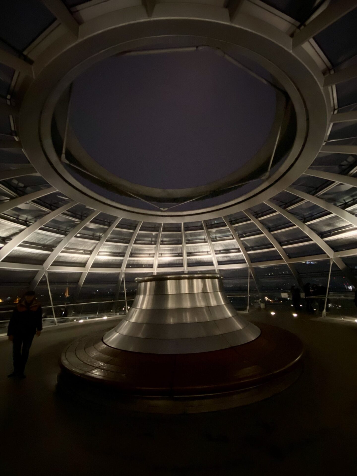 After the formal tour, we were allowed to explore the dome, high above the chamber. it was a real shame that by now it was dark, and had recently rained so the views of the city were very restricted, but the interior of the dome with it’s moving mirrors which channel light into the Parliament below, is fabulous. I will go back and do it again some time.