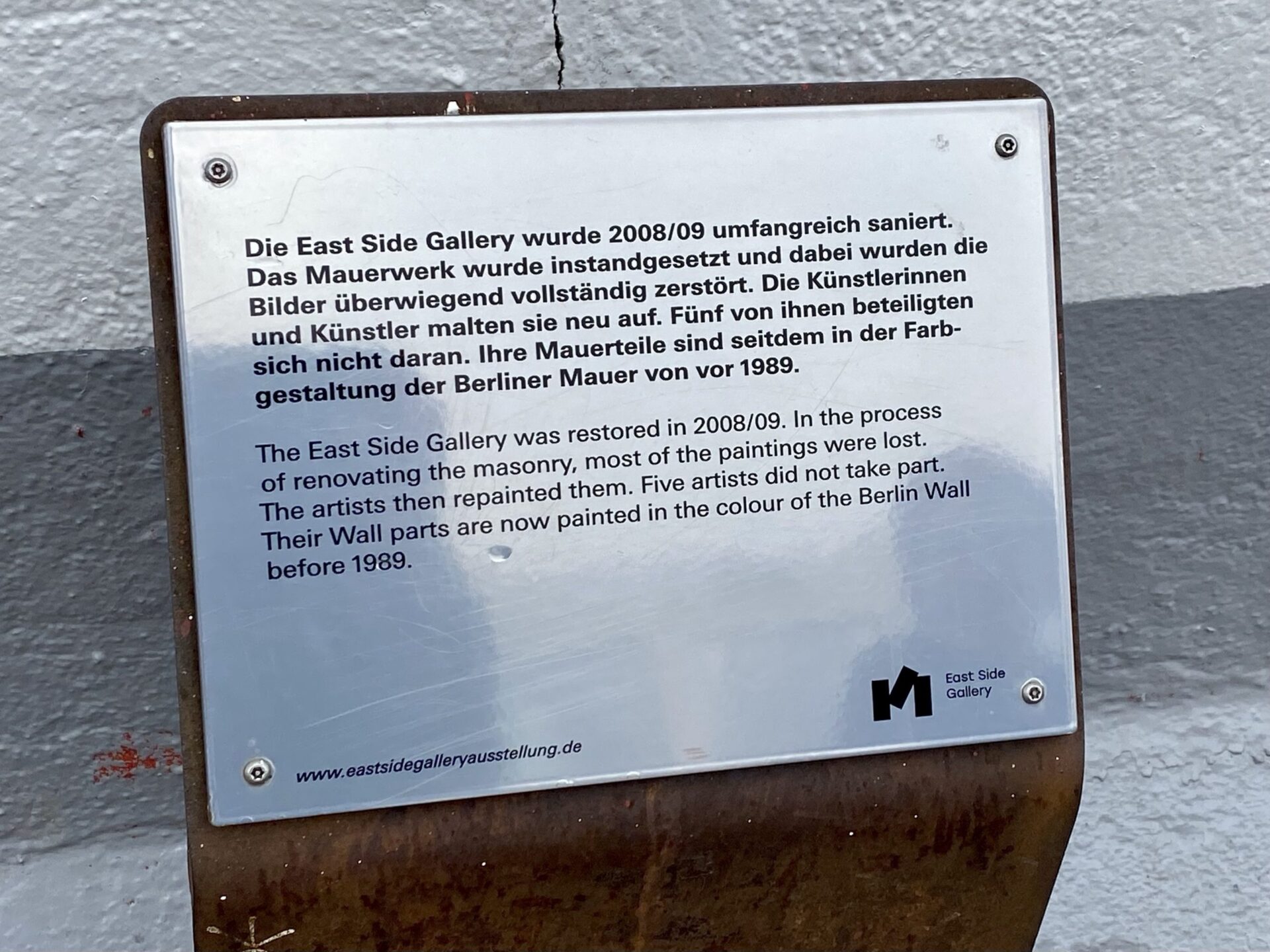 This time I had decided to take a walk along the East Side Gallery. When the wall was opened, much of it was demolished but this section was turned over to artists, who created a mix of political, humorous and satirical works.