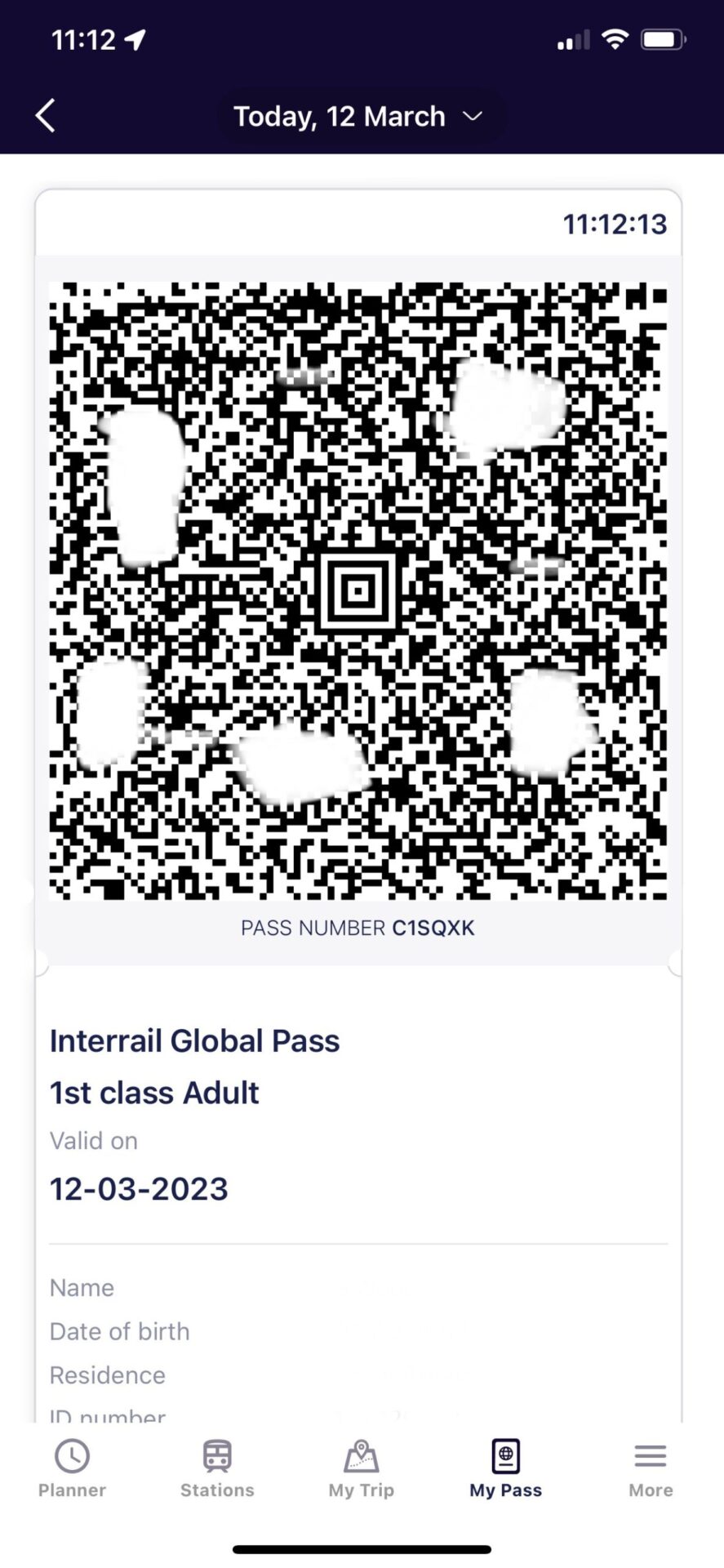 It looks like the pass will be generated as a new barcode each day. The interesting small detail is that the time updates in the top right hand corner so you can’t really screenshot it and send it to someone else. (I’ve blocked out bits of the barcode and a few other details so that no-one even tries!)