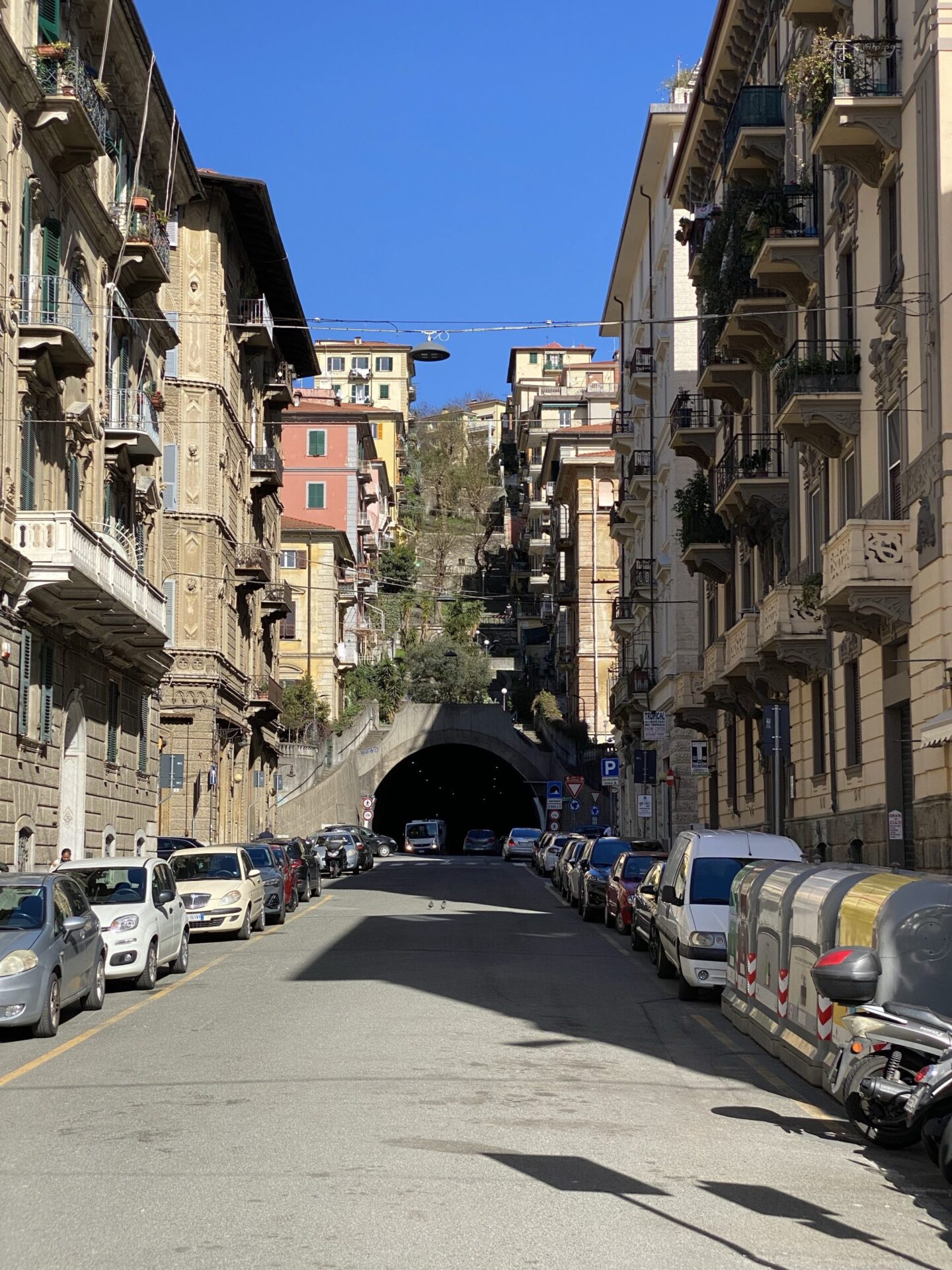 I changed trains in Florence and headed to the coast, this time on a regional service that stopped at almost every village. In Pisa I got a momentary glimpse of the leaning tower (I’ve been there before so knew where to look) and I was in La Spezia by early afternoon.
