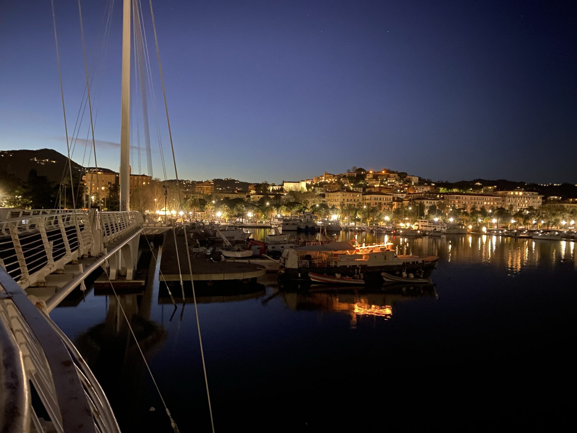 After another hour, it was back onto the train to La Spezia to take a look around and find dinner. I enjoyed the harbour area, which photographed well at night. One thing I have noticed almost everywhere I’ve been is how difficult it is to find somewhere to eat after early evening. Several times now I’ve struggled to find somewhere that was still serving at 8pm. I suppose it is out of season so they get to call the shots, but it did explain why the place I ended up in had a queue out of the door for most of the time I was there. I felt somewhat obliged to get a move on and free up the space.