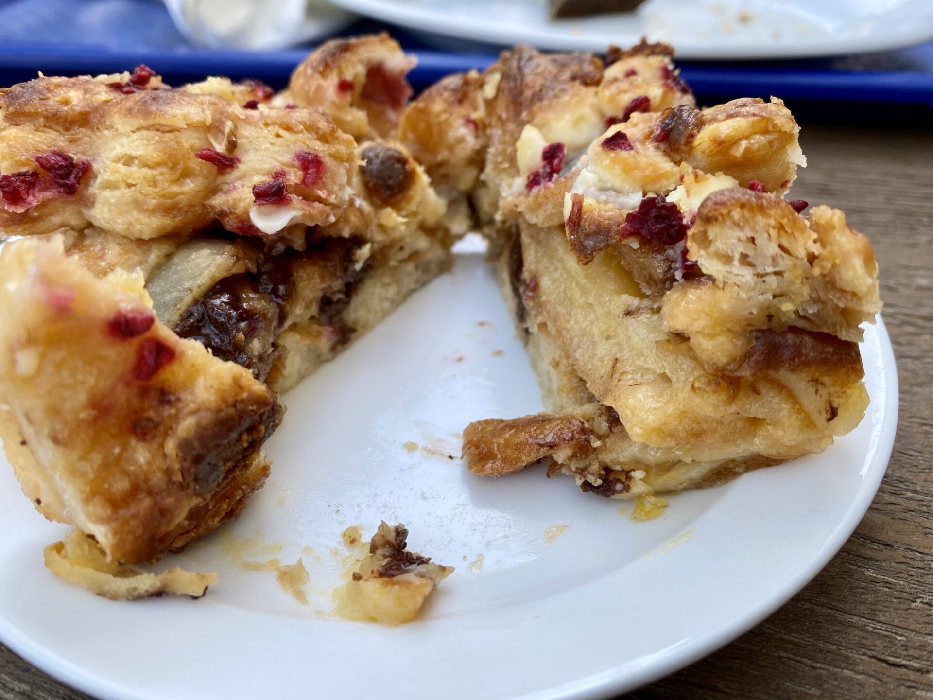 I walked back down Main Street, resisted the offer of fish & chips or Sunday carvery, in two of the pubs, but did stop at a bakery for a cup of tea and a piece of Gibraltar pudding. It is essentially bread and butter pudding with more fruit and cognac, but I didn’t know that until I searched online for it afterwards. Absolutely delicious!