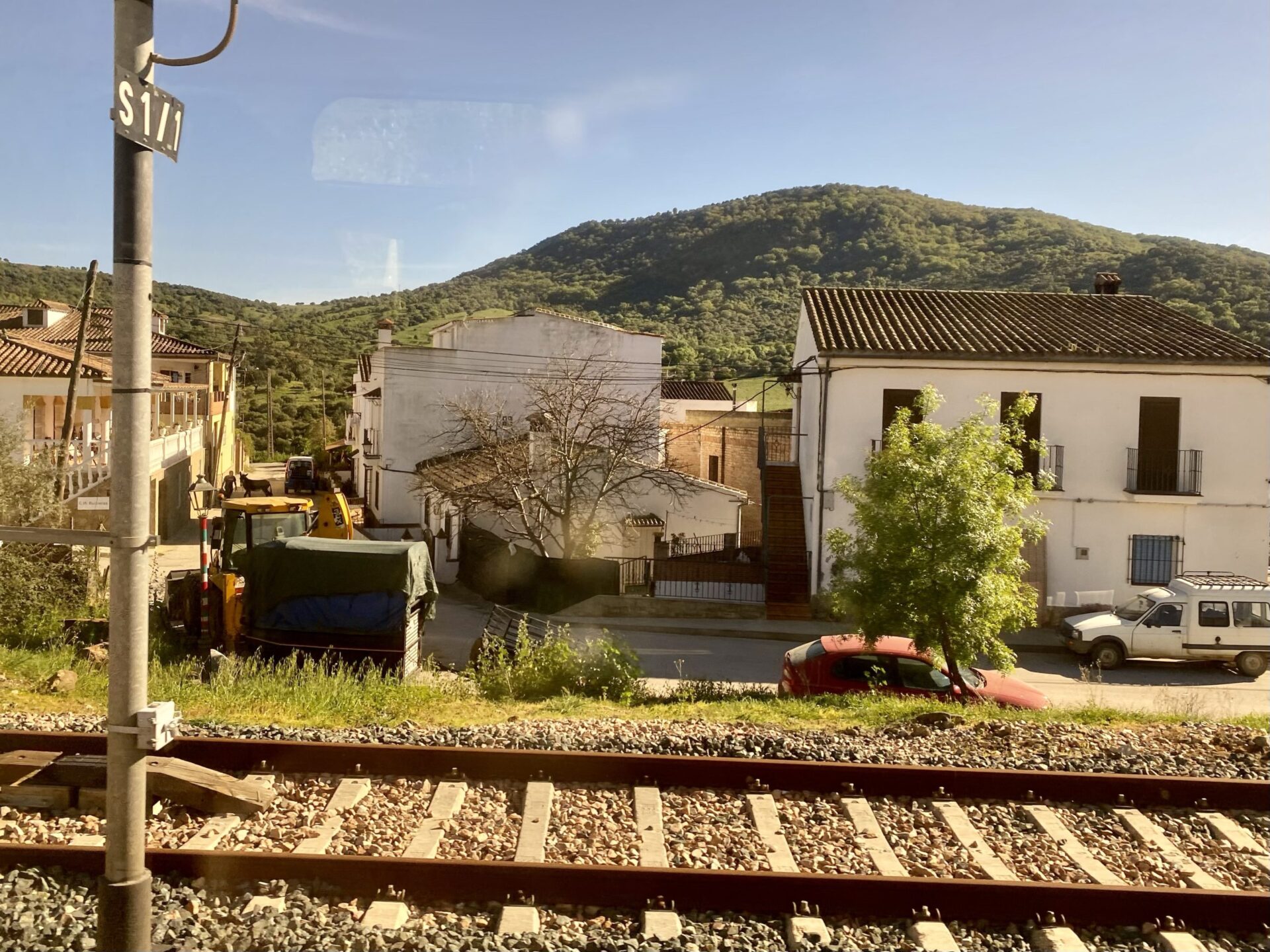 It was good to do the return journey in daylight. On the way to Algeciras I knew there must be lots of tight turns as the train wheels squealed constantly, but it was pitch dark. I now saw why. This is hilly, almost mountainous country. The railway picks its way along river valleys, but at one point does a huge return loop over maybe half an hour to climb from the valley floor to the town of Ronda.