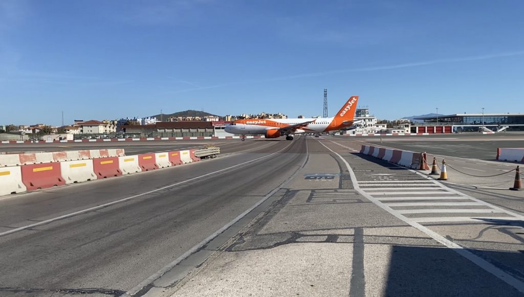 What happens next is very odd, you walk (or can catch a bus if you don’t want to walk) across the airport runway. Moments after I had crossed it, the barriers came down, rather like a level crossing, so that the Easyjet flight to Bristol could depart. After the pedestrians and vehicles have cleared the area, a truck repeatedly goes round in circles, dragging something behind, in the area we have just walked through, presumably to remove anything “odd” that has been dropped by pedestrians or drivers.