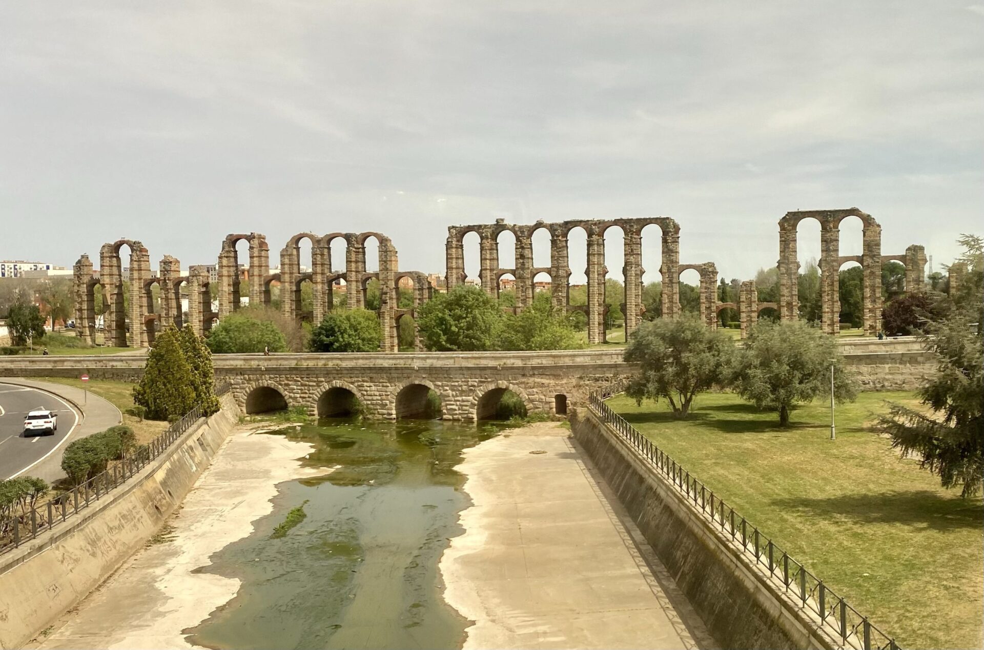 Instead I boarded the train and headed for the Roman town of Medira. Sadly there was not time to stop here, but as I came into the town, I spotted the remains of one of the Roman aqueducts.