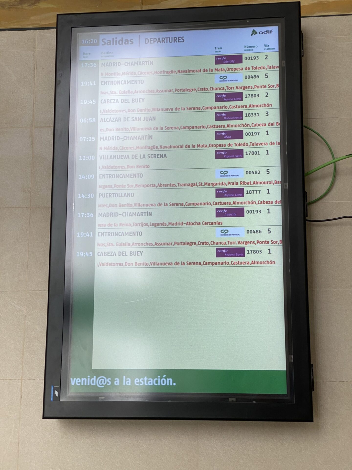 The original plan at this point had two options and I had decided first thing that morning to book the one that felt safer. The one I didn’t take was to jump onto a train down to the coast at Huelva, then cross the border with Portugal by coach, before getting onto another train at Faro, to Lisbon. This had two very tight connections, so there was a significant risk of spending the night in either Huelva or Faro. Annoyingly the connections would have been great if I’d done this part of the journey a day earlier, as had been originally planned.