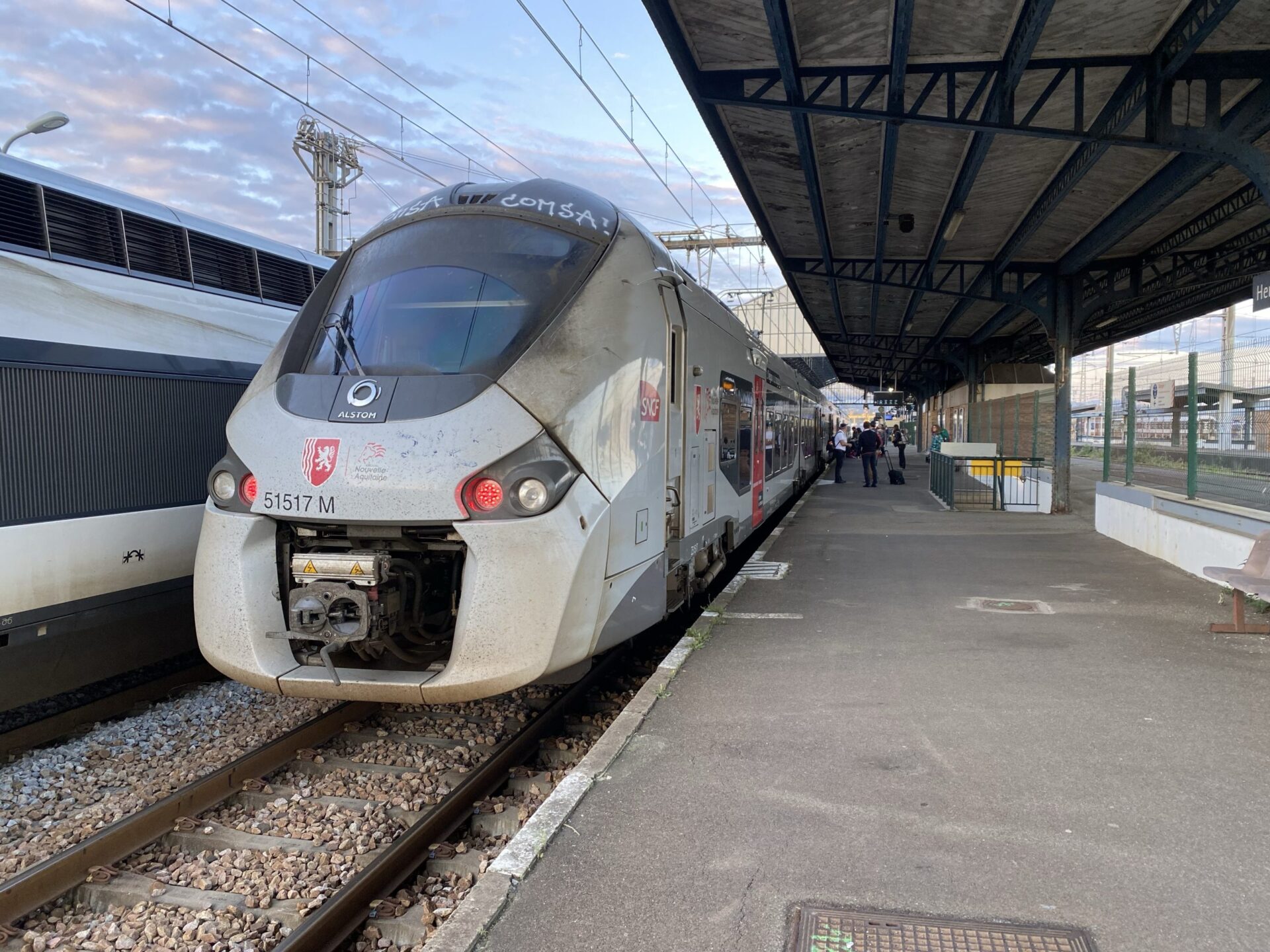 We were about 10 minutes late out of Hendaye, and more or less the same into Bordeaux. I’d taken the early train specifically because I had a Teams meeting booked at 11am. In the absence of a quiet corner, I stuck my headphones on and did the call from the middle of the waiting area.