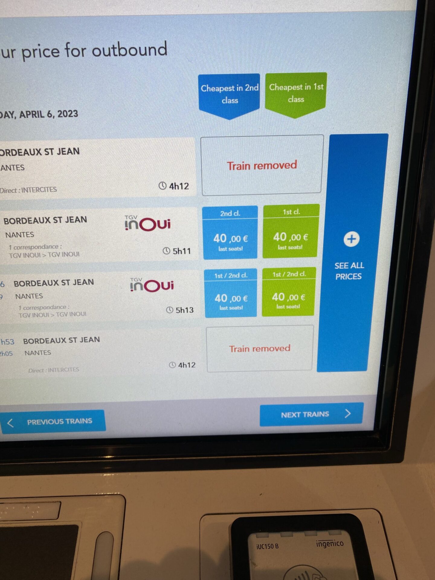 I’m getting quite used to it now. The journey is in my Interrail plan and activated, but I check the departure boards and its not there. I search online and it’s been cancelled by strikes. The alternative journeys are either cancelled or are not giving Interrail discounts. Time for another new plan.