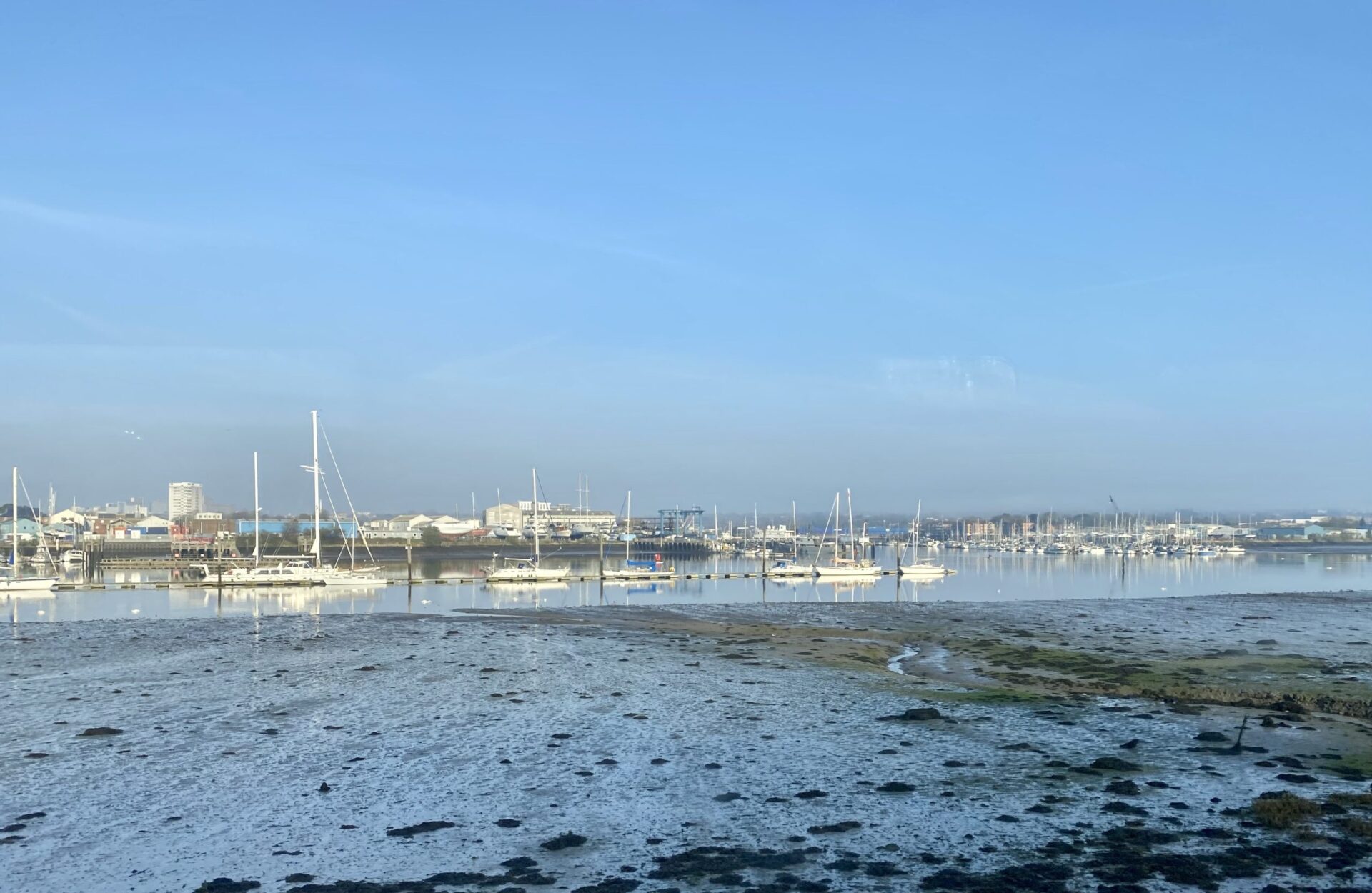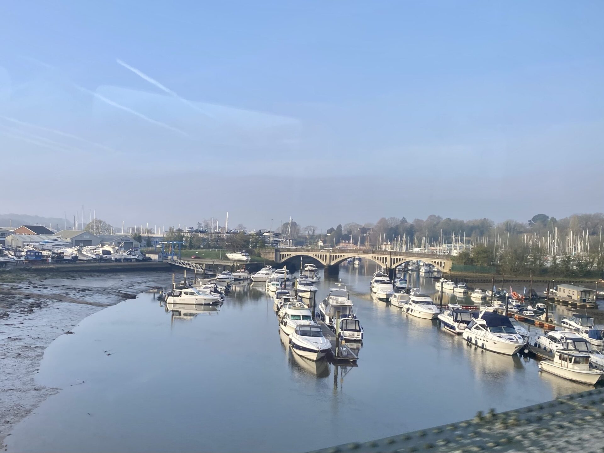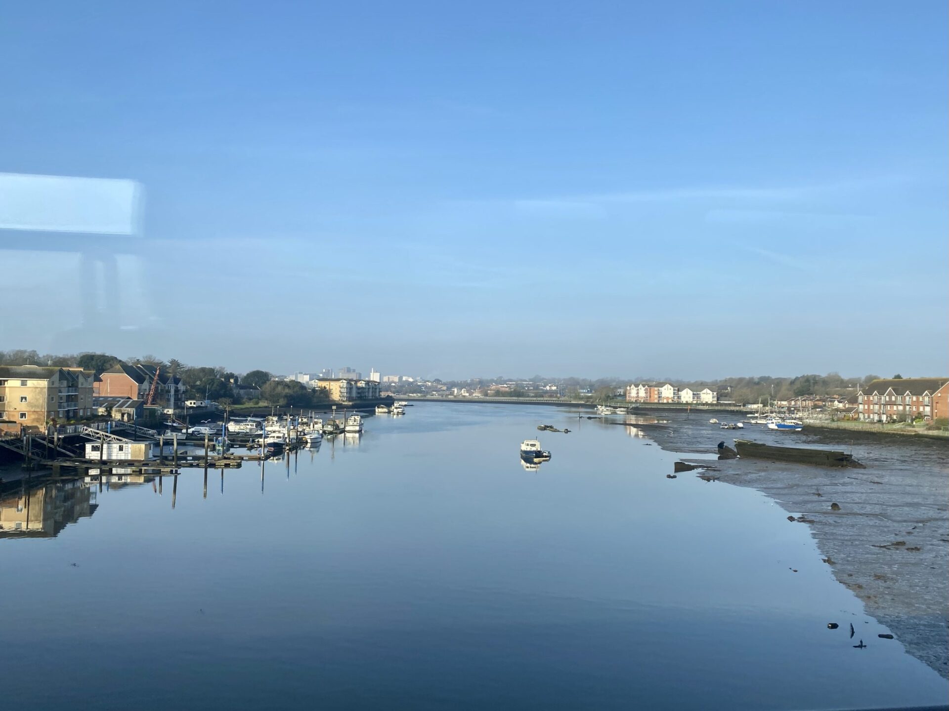 It was an early departure from Portsmouth Harbour. Only one other passenger joined me at 7:23. The railway works its way around the edge of Portsmouth Harbour and crosses the rivers Hamble and Itchen on the way into Southampton, and the Test on the way out. O-Level geography briefly came back to haunt me, with “The Test in the West” being a phrase drummed into us by Mr Floyd, when we studied the economic development of this area.