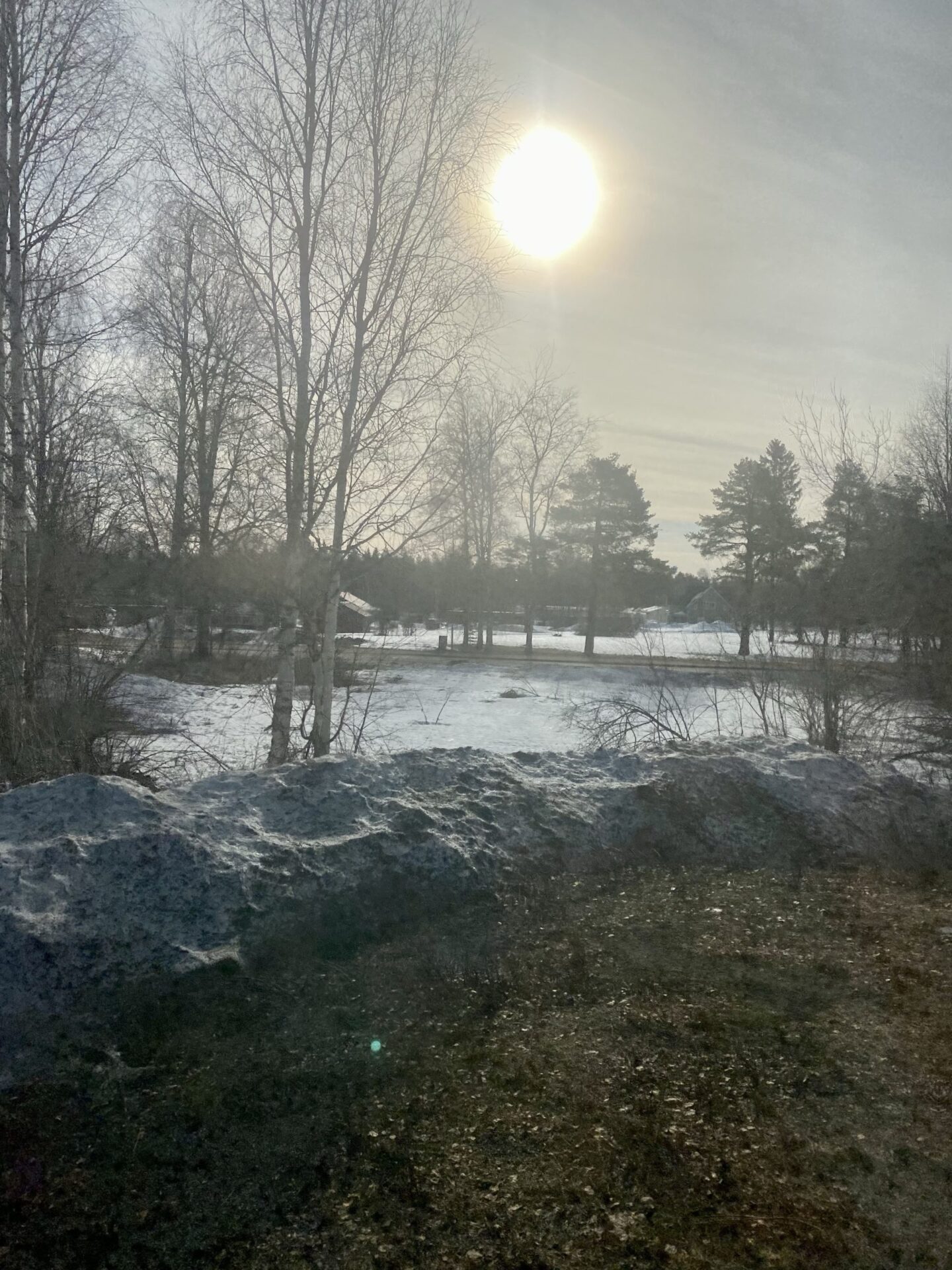 The train was just leaving Jörn as I peeked outside. The photo is perhaps a little more dramatic than the reality, as it points at the sun, but it gives a feel of the area.