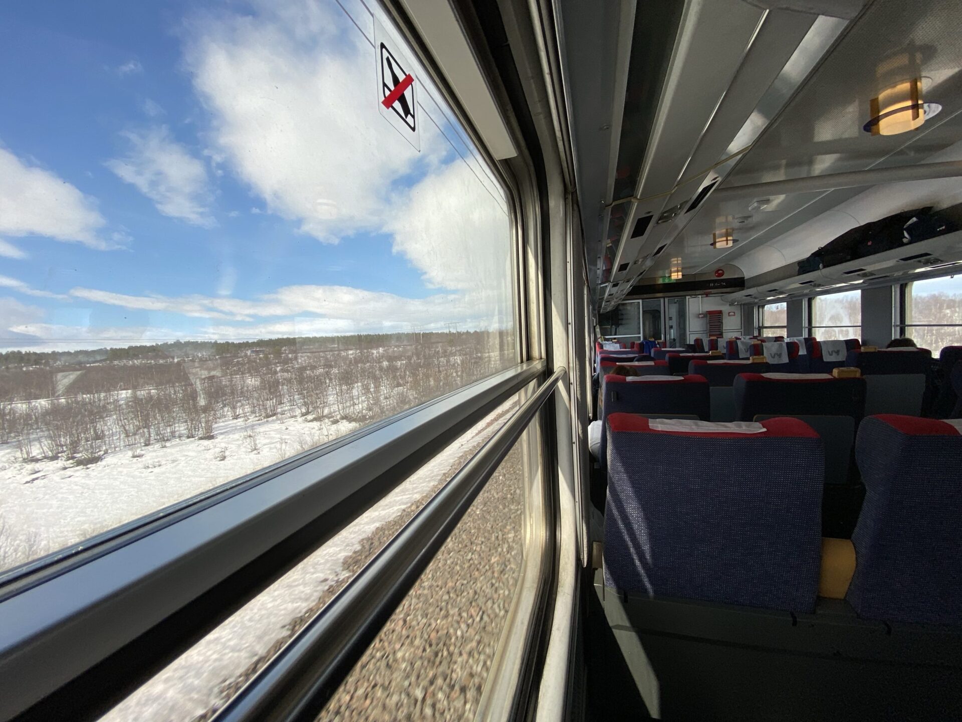 The Arctic scenery is predictably stunning. The thing that got me was the scale of it all. You go through miles of open wilderness. No obvious sign of farming, enclosures, animals or indeed development of any kind beyond the railway boundary. Occasionally you see a road. Mostly you see huge open spaces, or natural woodland that is either conifer or silver birch.