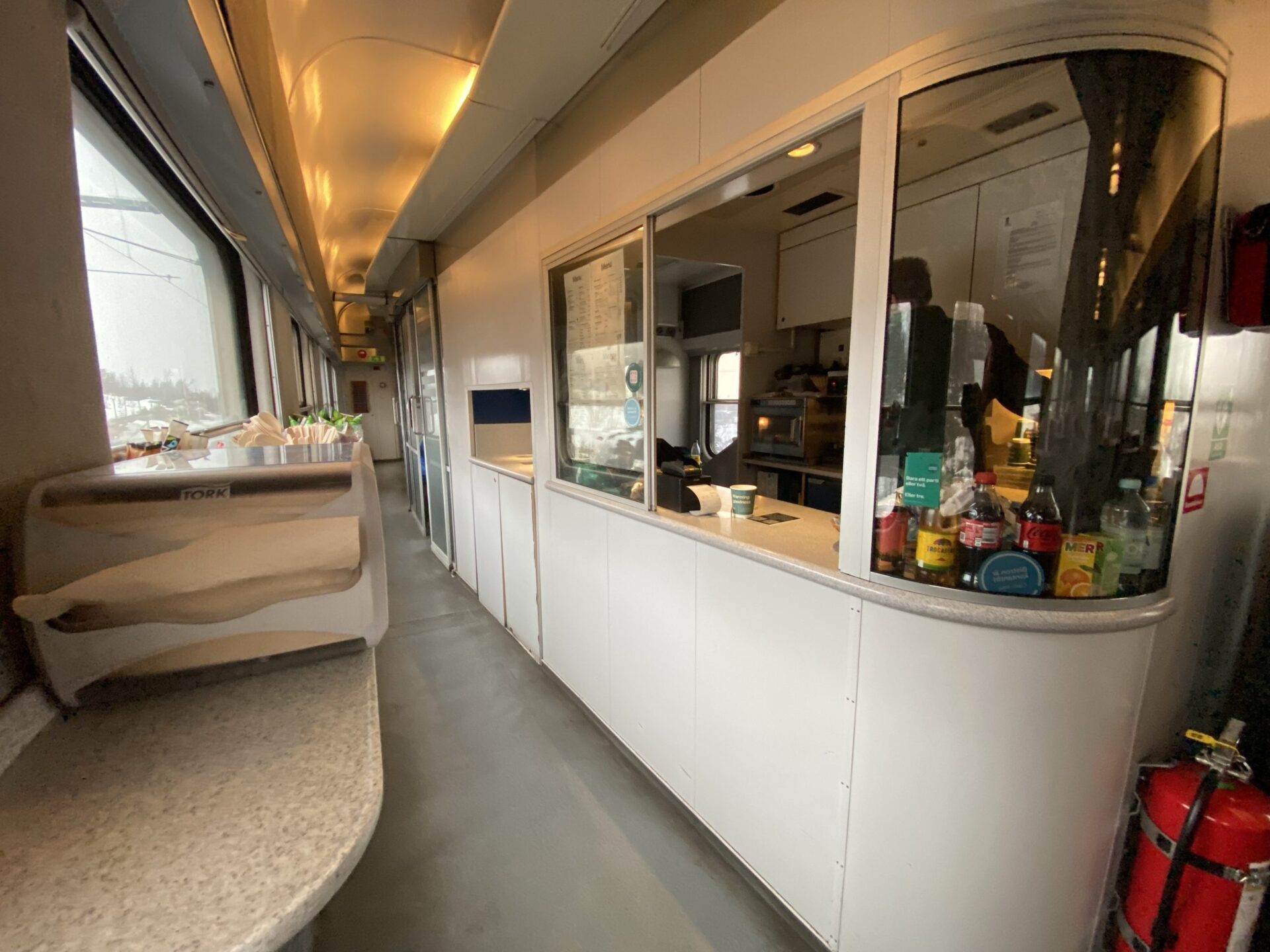 My cabin had an en-suite shower. I did wonder if the tepid water was a trick to make sure that people didn’t stay in there too long! I dressed more warmly than previous days as we were quite a way north now, and headed for the restaurant car.