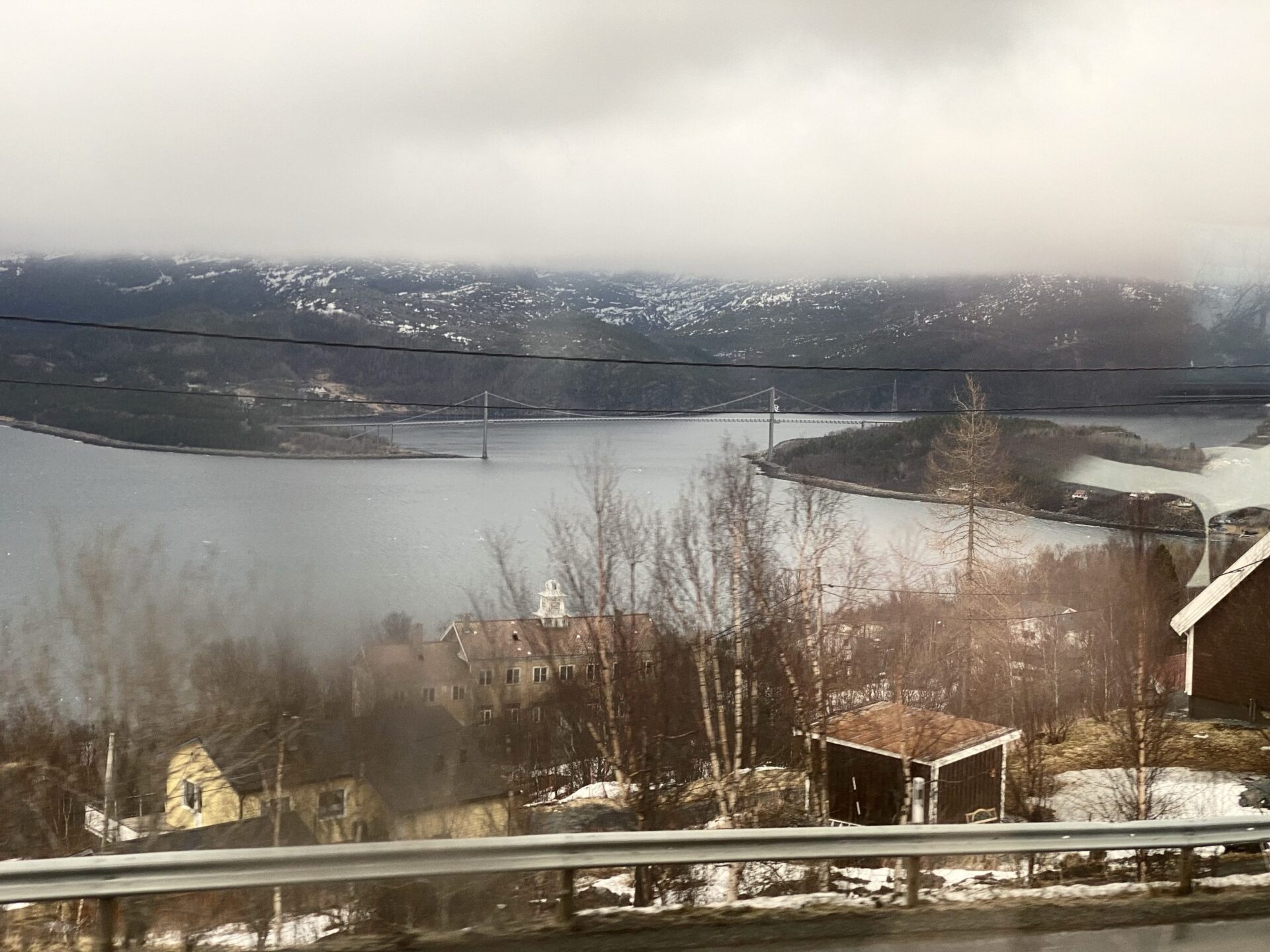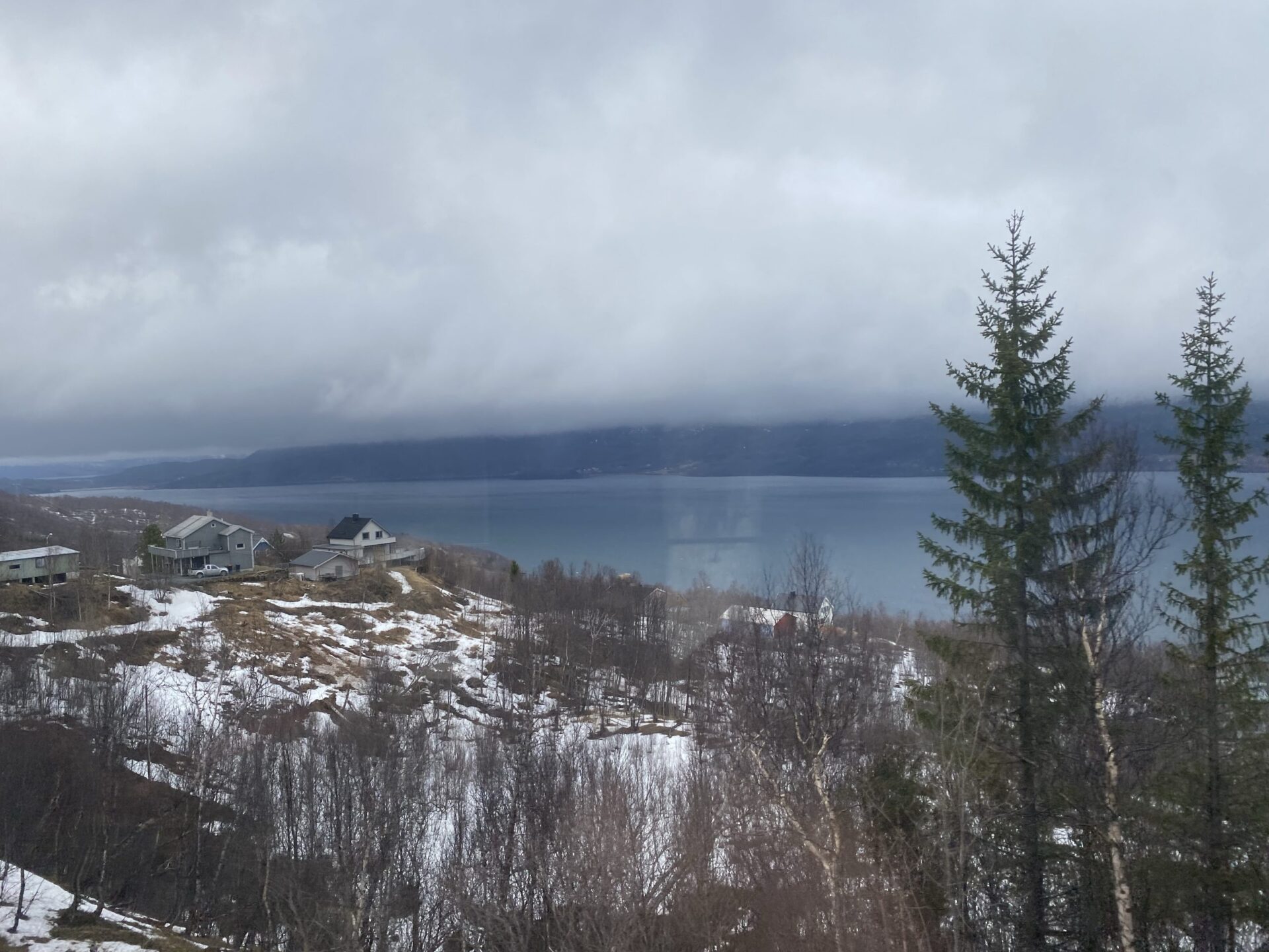 As we got closer to Narvik, I’m not sure if we climbed higher or the clouds got lower, but we spent some time in fog before crossing the border into Norway (in the middle of a tunnel, where the relevant flags are painted onto the wall.)
