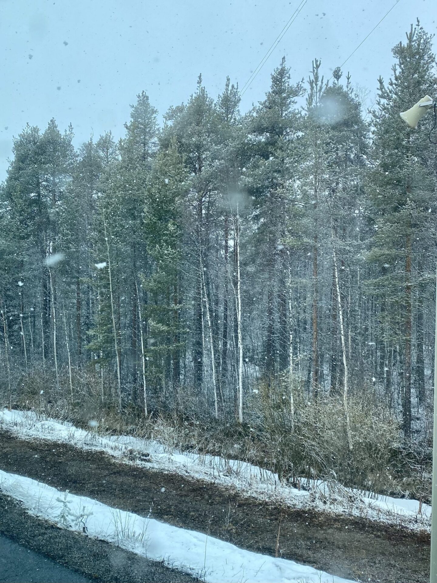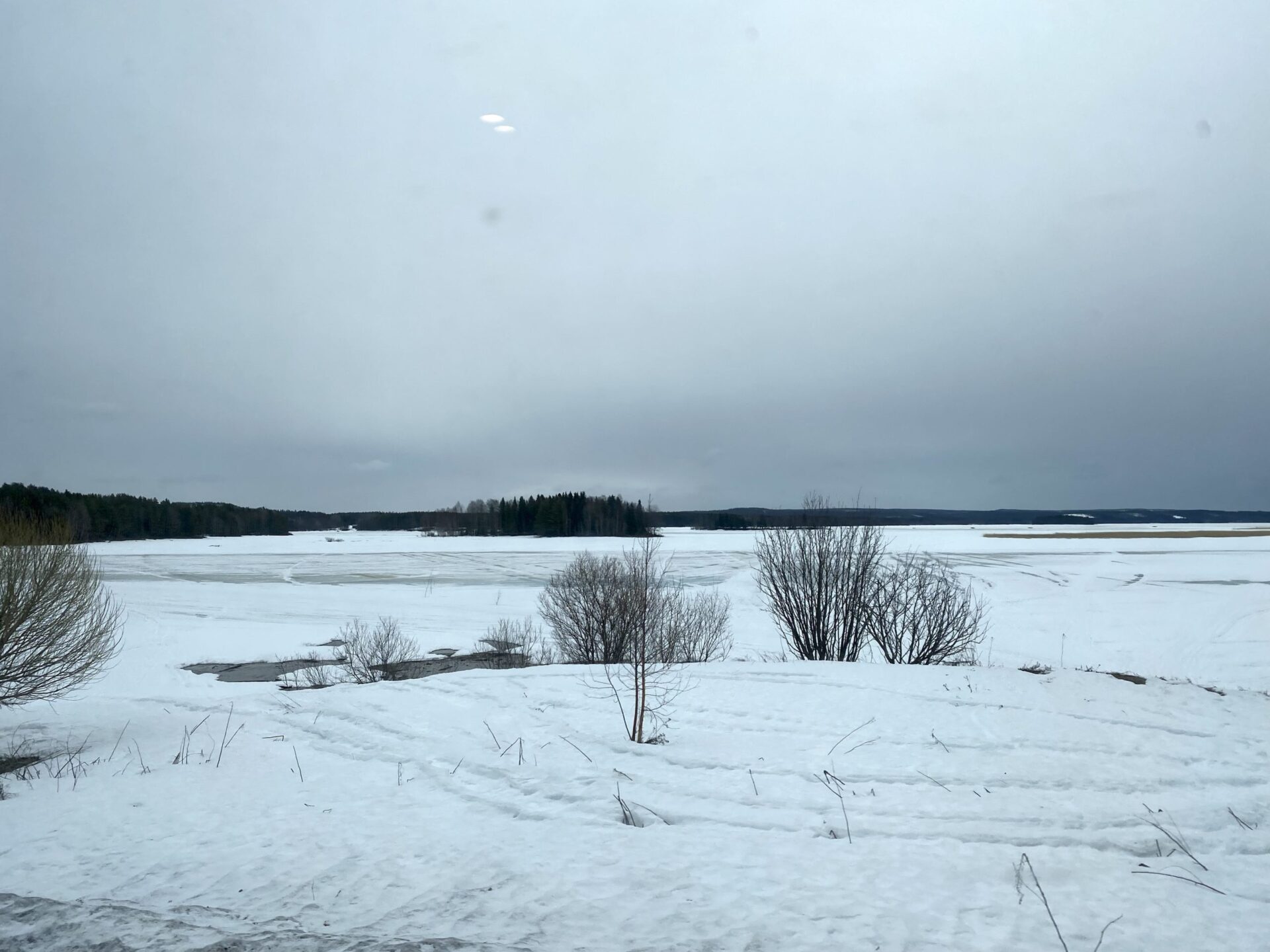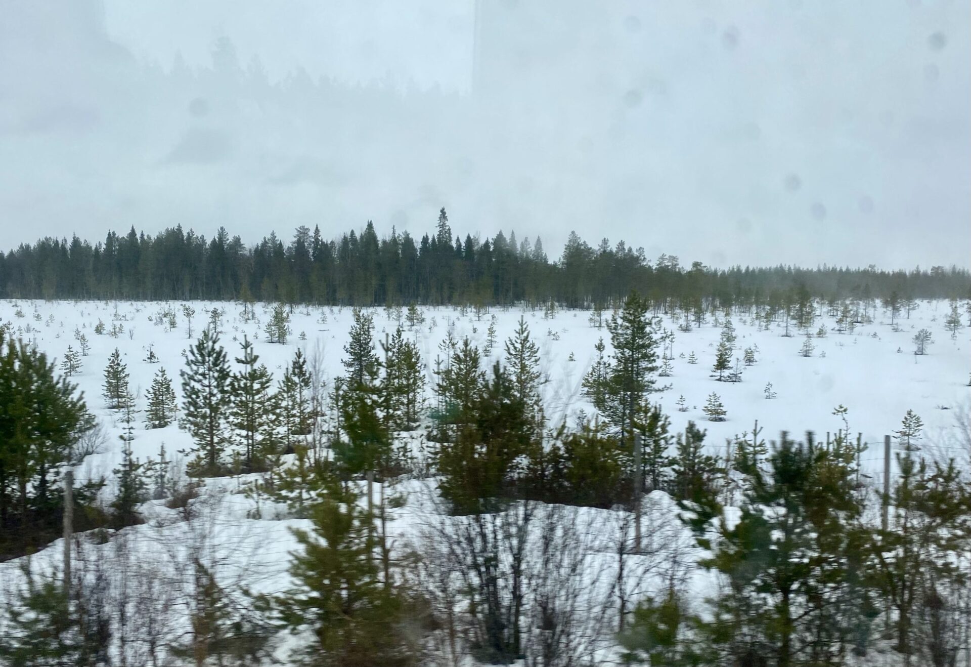 The train runs through forests for almost the whole journey to Haparanda. The flurries of snow persisted but never got heavier, though there was already plenty on the ground. Rivers and lakes around here were all frozen over.