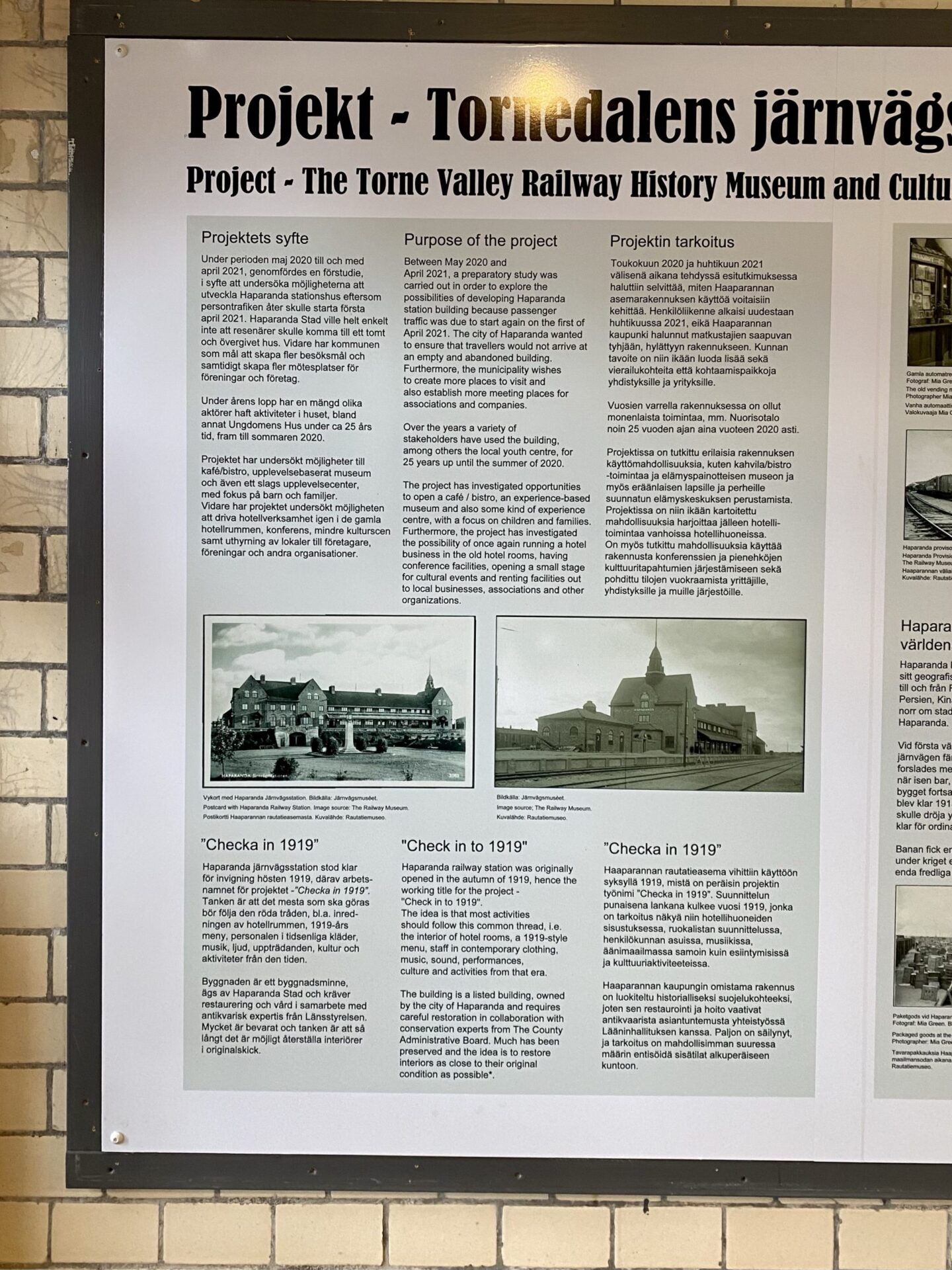 I was charmed by Haparanda station. Very much a forgotten place, this used to be a really important east-west link in Cold War times, but the line was closed for some years and only recently reopened. The Finnish side no longer run local trains to even their side of the border but there is a co-operative project between the countries to electrify the line and bring it back to life.