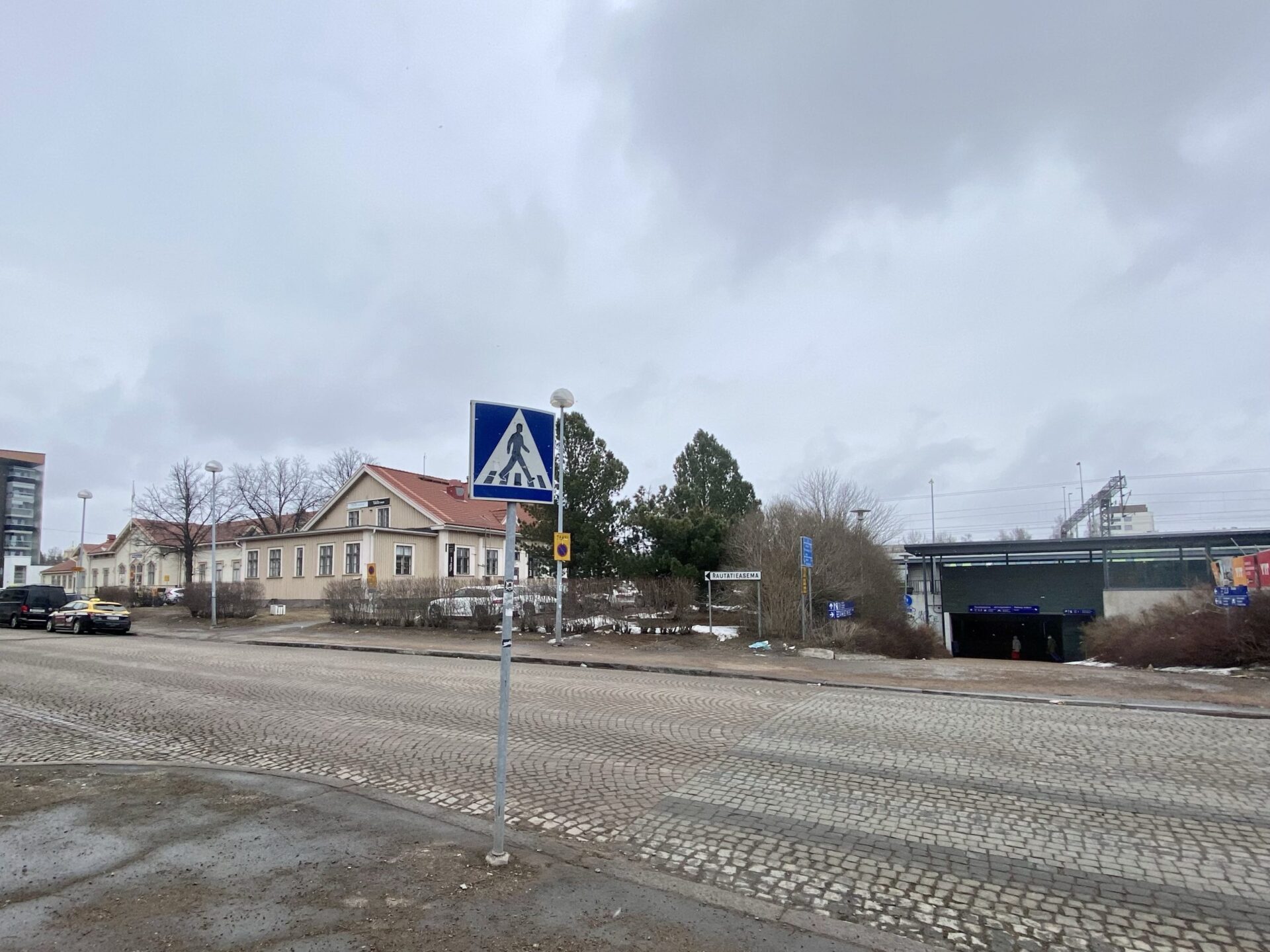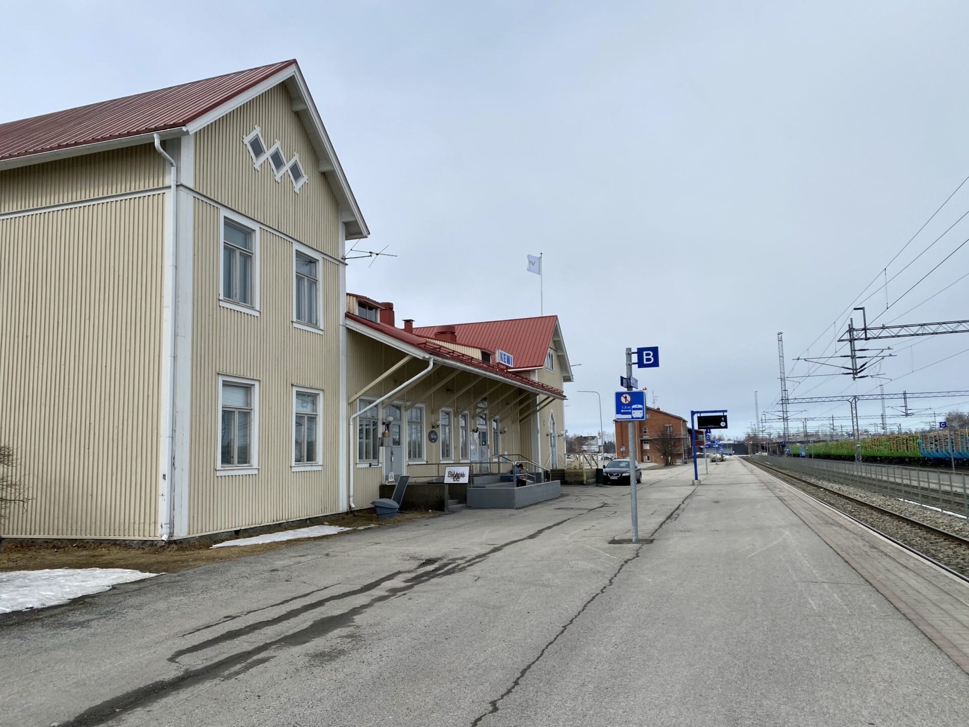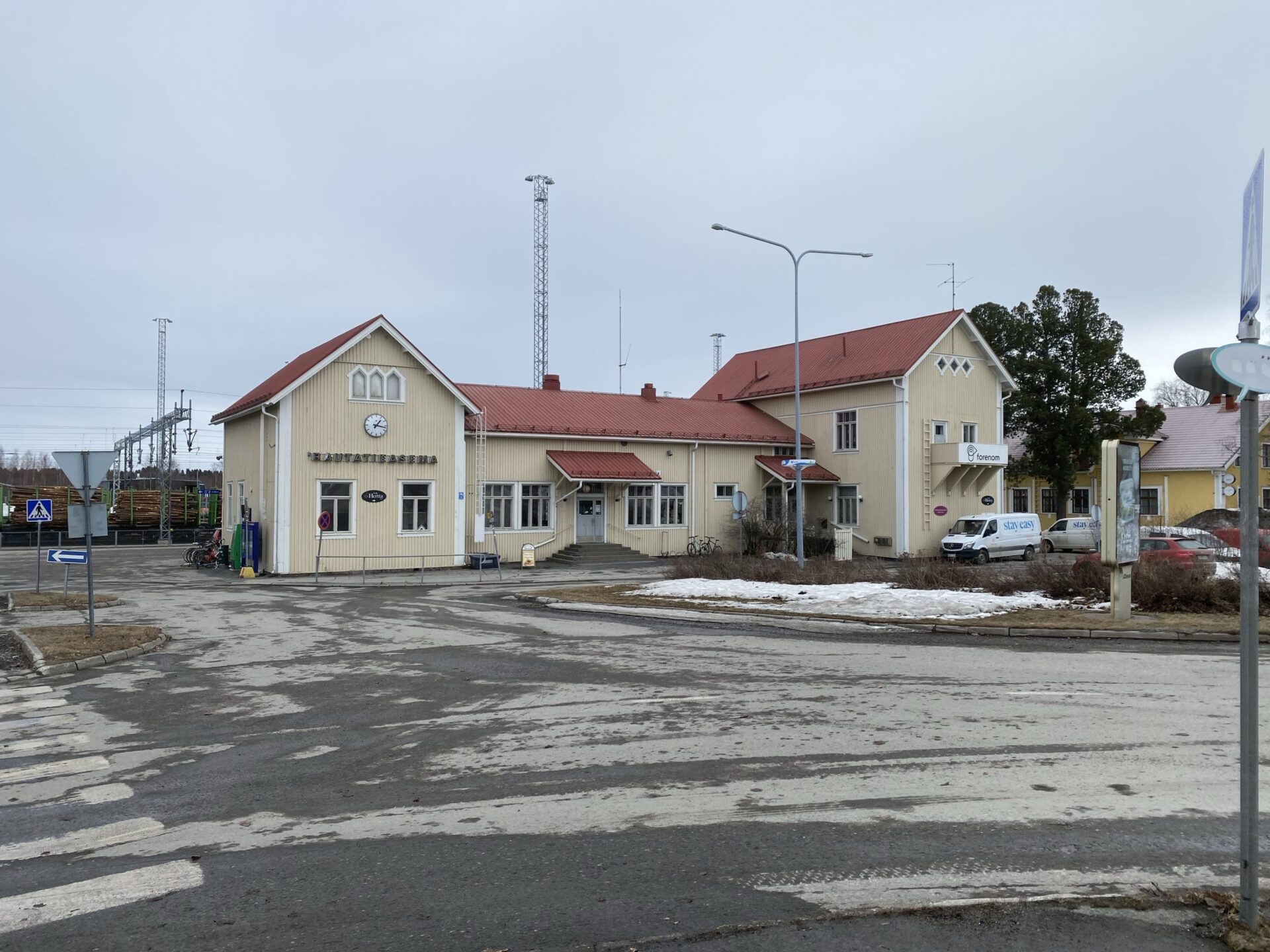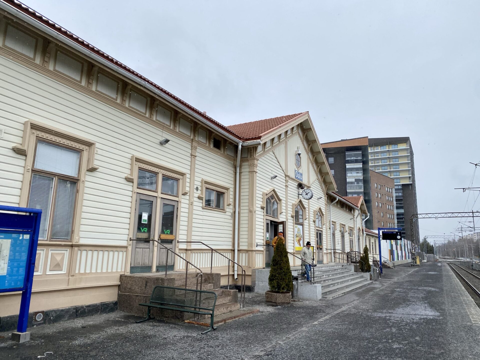 Oulu station is an odd place. The platforms are exited via an underpass which lead to streets at both ends. The station building was a couple of buildings down the road at one side. Not visibly connected to anything except the single platform outside it. It’s the building on the extreme left of the first picture below. The building between this and the underpass seemed to have nothing to do with the railway.