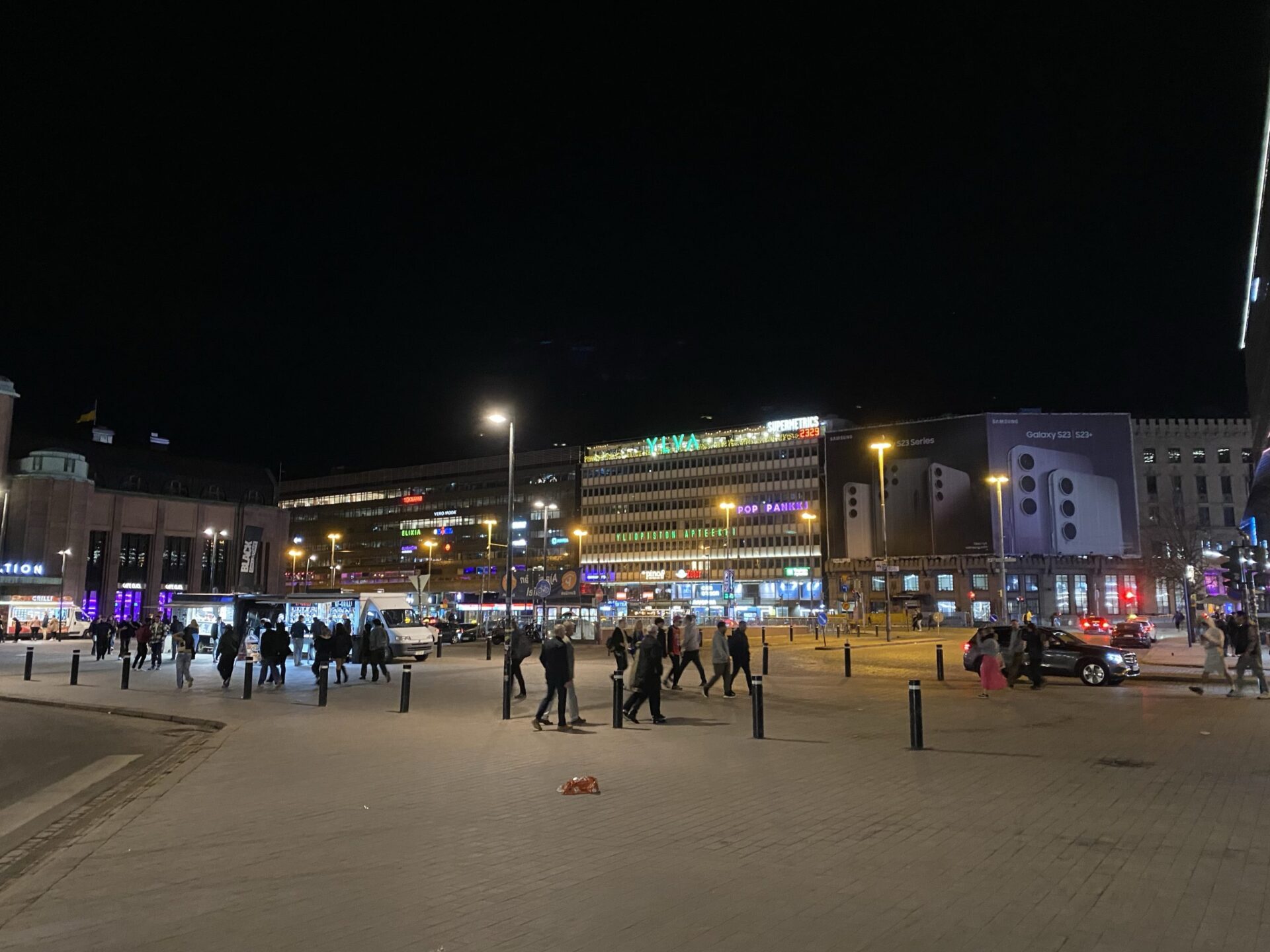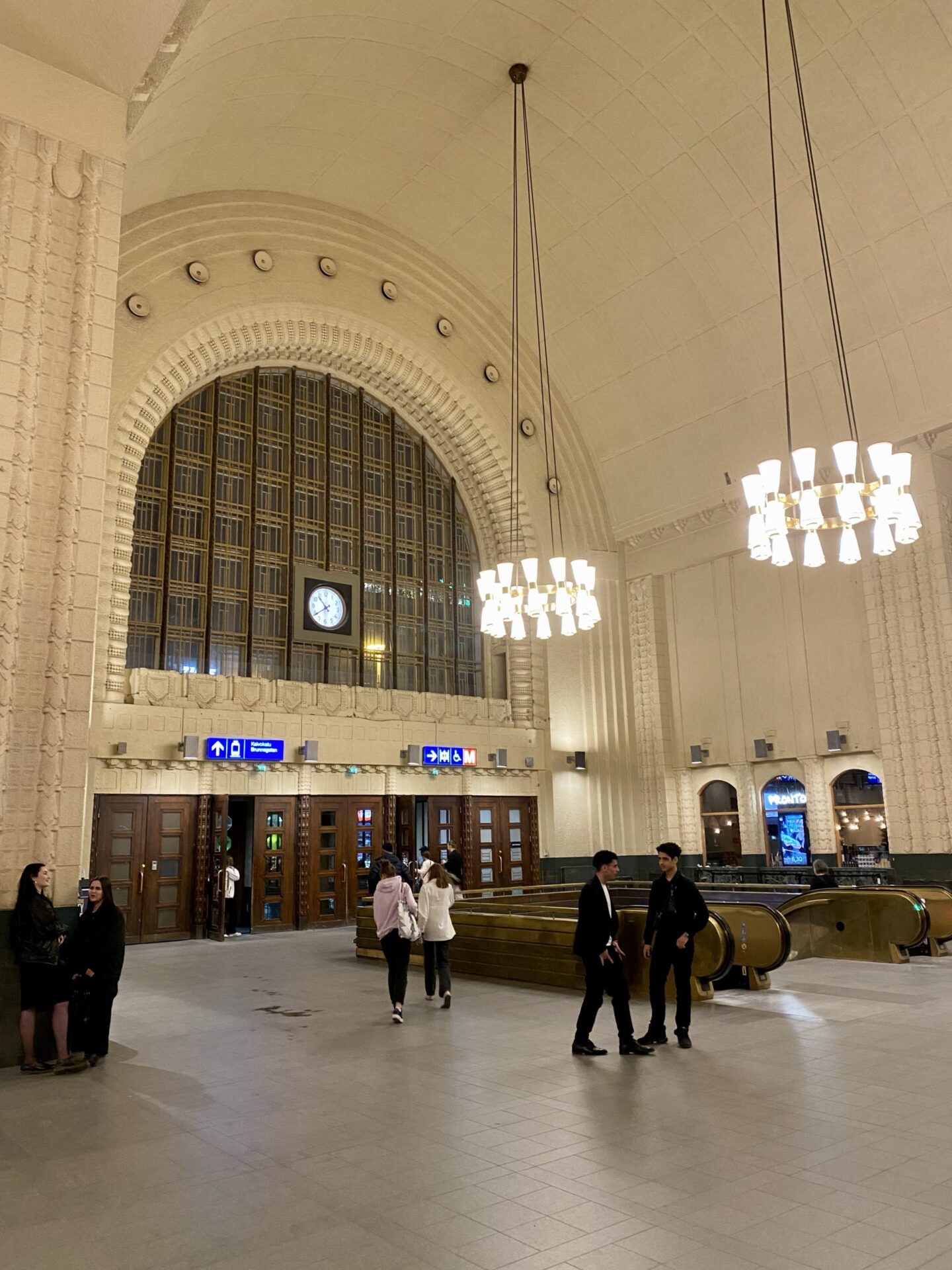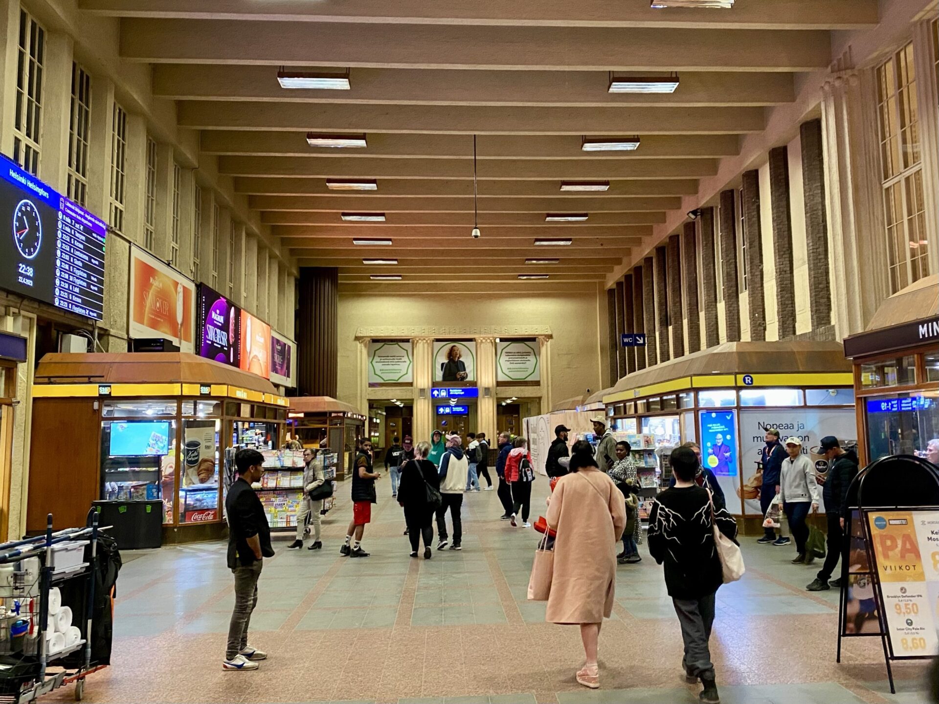As we travelled south the forests continued almost all the way to Helsinki, but the snow became less evident, and had all gone by the time we arrived, shortly after sunset. Helsinki station is impressive, and seems to be as much a place to socialise as to catch trains.