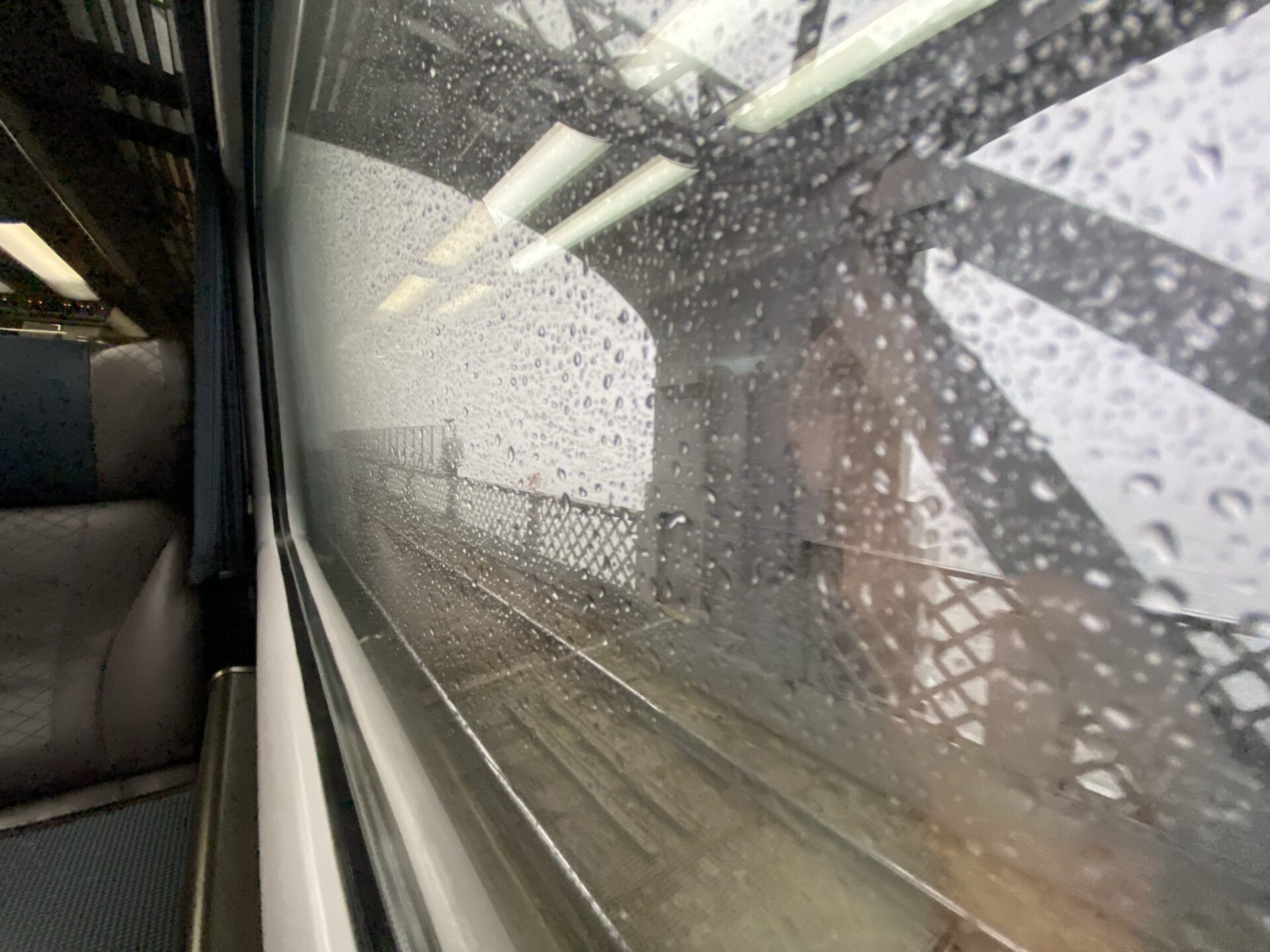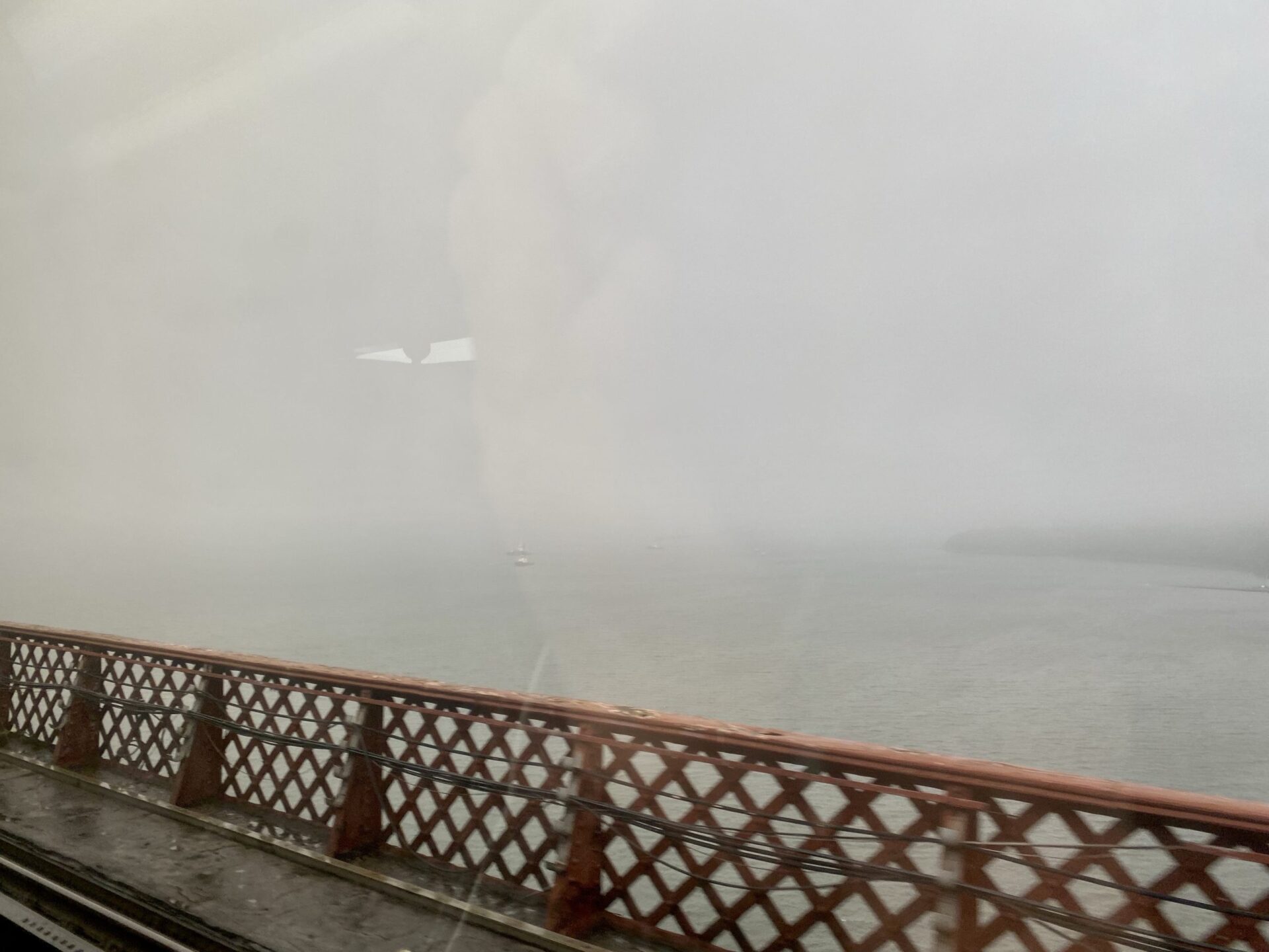 As we crossed the border, the weather changed. It relented briefly as I changed trains in Edinburgh, but by the time we were at the Forth Bridge, it was lashing down. I’ve not done the line through the middle of Fife to Dundee before, so was sad to not see much of it this time. I felt for the golfers getting off at Dunbar for their visit to St Andrews. By the time we crossed the Tay Bridge, we couldn’t even see the ends from the middle.