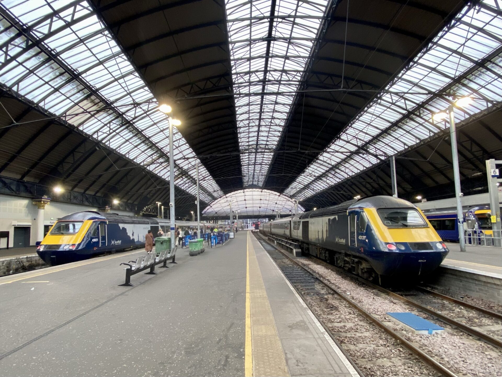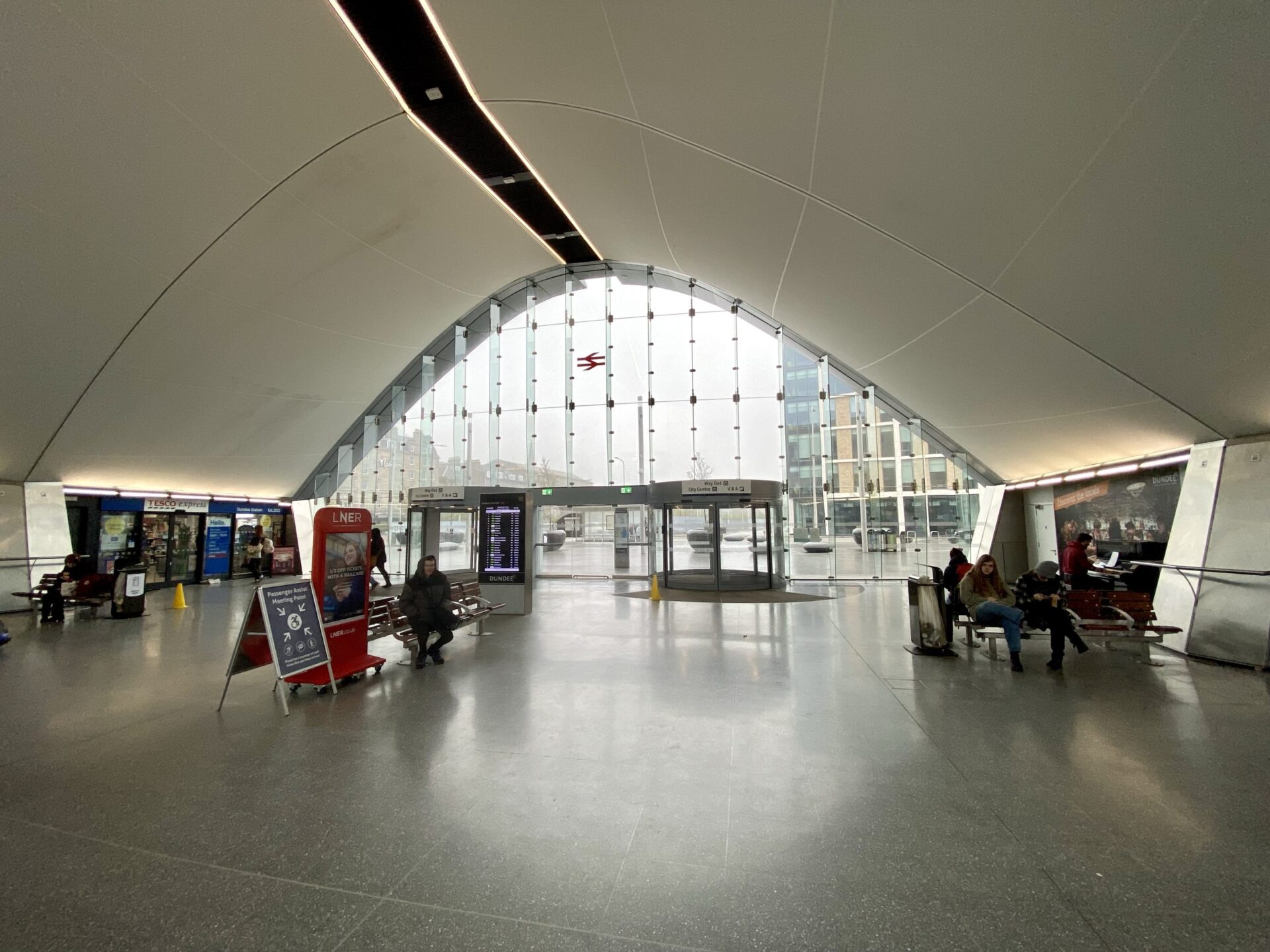 From Derby, it picks a quite convoluted route to the East Coast Main Line. Chesterfield, Sheffield, Wakefield and Leeds were all visited. At York we were bumped to the outdoor platform furthest from the city centre, so I didn’t get a look inside the station. I’m looking at stations a lot more carefully having seen so many lovely ones (both new and old) on my travels. From here the speed picked up. I glimpsed Durham Cathedral and the Angel of the North in the distance, and took a quick look at Newcastle station as we paused there for a few minutes.