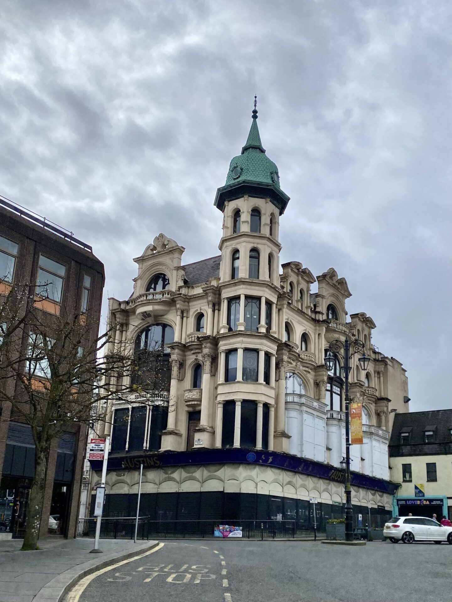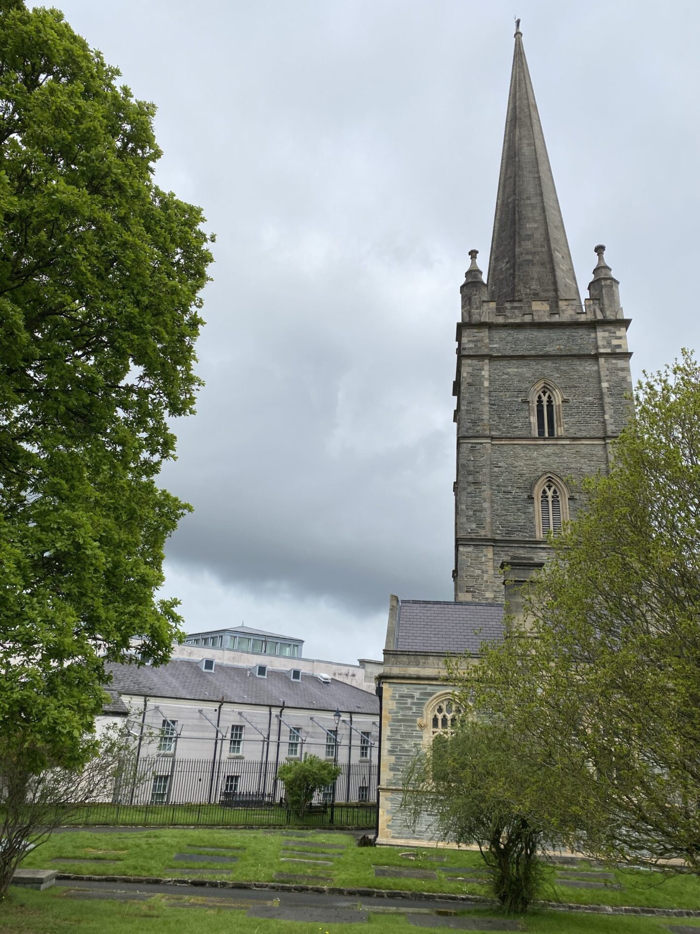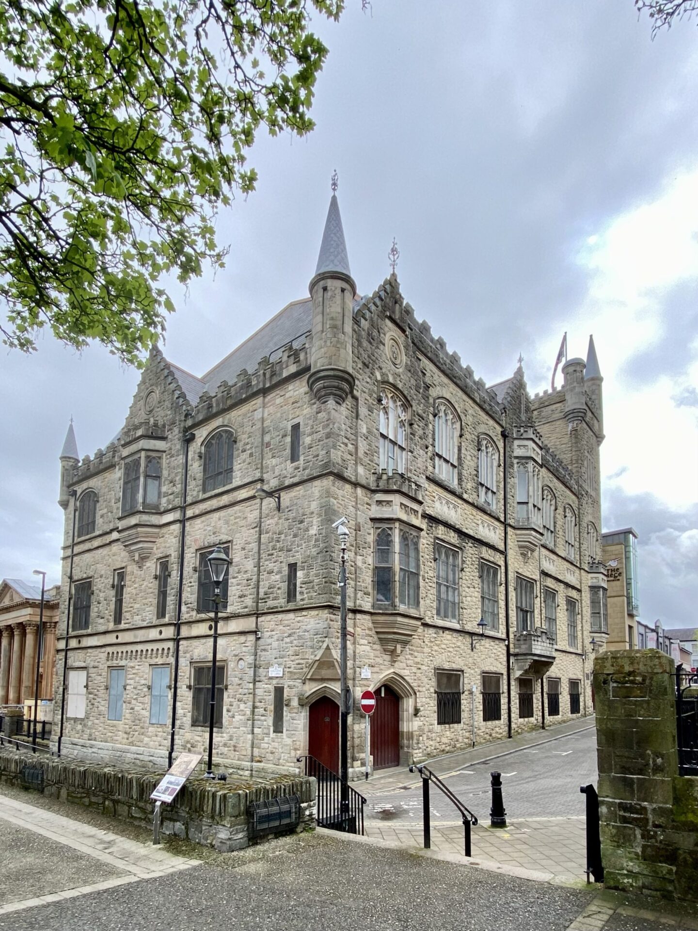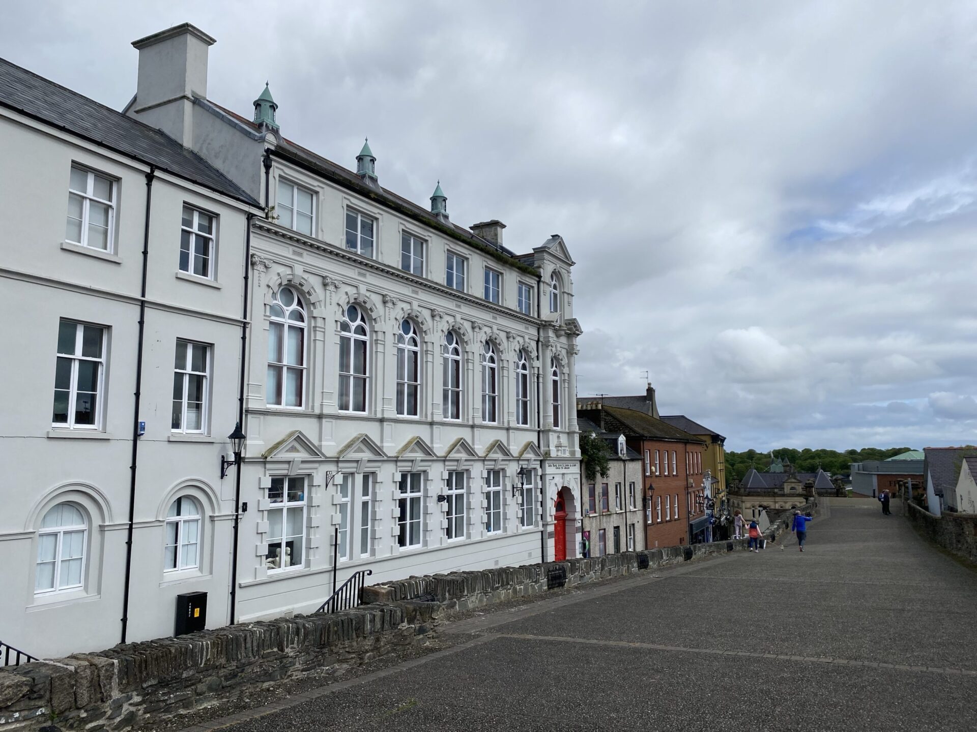 I passed the Apprentice Boys Memorial Hall. Here there is a high fence on the outside of the wall, and it is an area where the land has been cleared and grassed. One thing I admire about this city is it’s not afraid to tell it’s difficult stories. There are boards all over the place and I learned a lot from them, not least in this area.