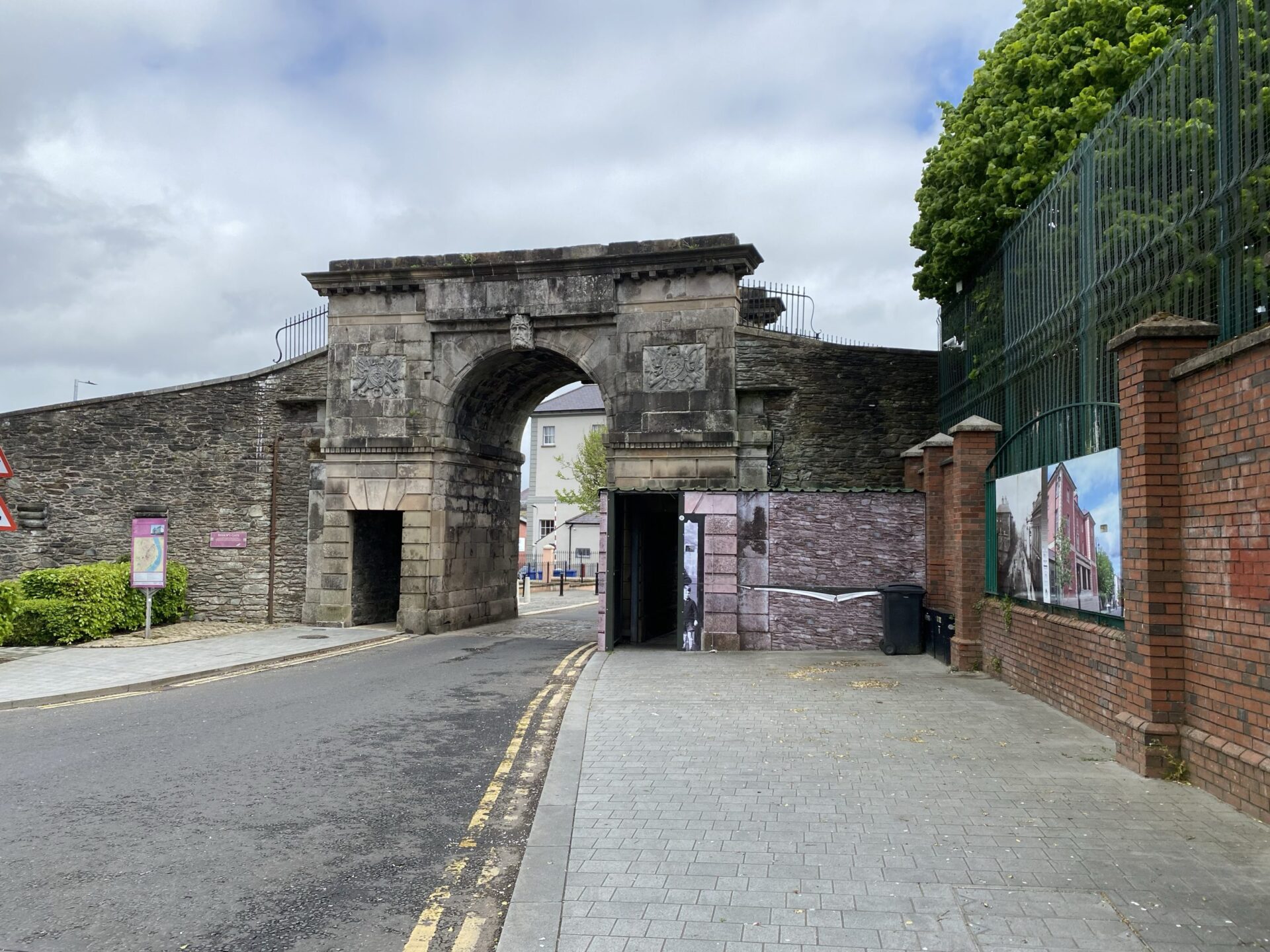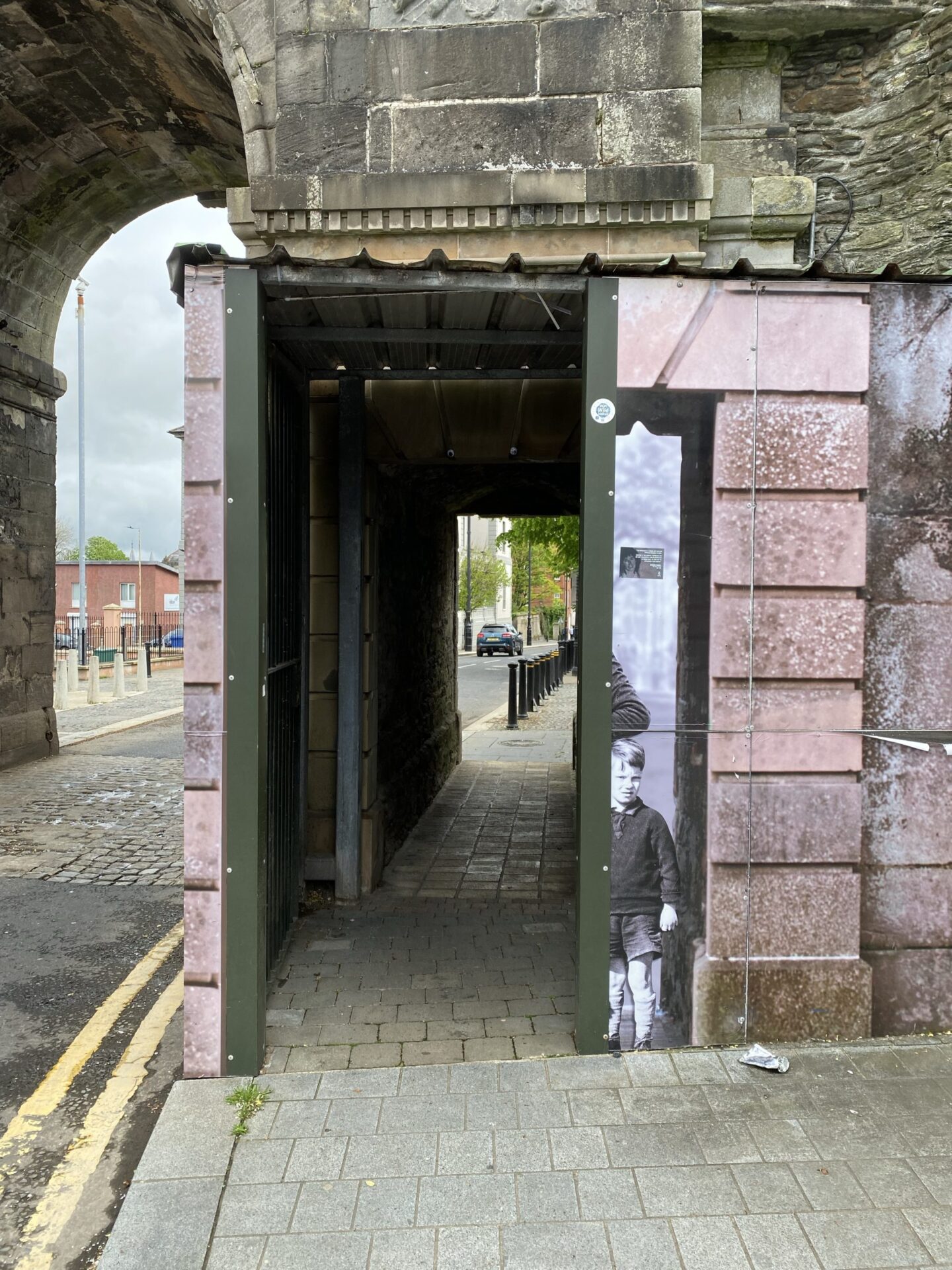 Returning to the walls I discovered that as well as its historic function, the gate forms part of a barrier that is still used daily. There is a side entrance which is locked each evening, as it is part of the boundary between nationalist and loyalist areas. It is also the site of a former prison, of which only one tower remains. This is now a museum, but it was not open when I was there. I realised that Bishop’s Gate itself has barriers on both sides, which can be locked as needed.