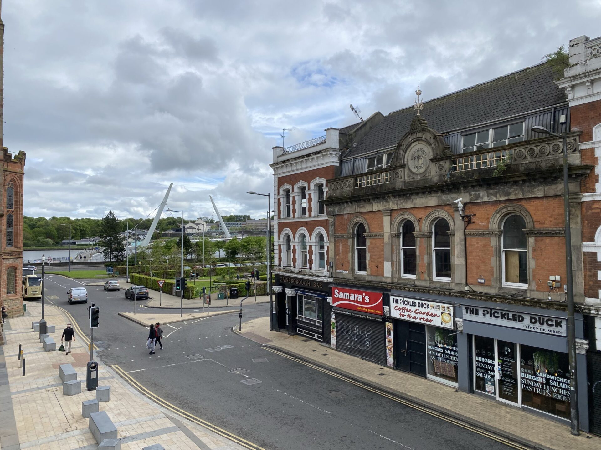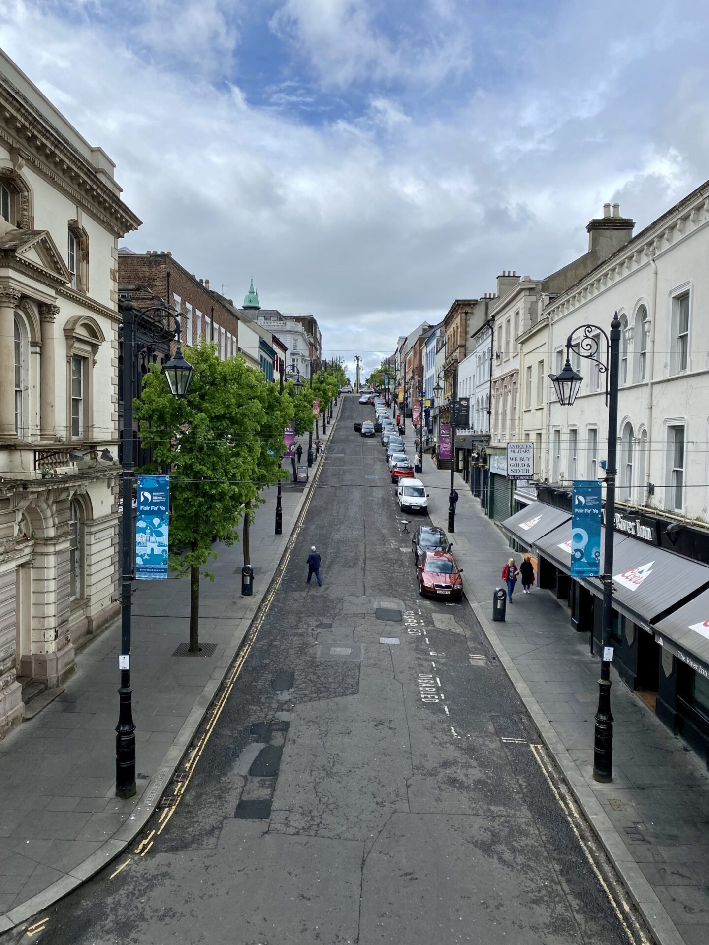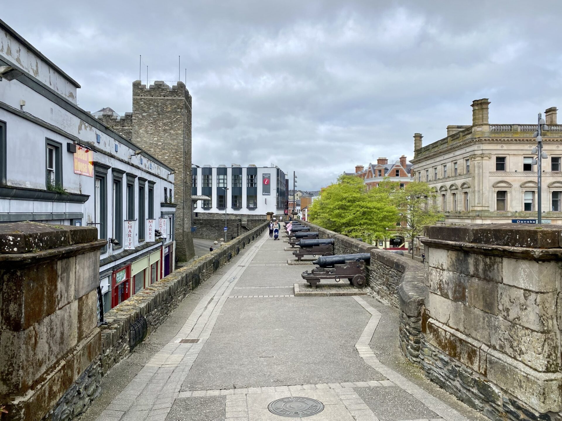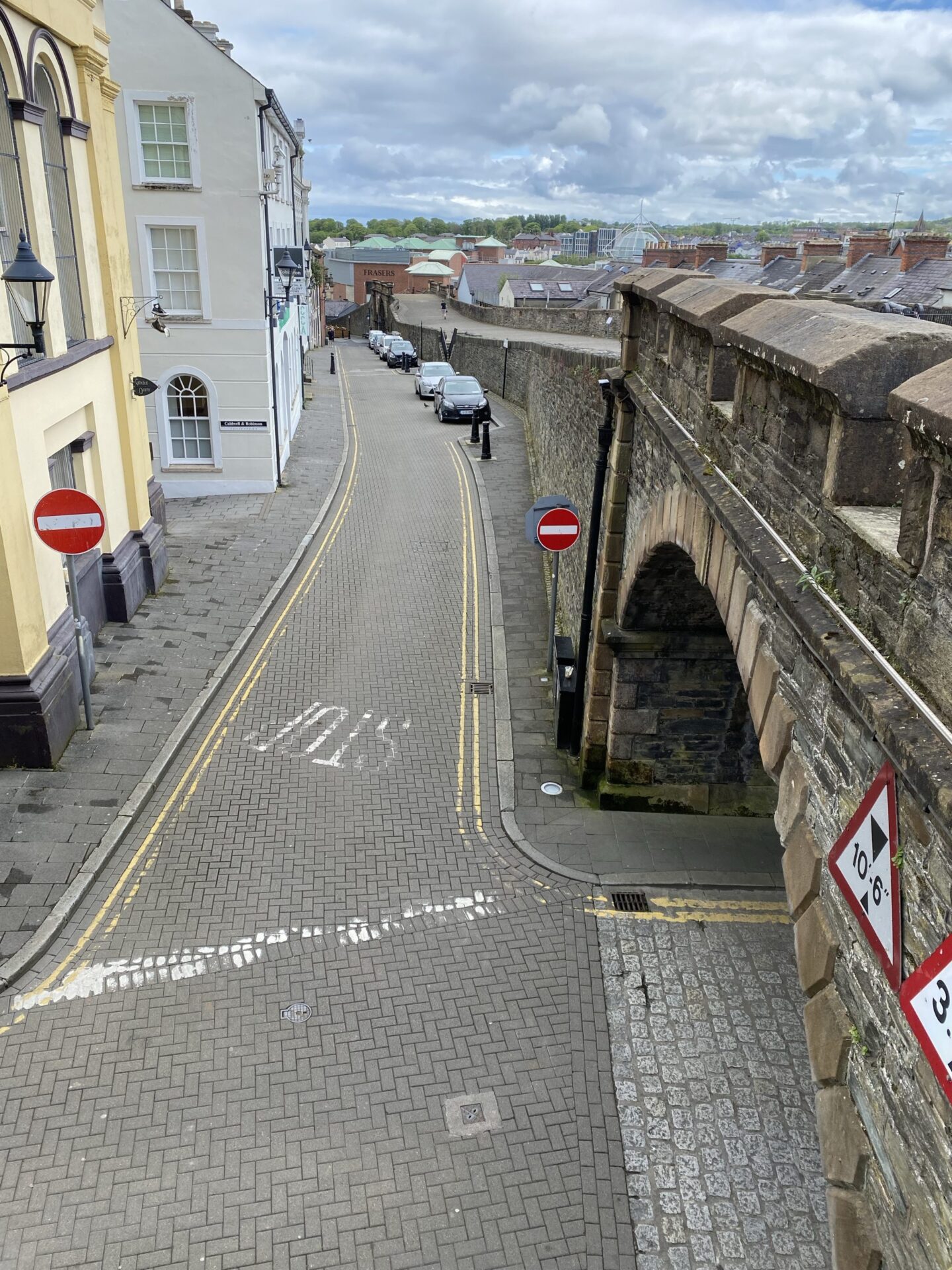 I completed the circuit of the walls, taking me me back to where I had started, via a few more gates. as everywhere there were buildings close to the walls on both sides. There were views of the Peace Bridge, as well as a really good view up Shipquay Street to the historic centre of the city.