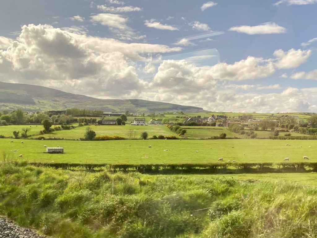 As we left Dublin, the train manager came through the carriage apologising that there would be no automated announcements on the journey and the overhead signs were not working, due to the weather – there was thunder and lightning outside, the first I’ve seen on the whole trip.