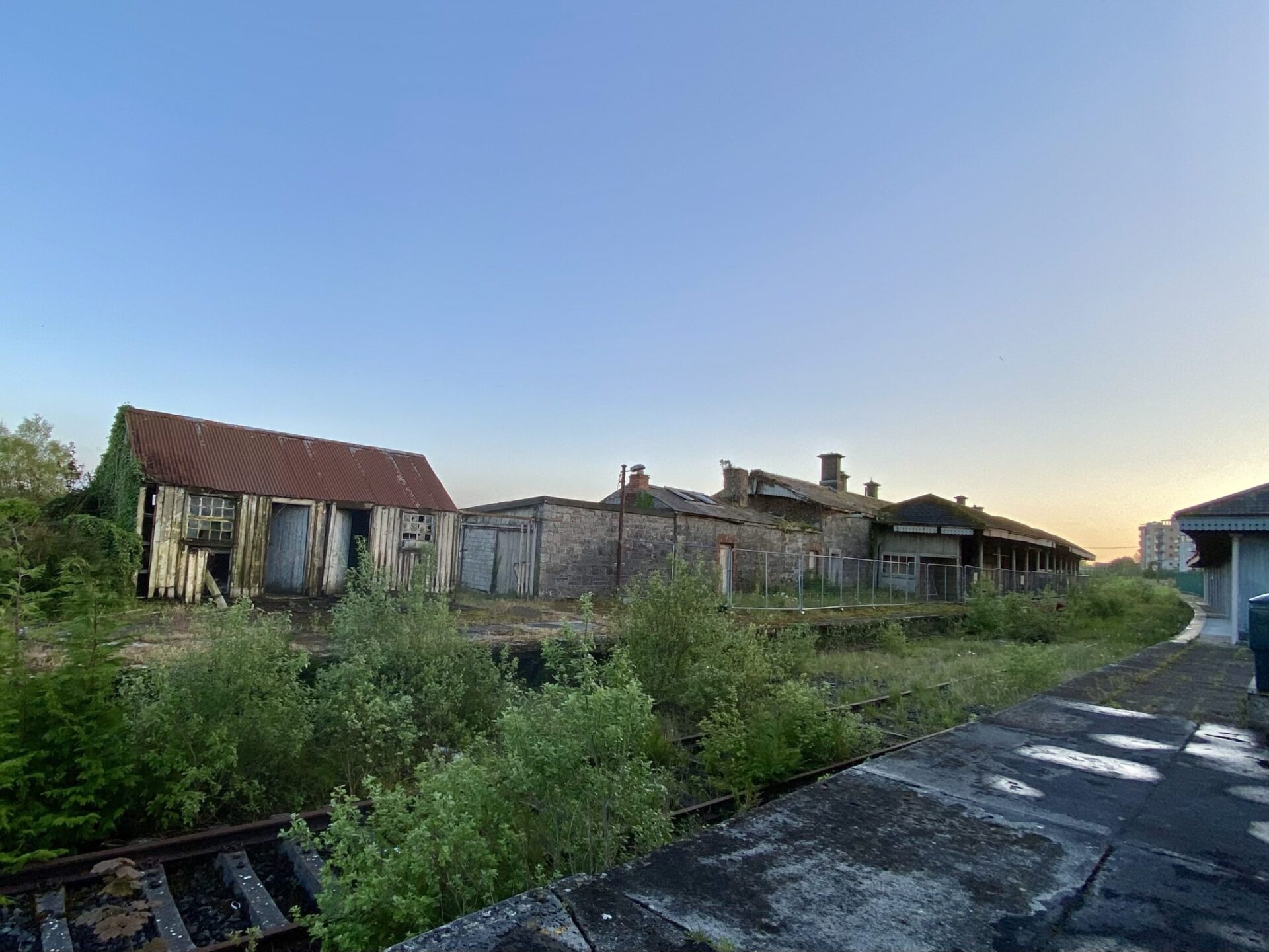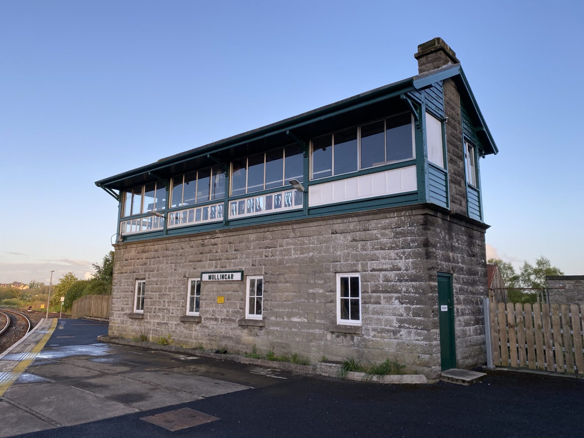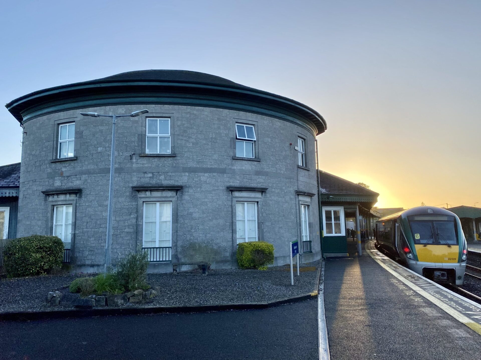 Many of the lines in Ireland are single track, with services passing in short double track sections, usually at stations. At Mullingar, our service was held for 10 minutes while a delayed service arrived from the opposite direction. The storm having passed, we were given the chance to stretch our legs and I was amazed to find the remains of another part of the station, which had served a now-closed branch, as well as some lovely buildings which were still in use. Apparently there is also a turntable here, used for the occasional visit by a steam train.