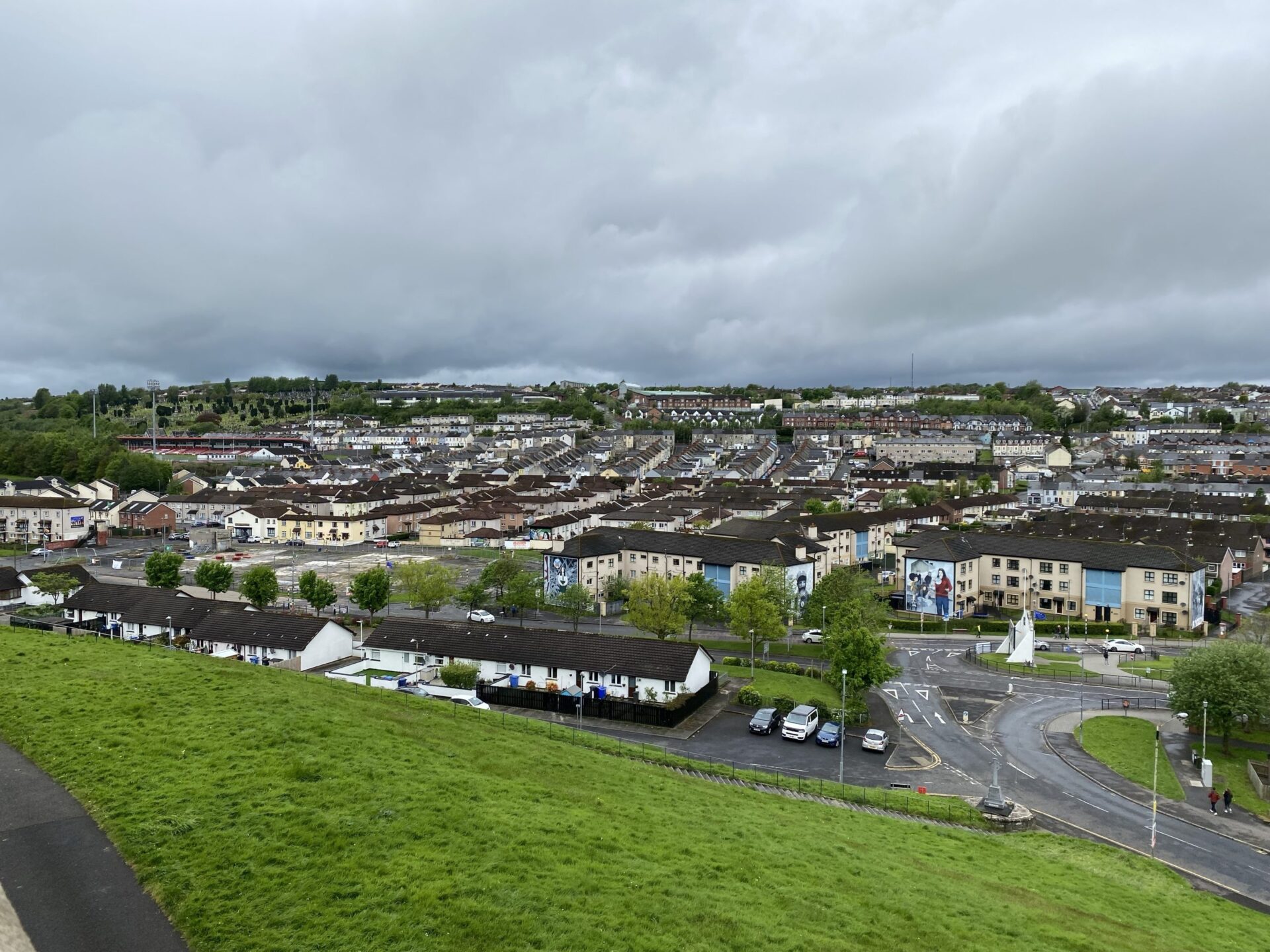 I’d arbitrarily decided that I would walk anti-clockwise, starting at the corner closest to the visitor centre. That took me uphill with the old town to my left and new developments to my right. As I climbed higher the view opened out, and I found myself looking towards the Bogside district.