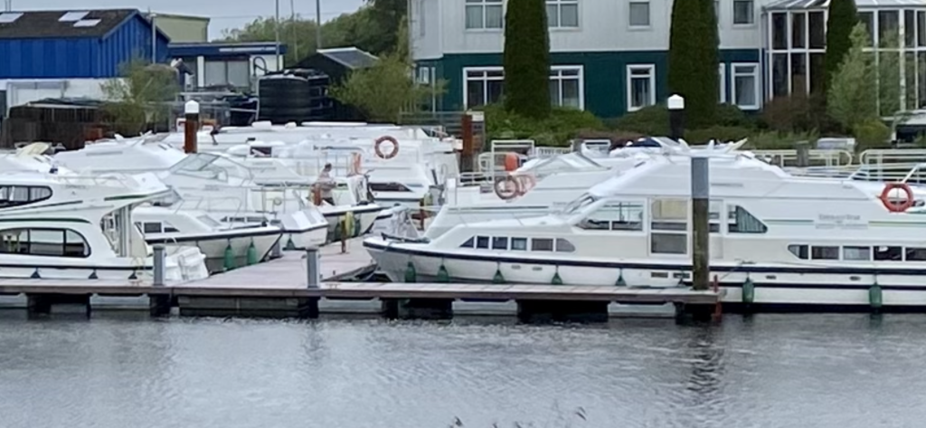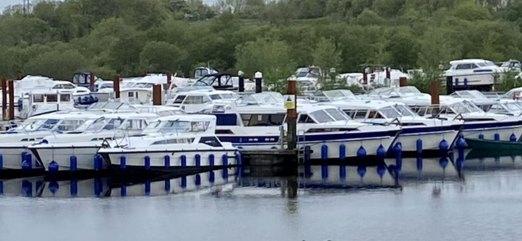 As I walked to the station, I was amused to see in the daylight that the boats on the pontoons in Carrick-on-Shannon appear to be sorted by colour – not of the boat but of the fenders. All the blue-fendered boats were on one pontoon and all the green ones on the next. I wonder what that is about.