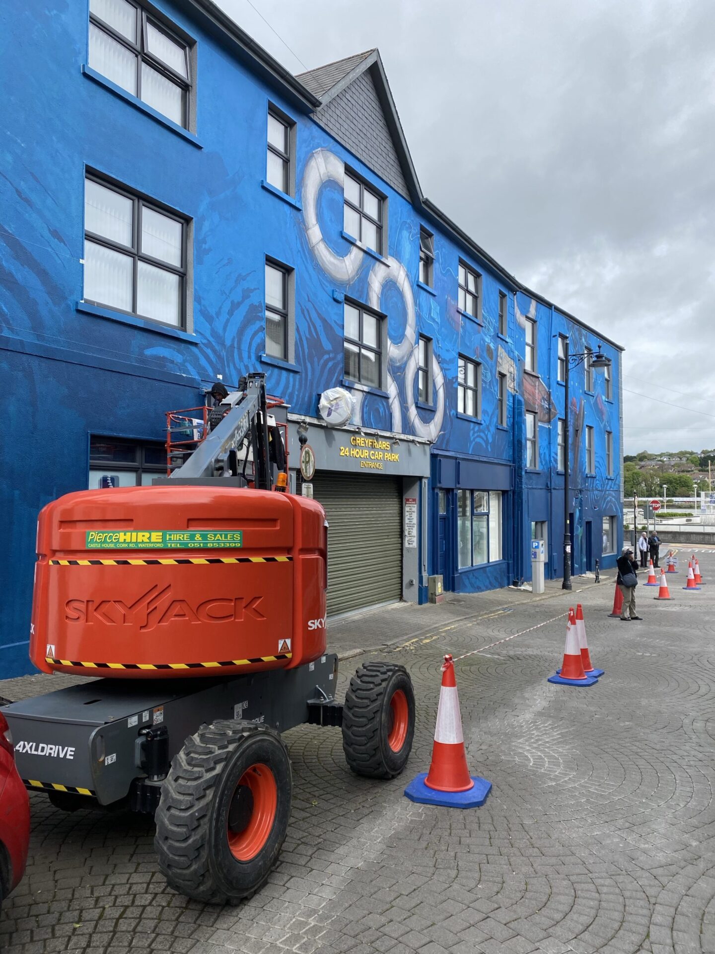 I started the day with a short walk around Waterford. An oddity that I’d not spotted last night is the family home of a certain Mr Jacob, the famed cracker maker. I also saw a few murals that I’d not seen the night before, including a rather sweet small one. Another one that I had spotted last night was being worked on and I had returned hoping to see the artist at work. Sadly he was too busy sorting out his diagrams and equipment, and I had a train to catch.