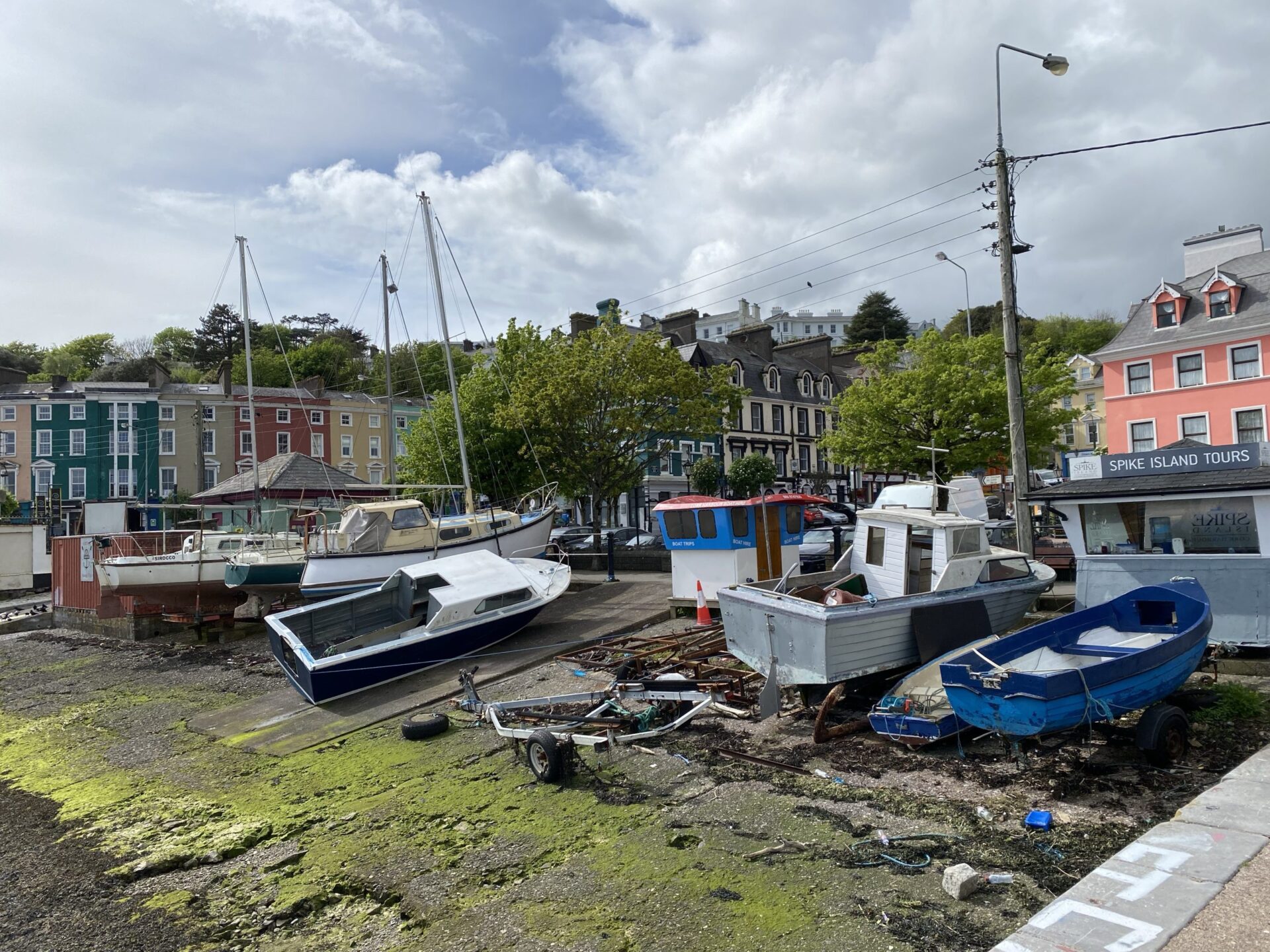 At Cork, I changed to the small local service to Cobh (pronounced, “Cove.”) This short journey has plenty of interest as it runs through low-lying coastal areas on the way to the terminus.