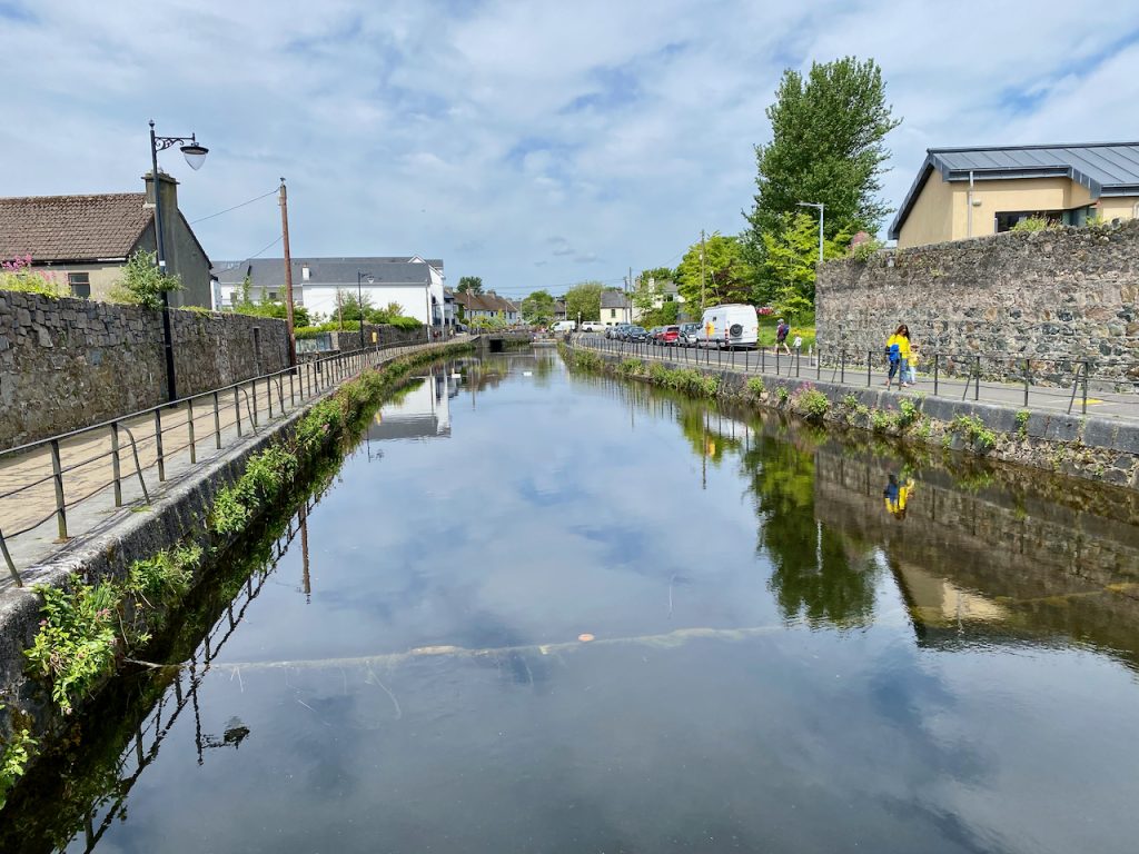 The waterfront of the River Corrib is all rather attractive. The river has what seems to be a culvert running down the side, at a higher level.