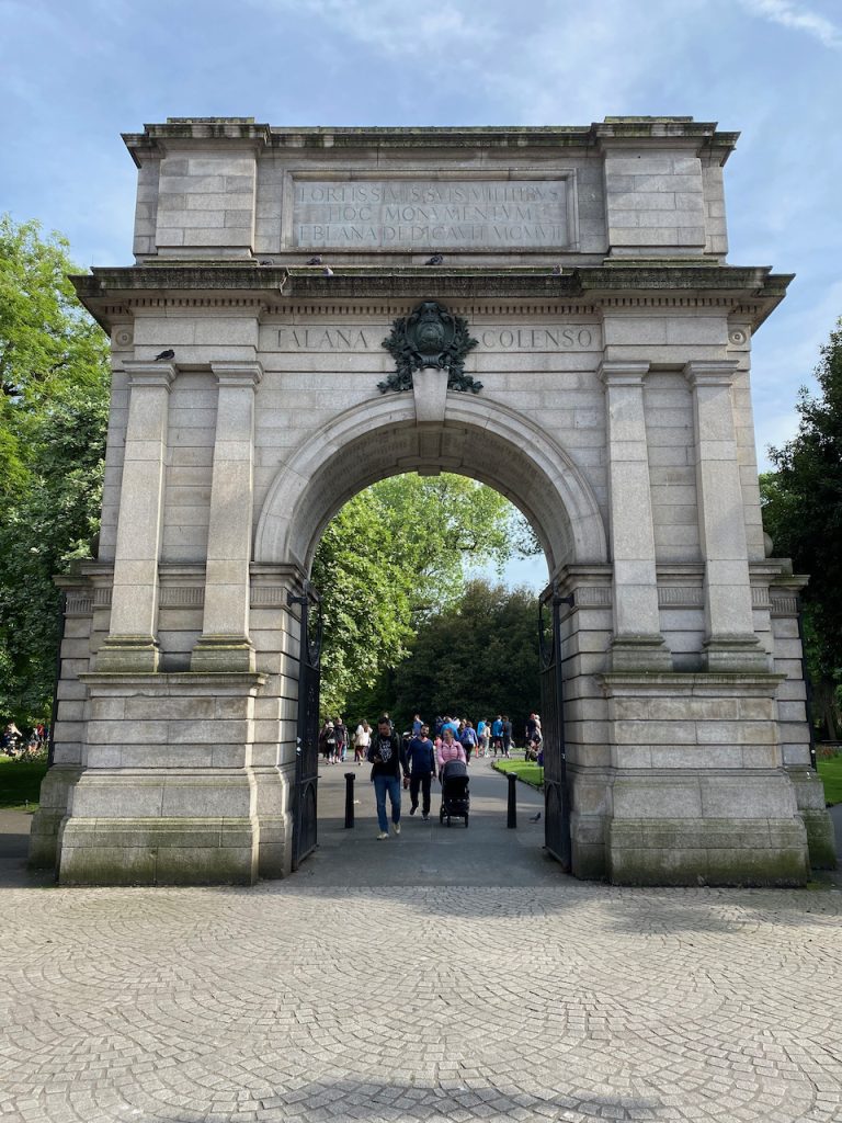 I’ve not walked through Trinity College in a while. As well as the usual tourists looking trying to get a look at the Book of Kells, there was a cricket match going on. Not what I expected to see. From here, I took a wide route via St Stephen’s Green. The opening scene of one of my very favourite films was shot at this entrance to the park.