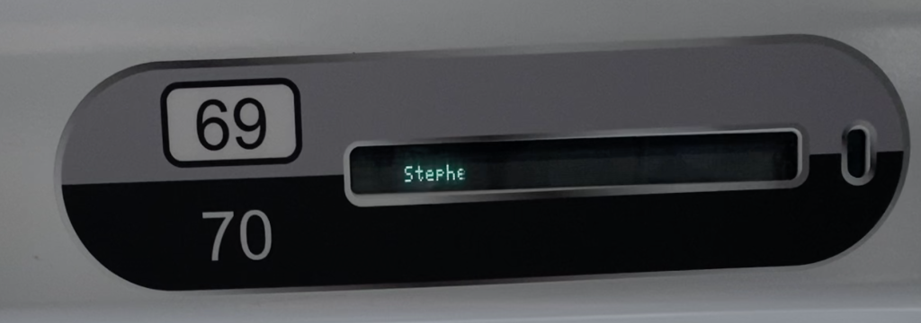 I walked back through the city centre to the station and my train to Dublin. Now that I was on ordinary tickets, after the expiry of my Interrail pass, I’d had to book everything. One odd consequence of this was that my reserved seat had my name on the board above it, the only time on the whole trip that this happened. (needless to say it wouldn’t photograph properly!)