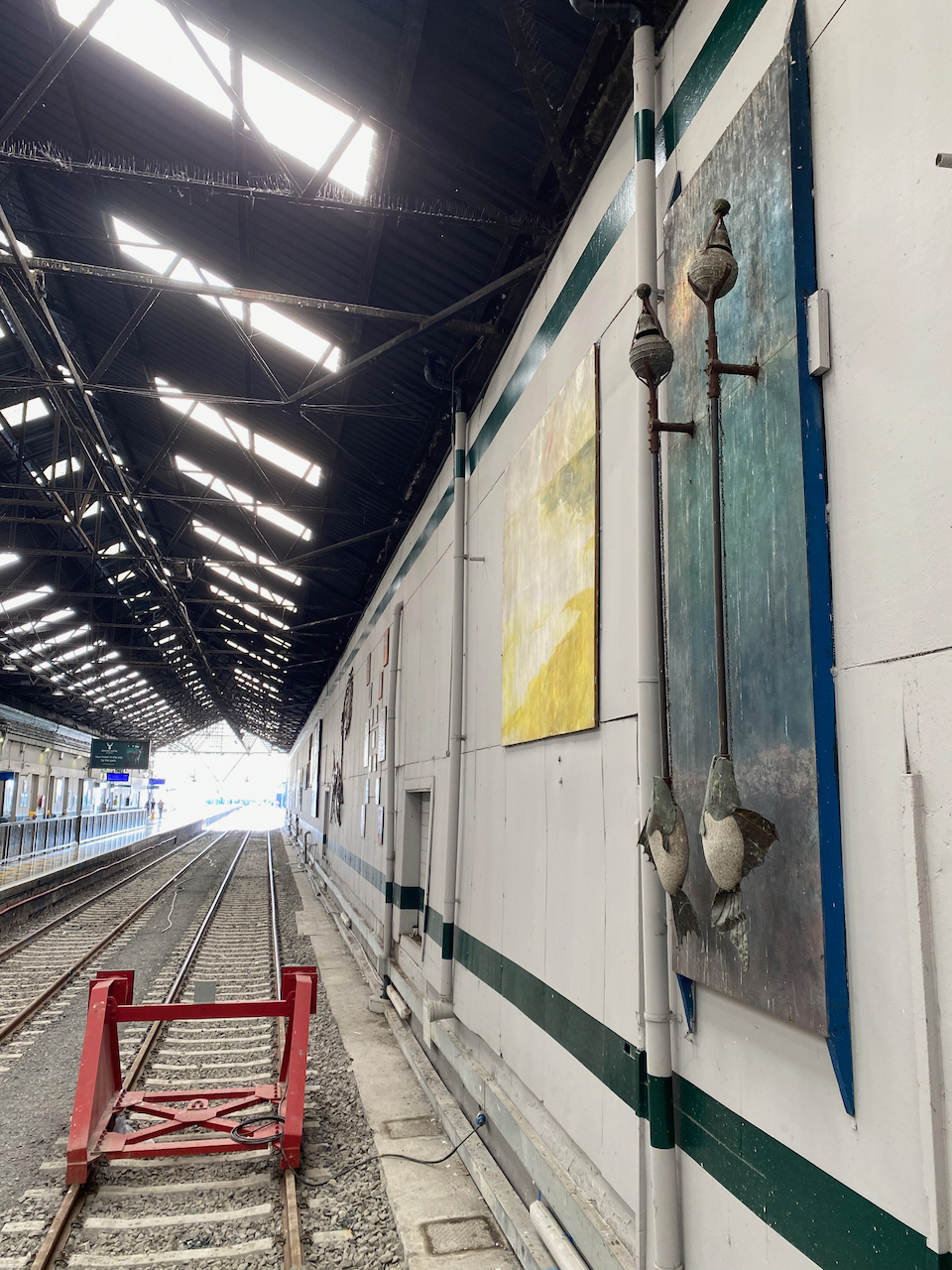 My Saturday morning train to Galway was heaving. I didn’t even get a seat. Fortunately it wasn’t a long journey. Like Limerick, Galway station is somewhat utilitarian, though with rather odd decoration on one wall.
