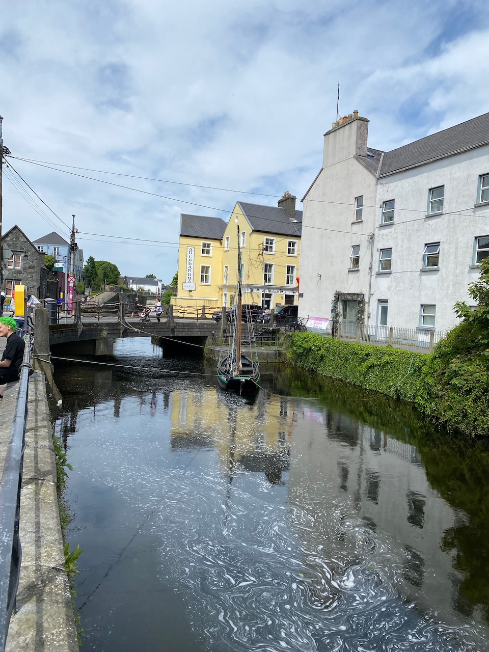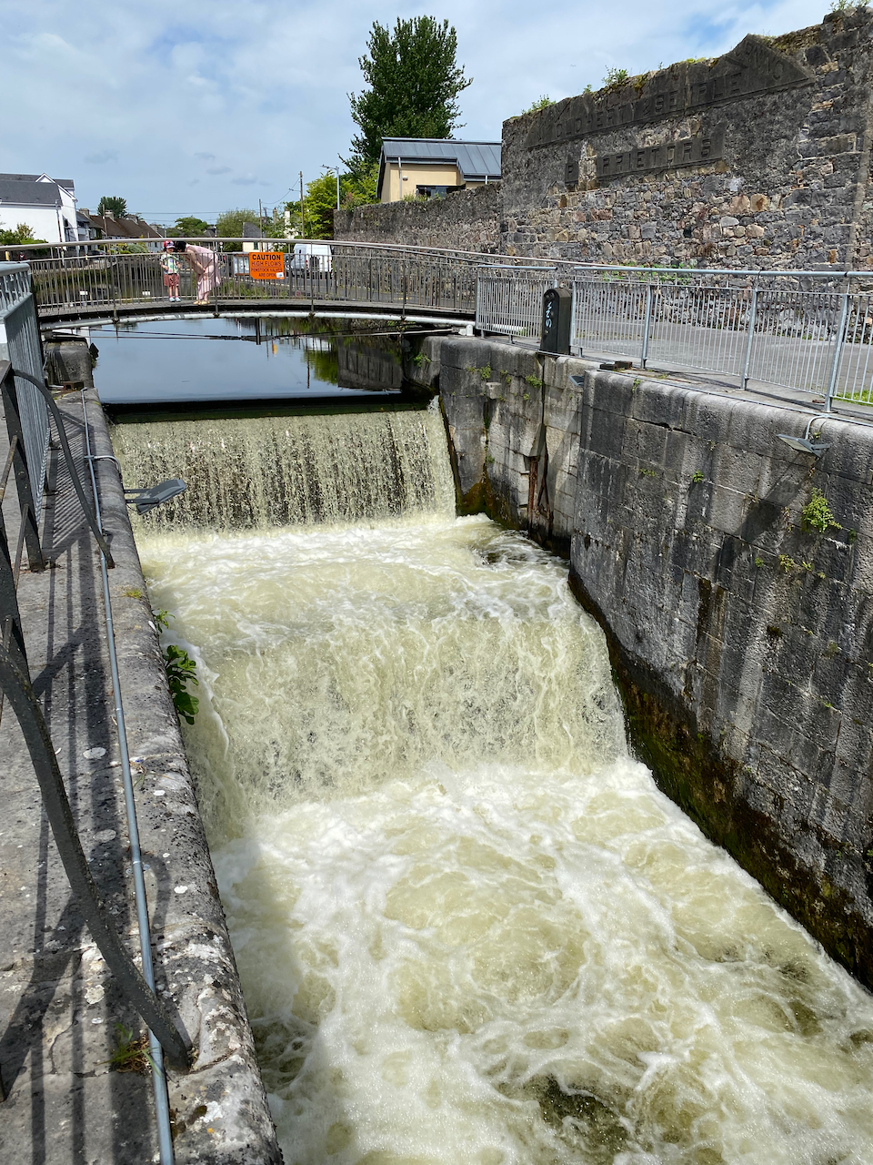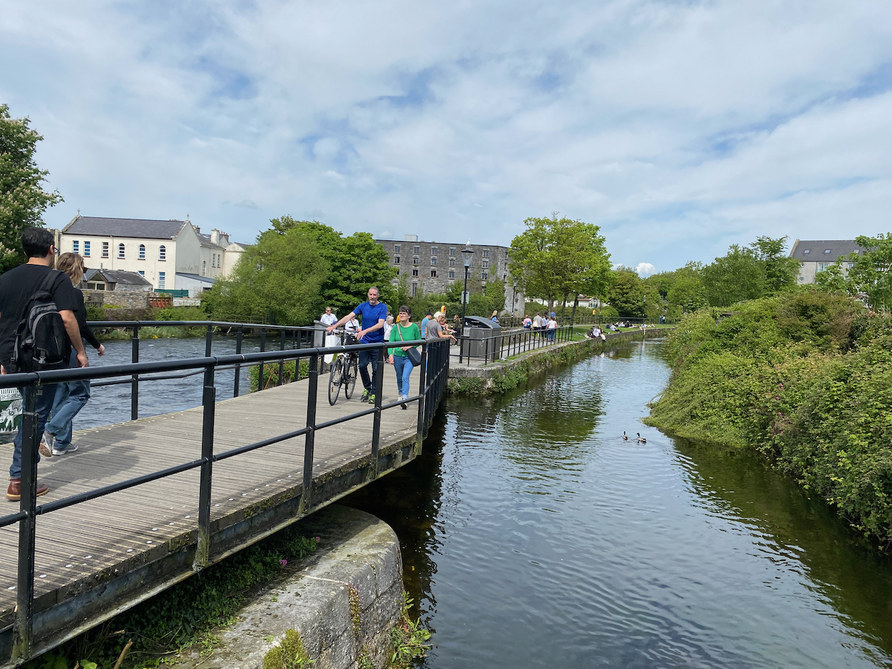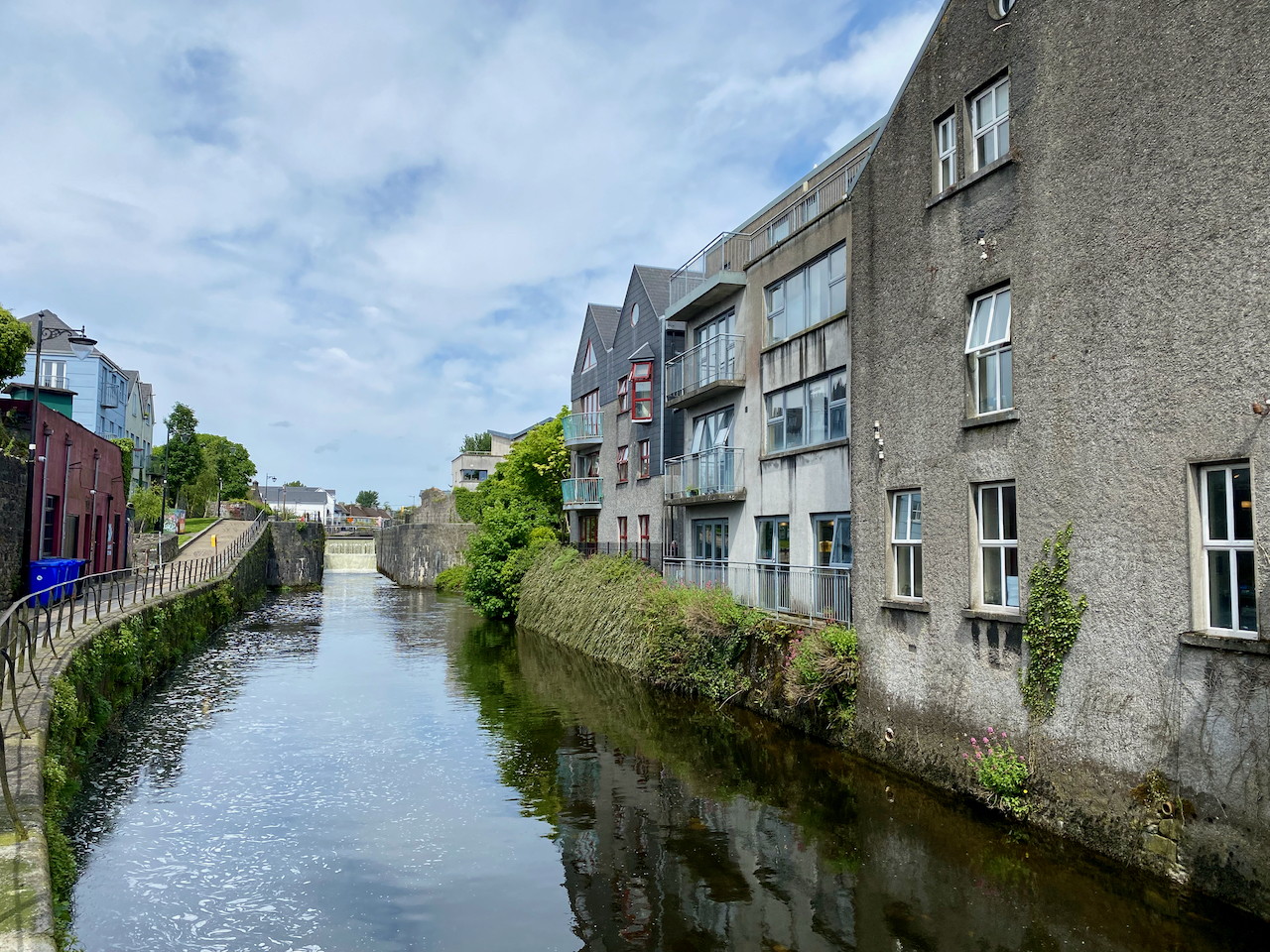 The waterfront of the River Corrib is all rather attractive. The river has what seems to be a culvert running down the side, at a higher level.