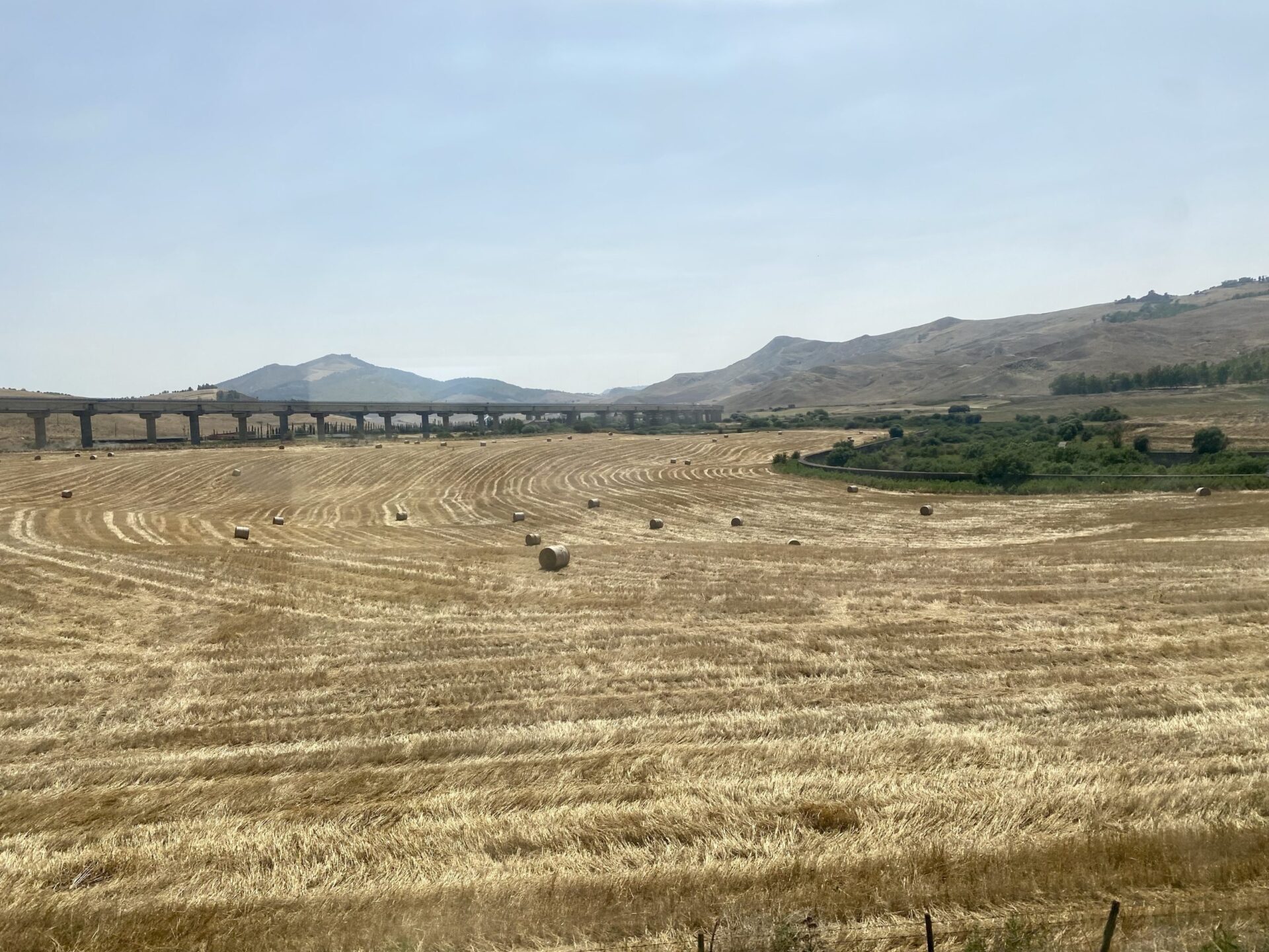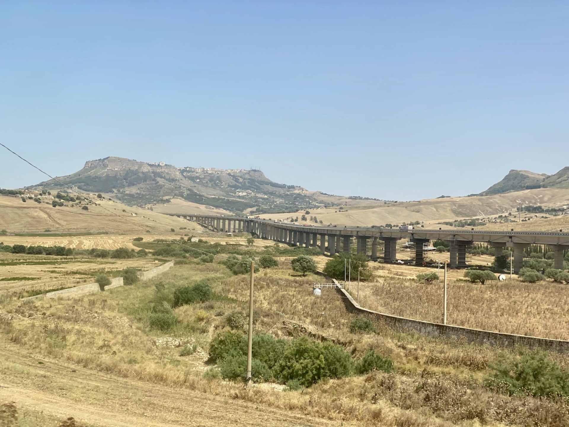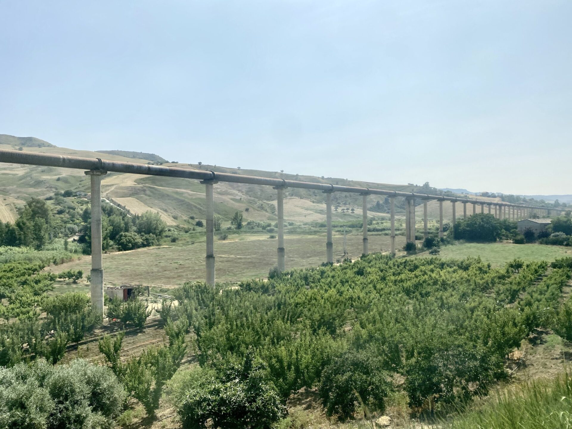 At Roccapalumba-Alia, I had a short wait (in the subway between platforms 1 and 2, as it was 39 degrees at ground level) then boarded the train to Dittiano. The scenery through this section is pretty unspoiled, so I was surprised by looked like an unnecessarily elevated road at one point. Maybe the valley floods, I can’t think of another reason to do this. I also spotted the modern take on an aqueduct crossing a valley. I’m not sure the Romans would have approved!
