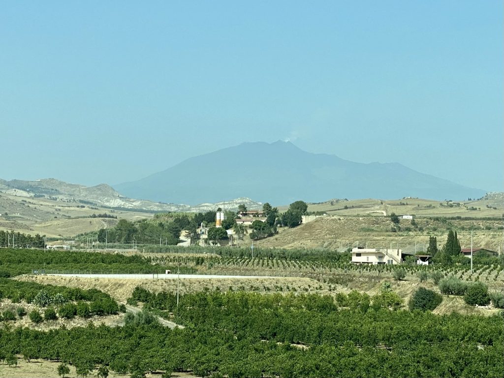 I then transferred back to another coach as the next section of the line was also being worked on. This was only a short journey, and dropped me off at Catania airport, some 40 minutes later. Leaving here gave me a slightly better rail connection than going into Centrale station. On the way I got a distant glimpse of Etna, gently steaming away.