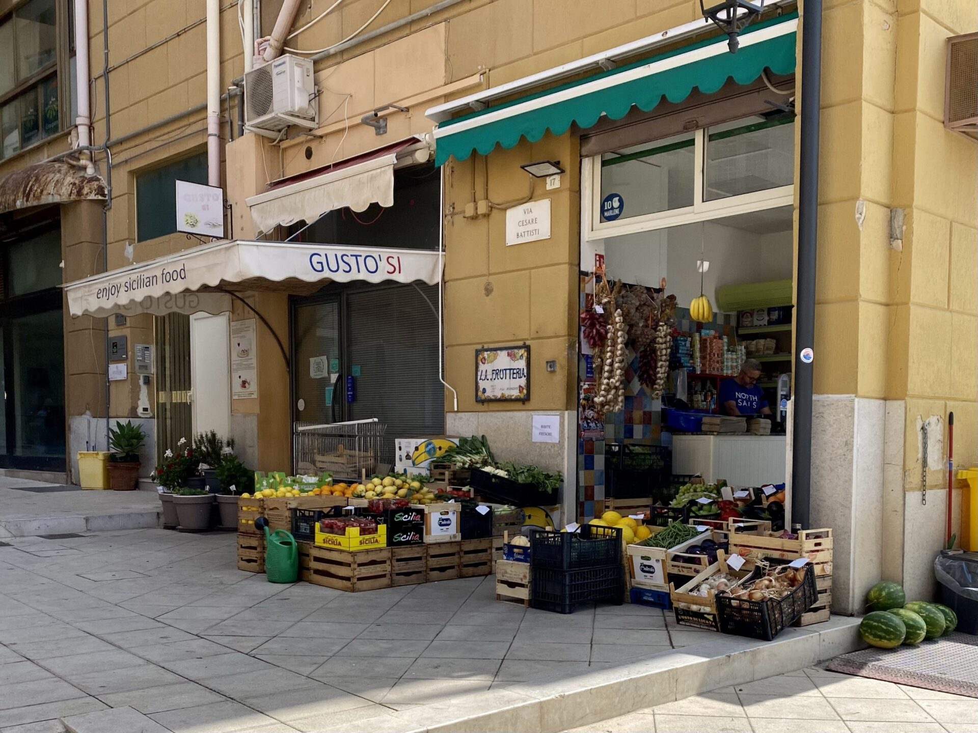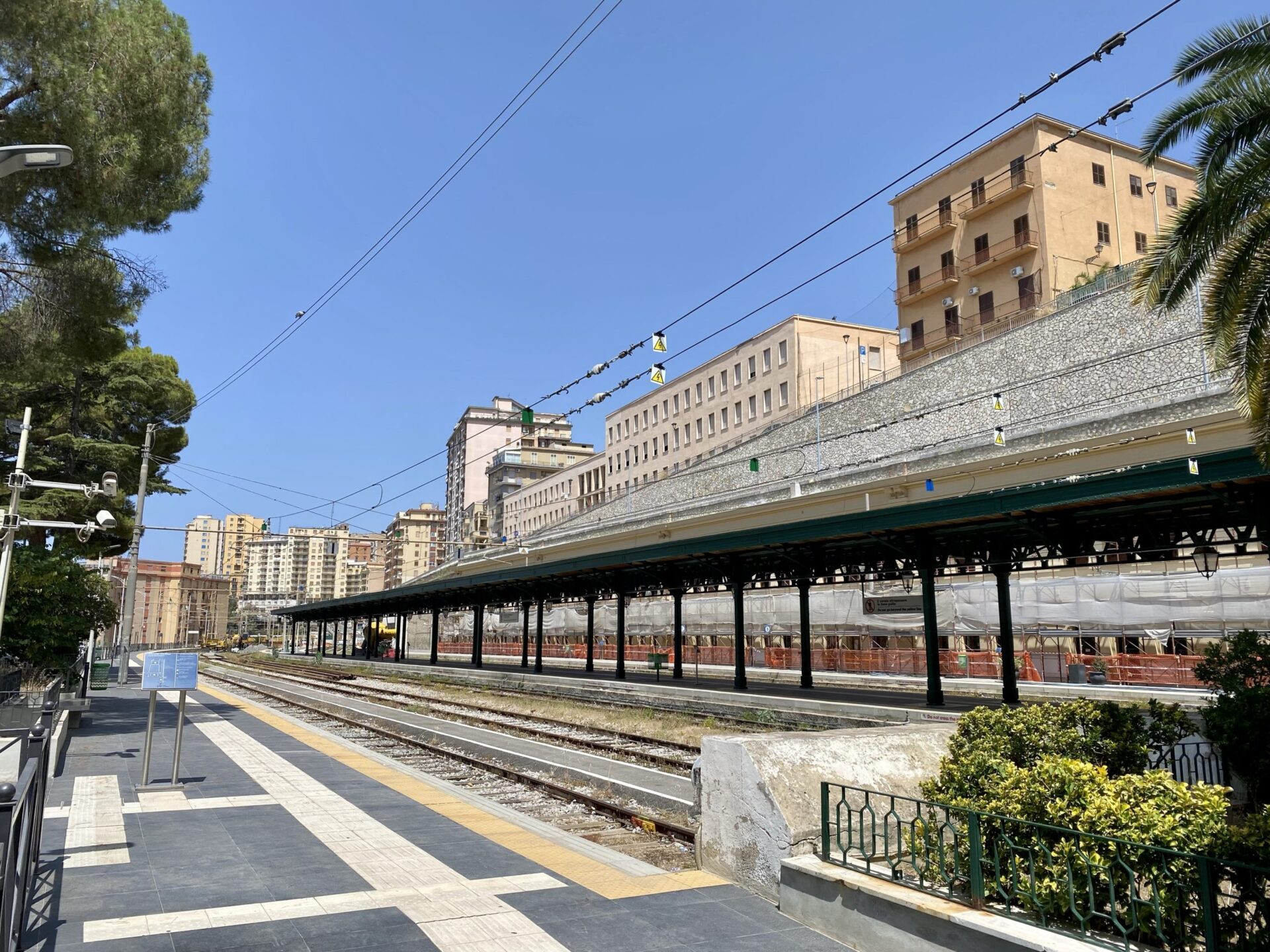 At Roccapalumba-Alia, I had a short wait (in the subway between platforms 1 and 2, as it was 39 degrees at ground level) then boarded the train to Dittiano. The scenery through this section is pretty unspoiled, so I was surprised by looked like an unnecessarily elevated road at one point. Maybe the valley floods, I can’t think of another reason to do this. I also spotted the modern take on an aqueduct crossing a valley. I’m not sure the Romans would have approved!