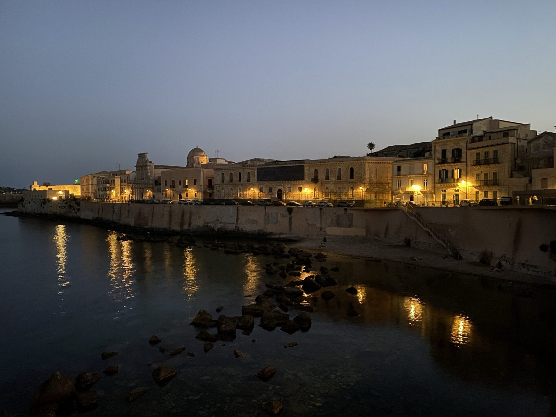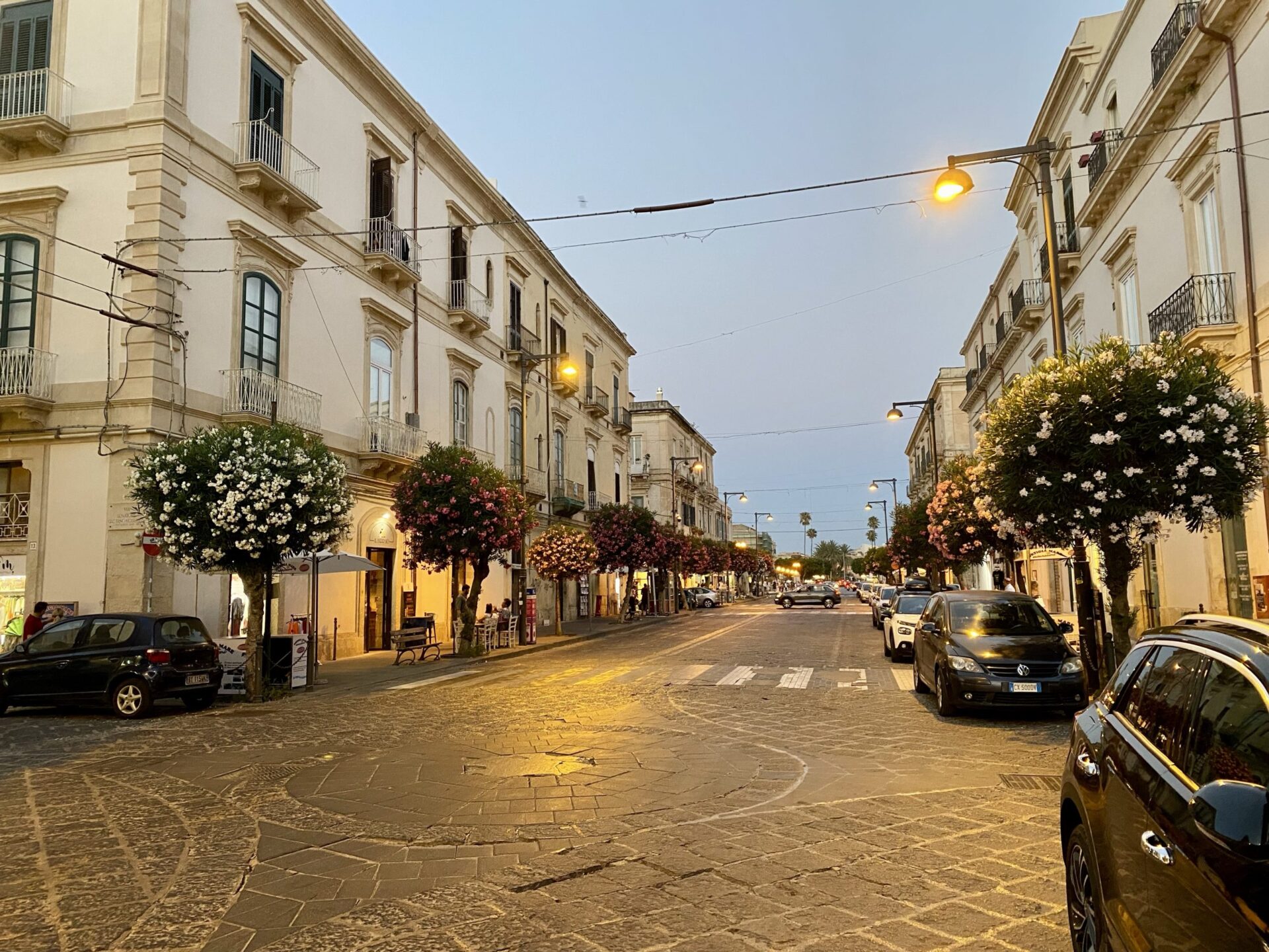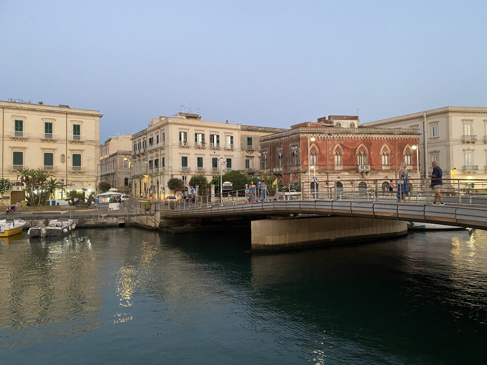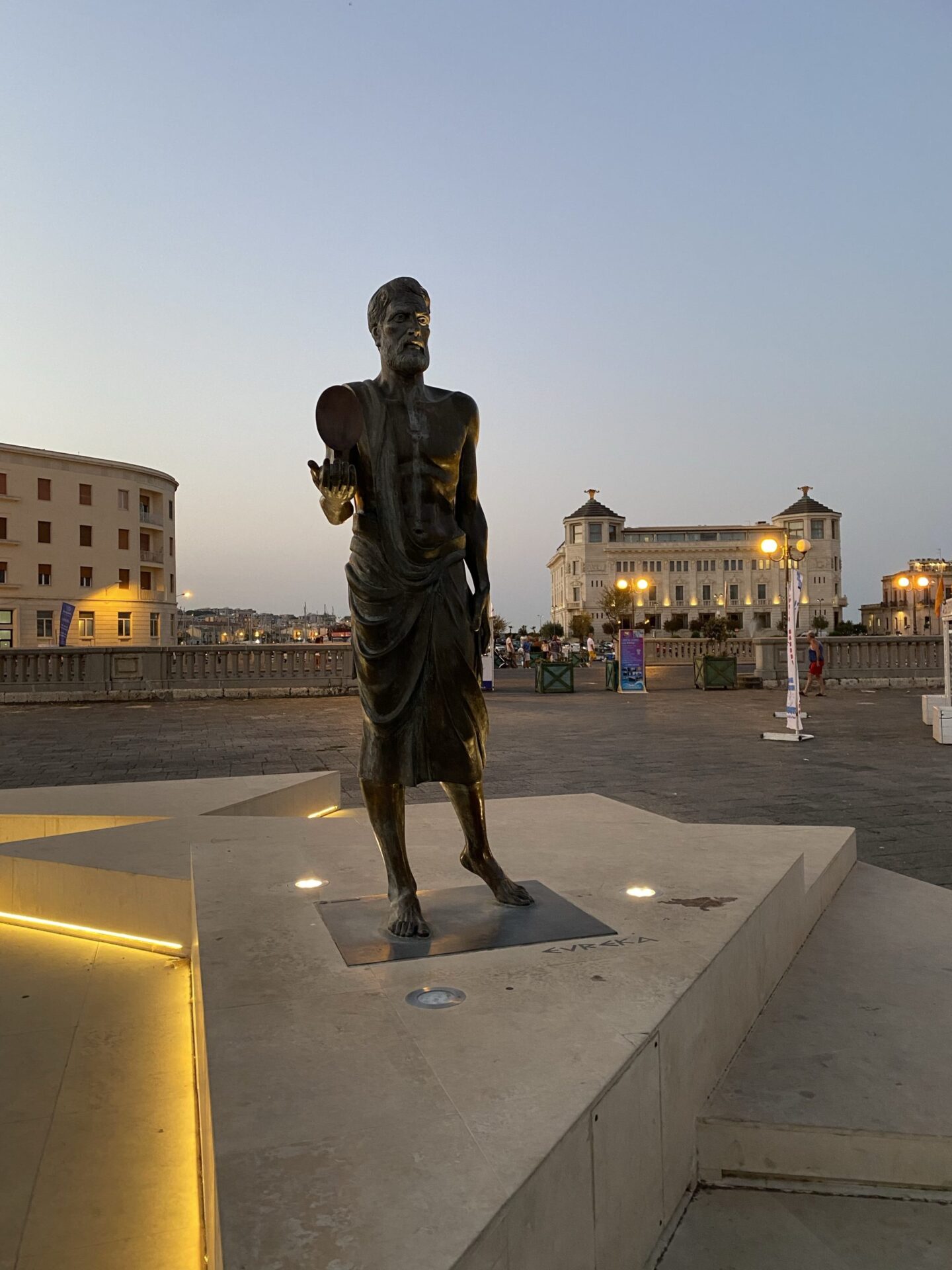 It divides into two, the most interesting bit is the island of Ortigia, though the area around the bridges, with its bronze sculpture of Archimedes, who hails from this city, is rather lovely.