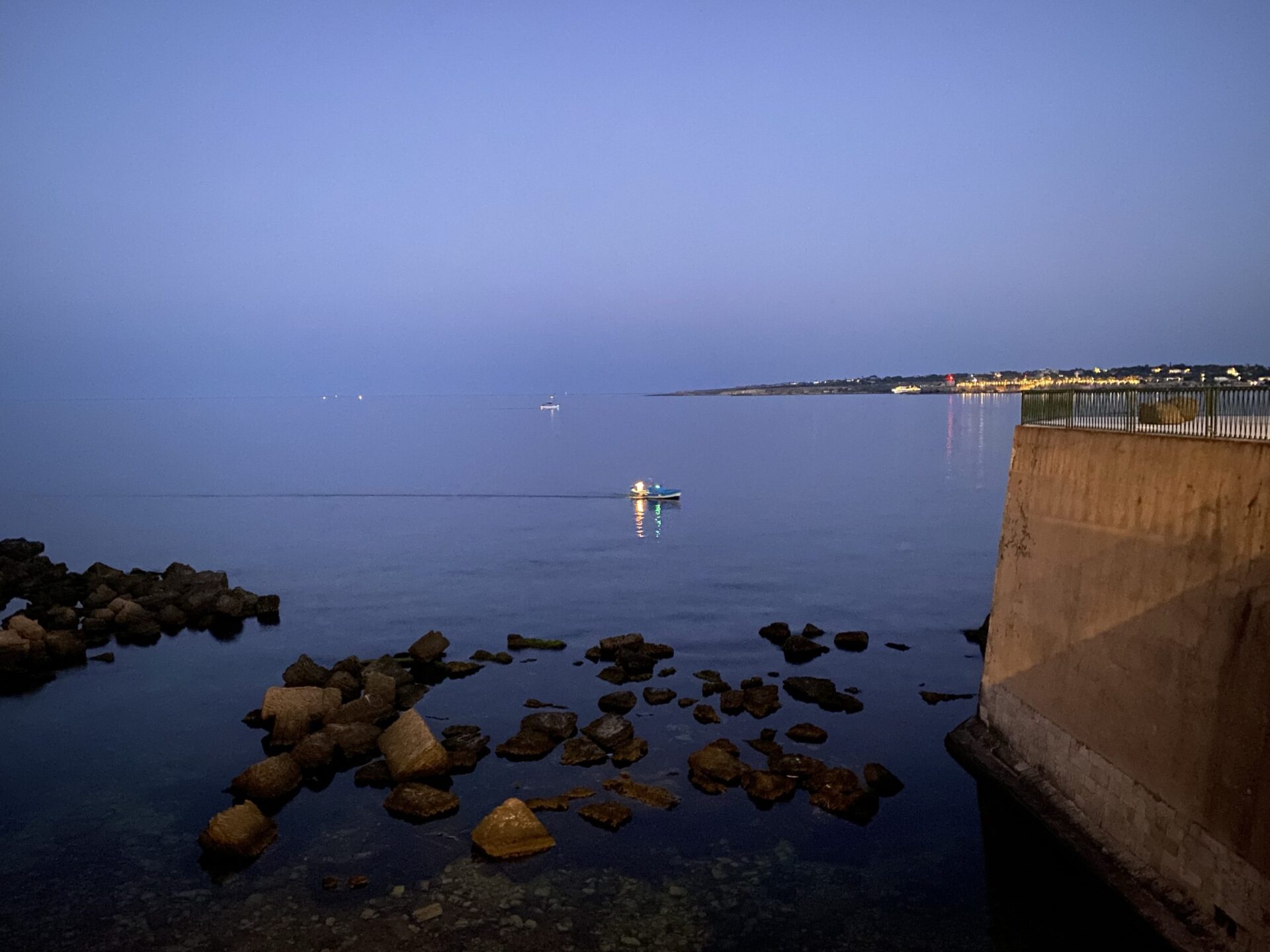 Having reached the southern end of the island, I walked around the coastal drive, which was all rather lovely with the many bars and restaurants lit up. The small boat out on the water and groups picnicking on a rock all added up to a fairly idyllic scene.