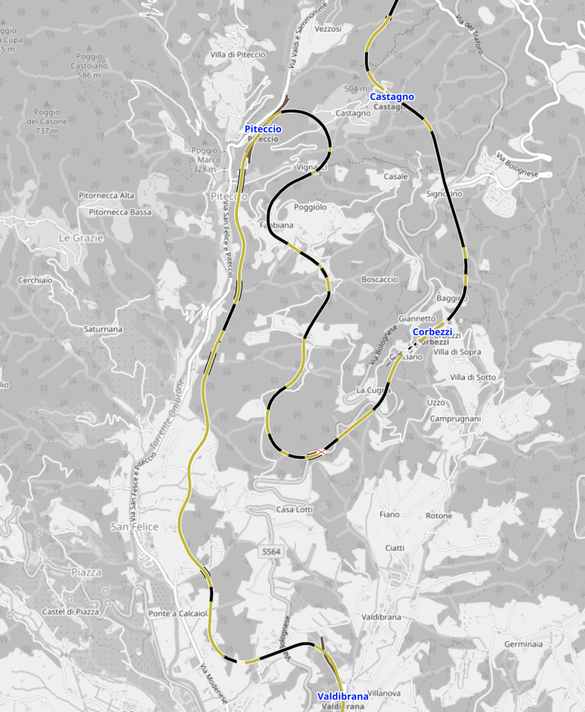 The wonderfully-named Tuscan-Emilian Apennines line towards Poretta Terme is an absolute find. Between Valdibrana and Castagno, the train climbs and loops in and out of tunnels much as it does in parts of Switzerland. Again the views were stunning as we climbed.