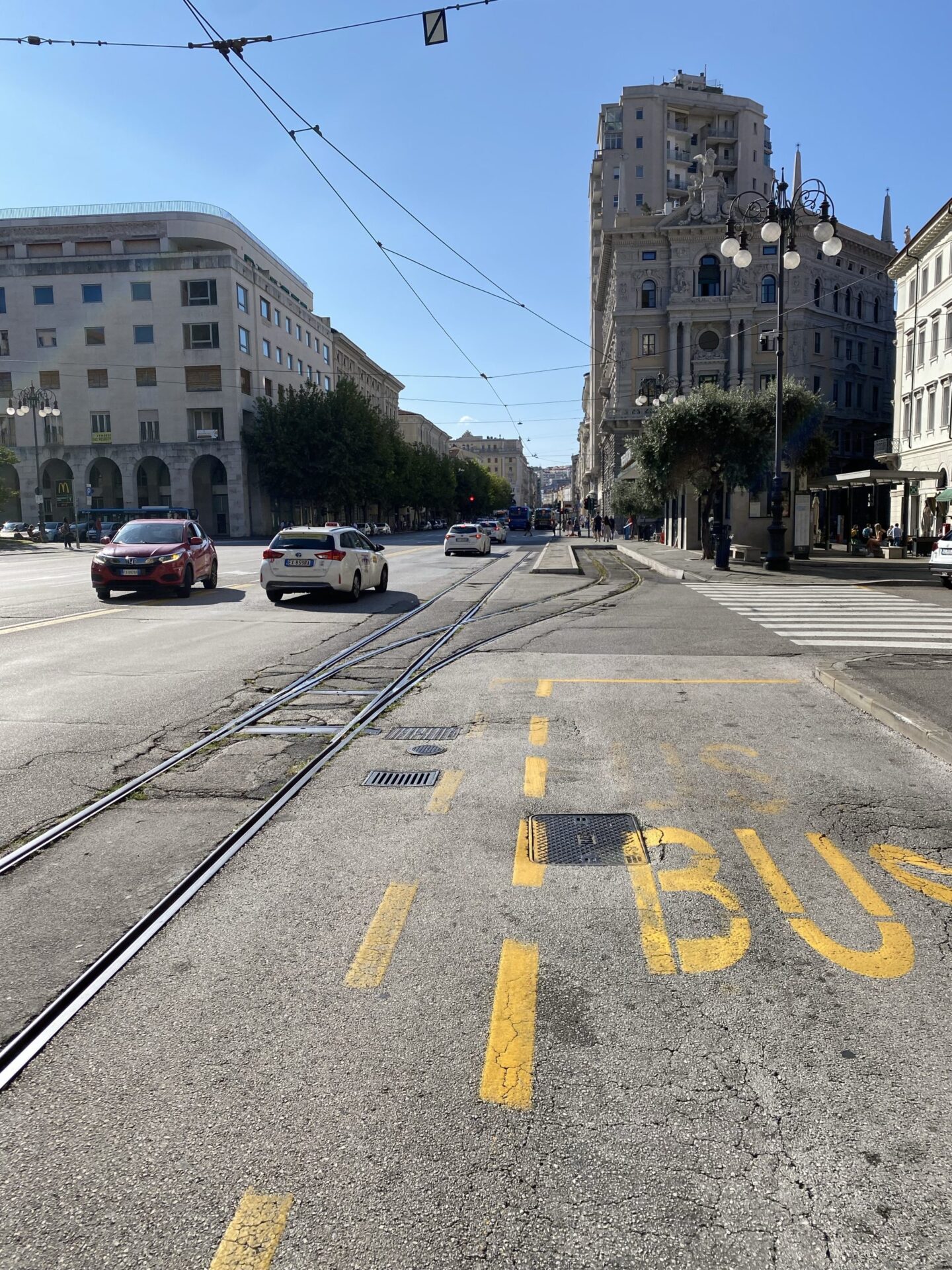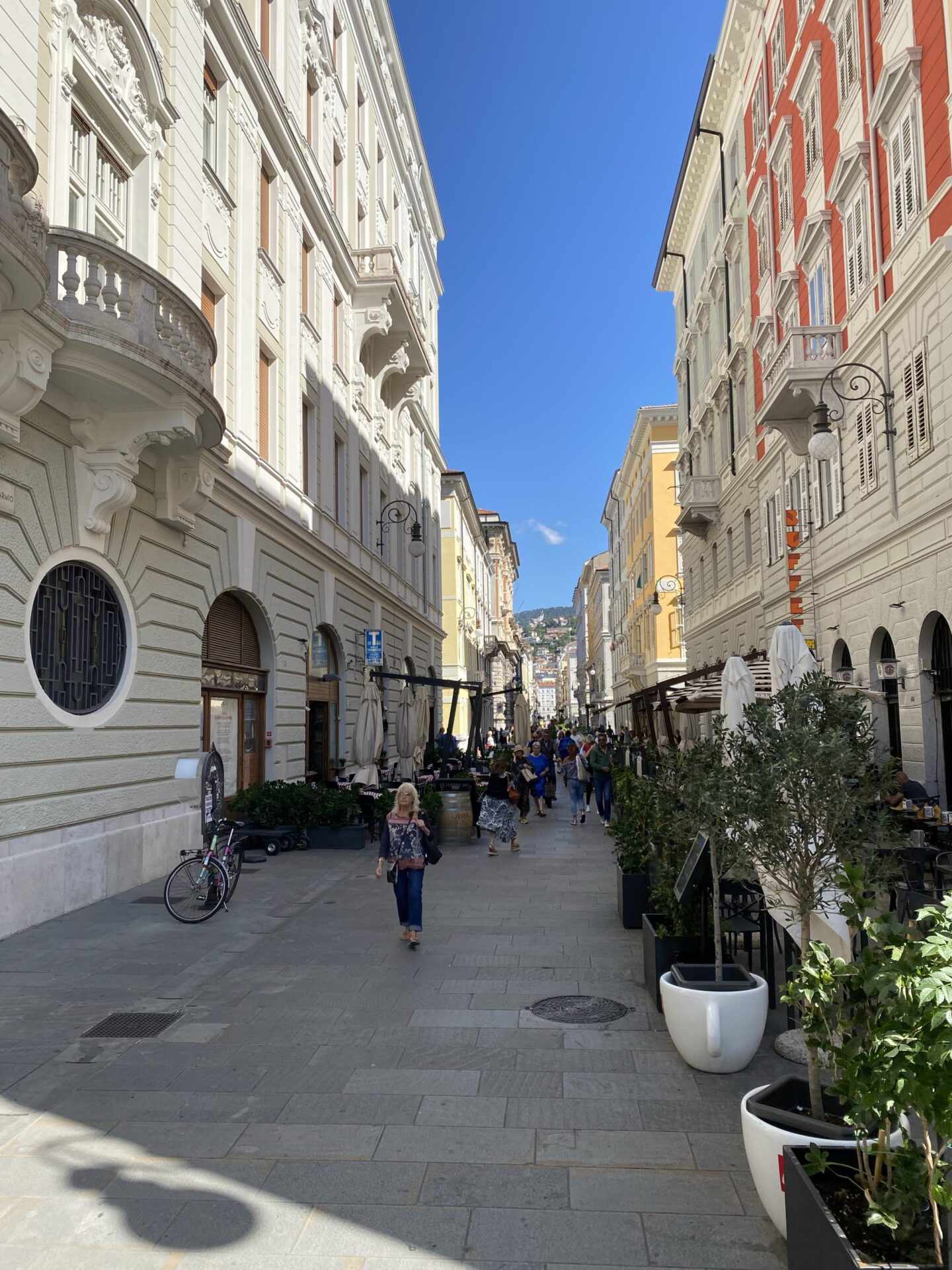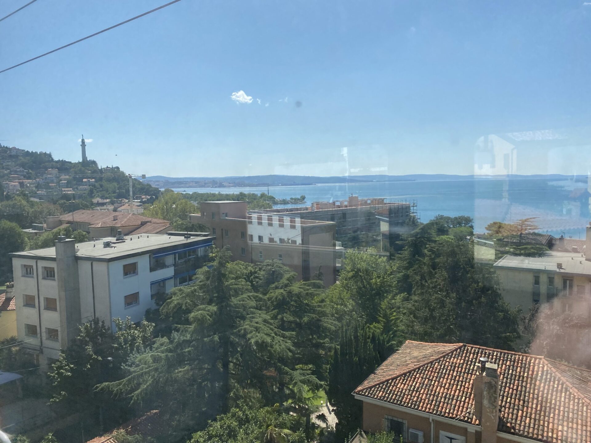 I left my bags with the hotel and headed out. Something I’d hoped to do while planning my Interrail adventures at the start of the year had been to ride the famous Trieste–Opicina tramway. I’d read rumours that it might reopen in September, but there was no evidence of this that I could see. The tracks ran directly past my hotel front door, and the terminus was just around the corner, but there were vehicles parked up the hill on the line as far as I could see. The “terminus” was just nothing more than tracks running out in the middle of the main street.